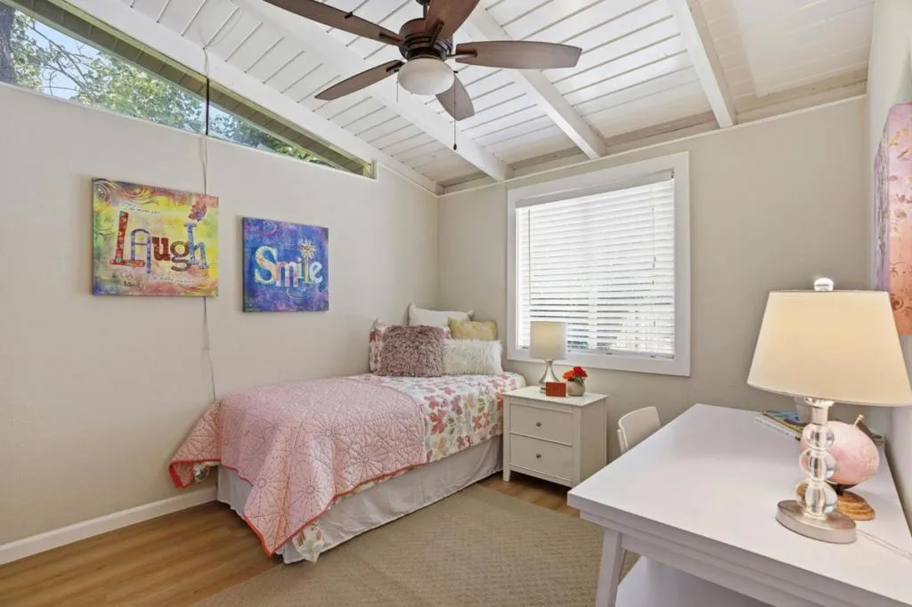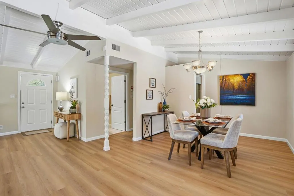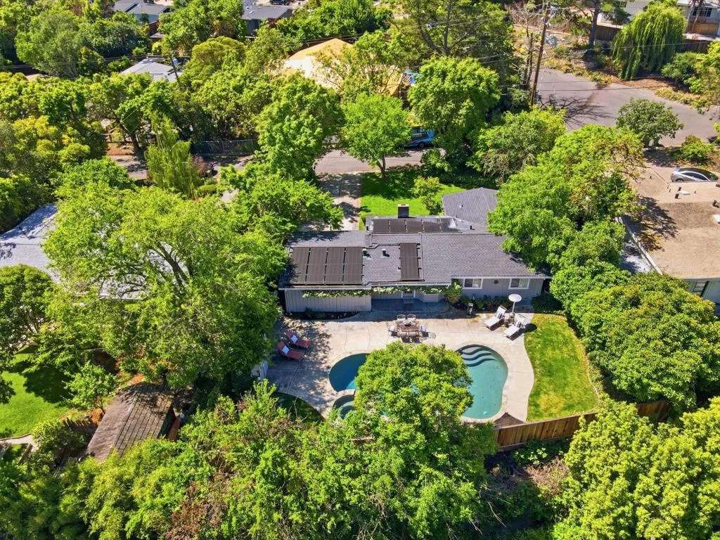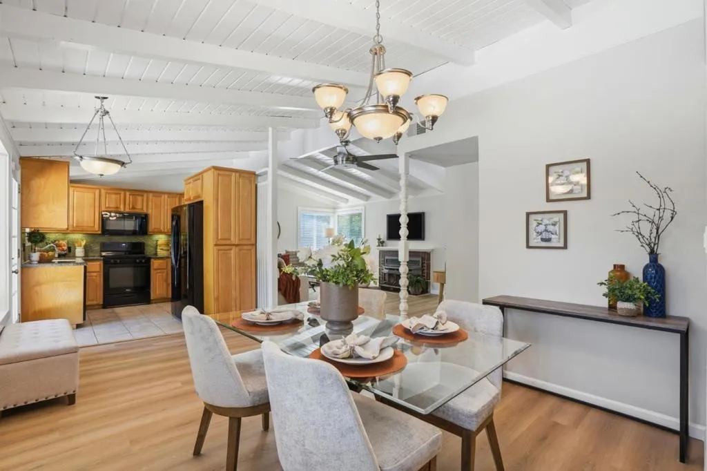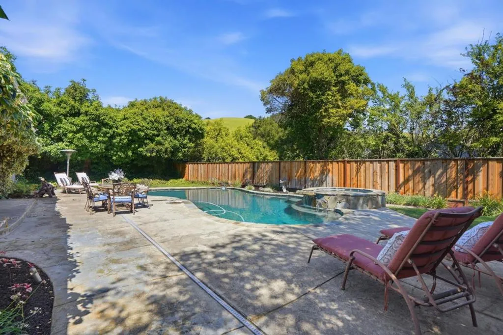 Nestled in the sought after Lafayette Valley Estates, this ranch style home offers an exceptional blend of natural beauty, top-rated schools, and an active outdoor lifestyle! At day's end, retreat to your own resort style backyard featuring a built in swimming pool/spa and beautiful curated landscaping designed for relaxation and entertaining. Spectacular home with slatted beam ceilings, gable windows in bedrooms, new LVP flooring, fresh interior paint, raised panel interior doors. All equipped kitchen with gleaming maple cabinets, granite counters & backsplash, under cabinet lighting, gas range, built in microwave, fridge to stay, garden window, tile floors, french door leading to backyard. Large dining area with beautiful bay window. Open and inviting family area with brick hearth fireplace with wood burning stove insert. Mirrored closet doors in all bedrooms. Central heating and air conditioning. Laundry located in garage; washer & dryer to stay. Meticulously manicured landscaping in front and backyards with automatic sprinklers, solar (owned) heated swimming pool & spa. Short stroll to Lafayette-Moraga Regional Trail, short drive to downtown Lafayette.