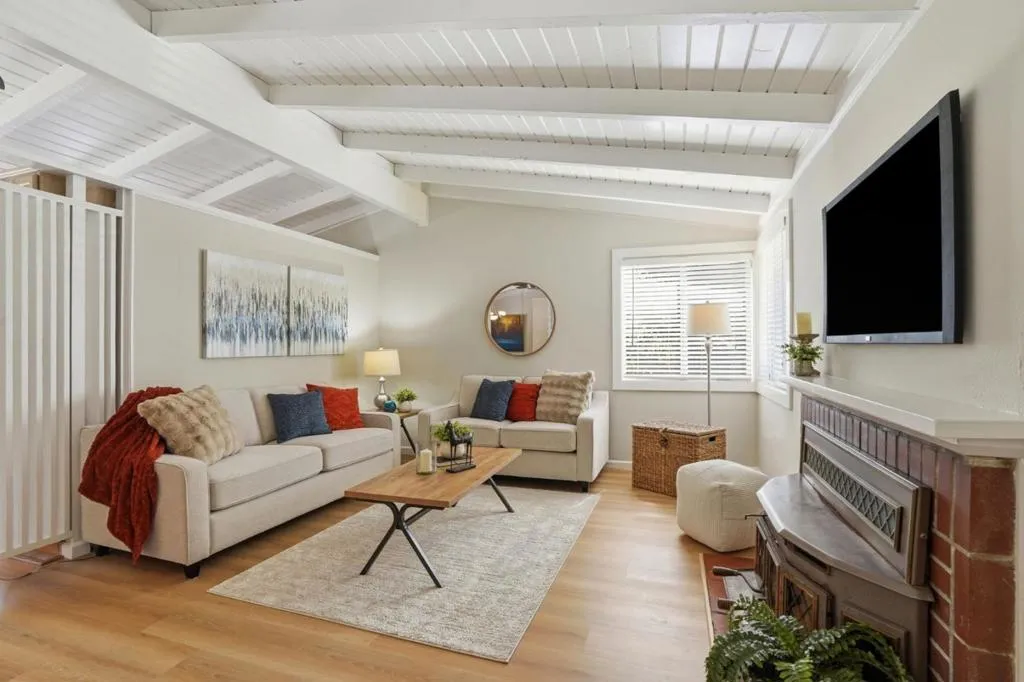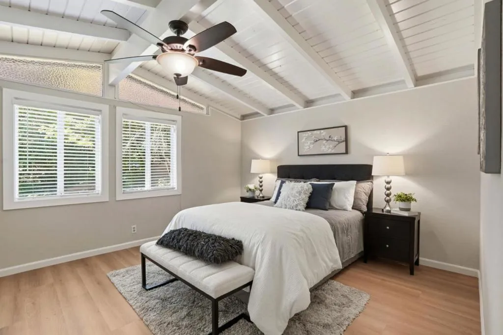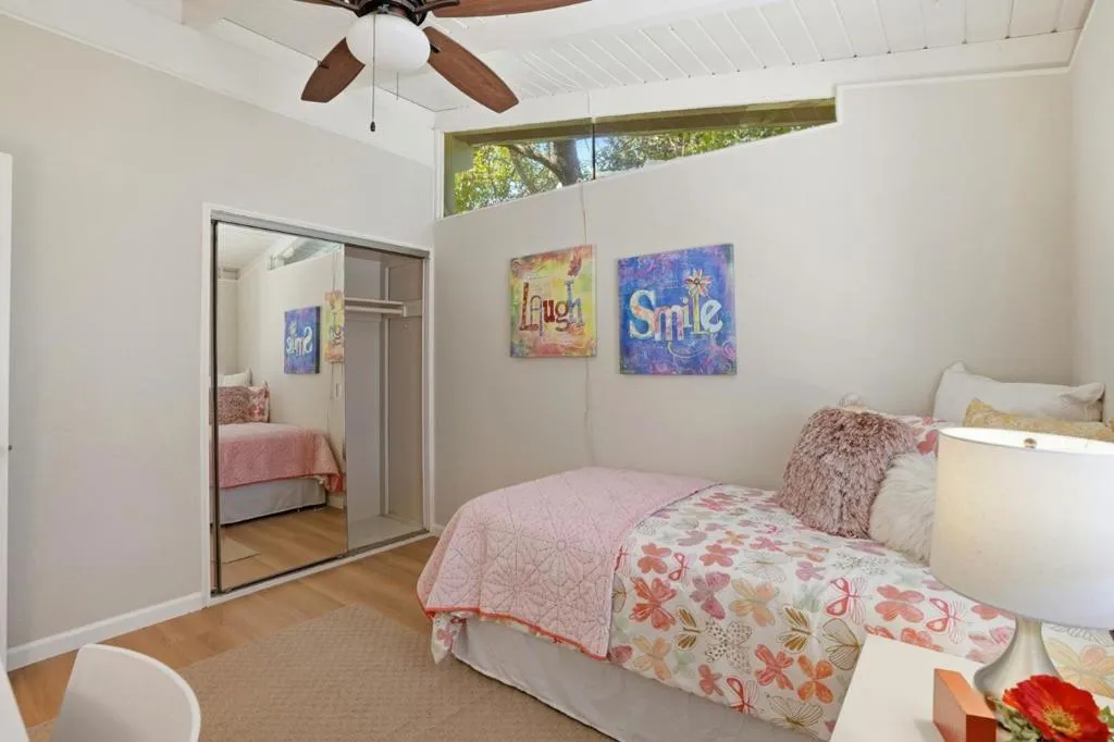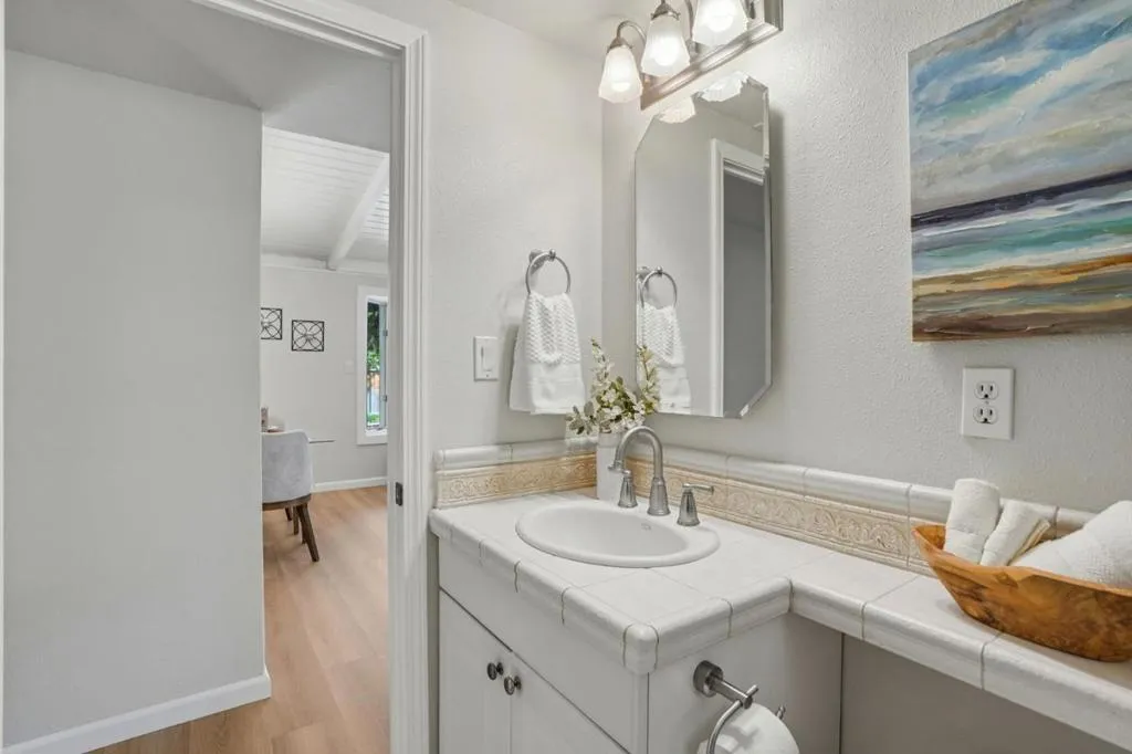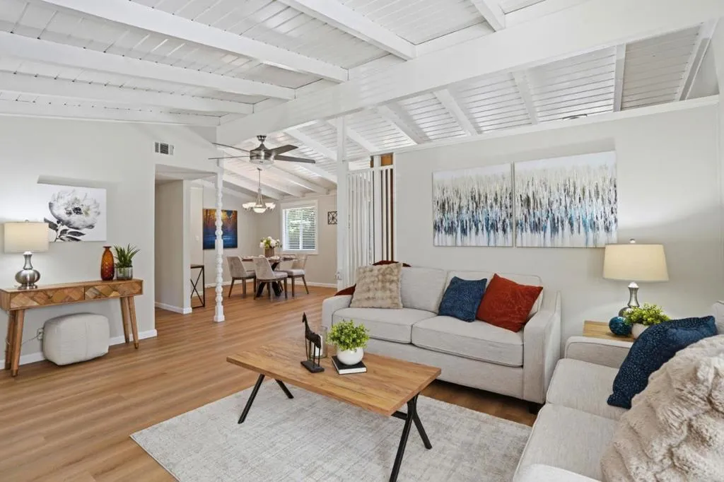 Nestled in the sought after Lafayette Valley Estates, this ranch style home offers an exceptional blend of natural beauty, top-rated schools, and an active outdoor lifestyle! At day's end, retreat to your own resort style backyard featuring a built in swimming pool/spa and beautiful curated landscaping designed for relaxation and entertaining. Spectacular home with slatted beam ceilings, gable windows in bedrooms, new LVP flooring, fresh interior paint, raised panel interior doors. All equipped kitchen with gleaming maple cabinets, granite counters & backsplash, under cabinet lighting, gas range, built in microwave, fridge to stay, garden window, tile floors, french door leading to backyard. Large dining area with beautiful bay window. Open and inviting family area with brick hearth fireplace with wood burning stove insert. Mirrored closet doors in all bedrooms. Central heating and air conditioning. Laundry located in garage; washer & dryer to stay. Meticulously manicured landscaping in front and backyards with automatic sprinklers, solar (owned) heated swimming pool & spa. Short stroll to Lafayette-Moraga Regional Trail, short drive to downtown Lafayette.