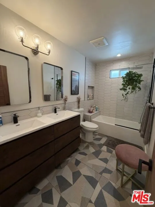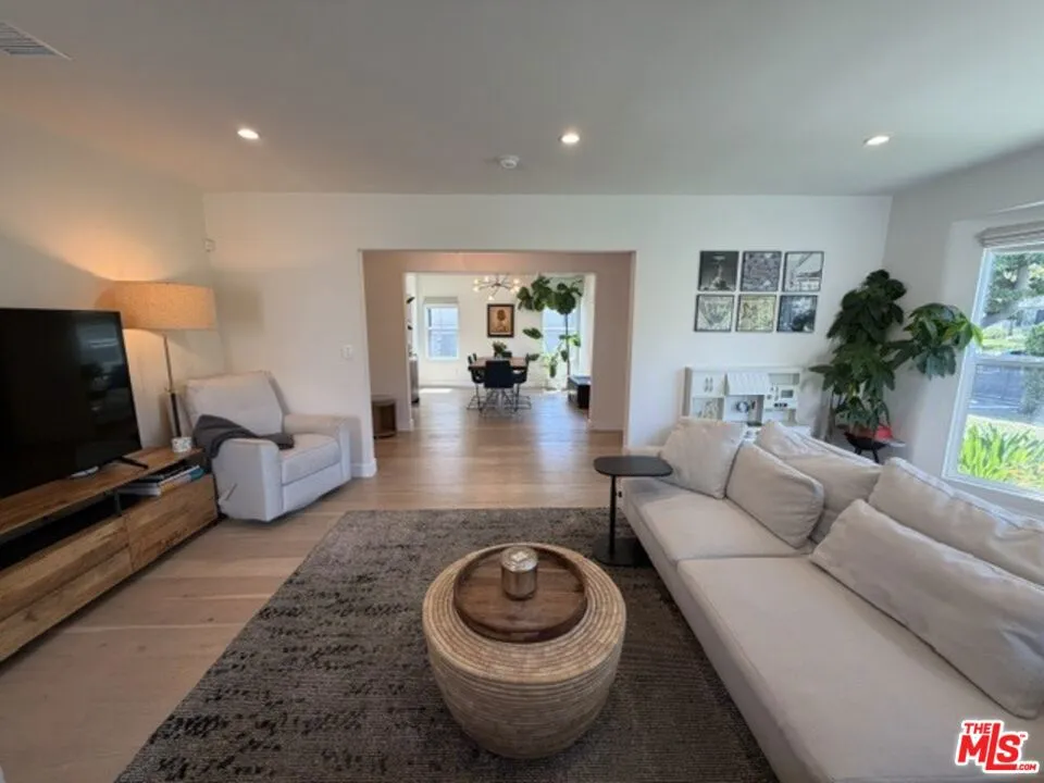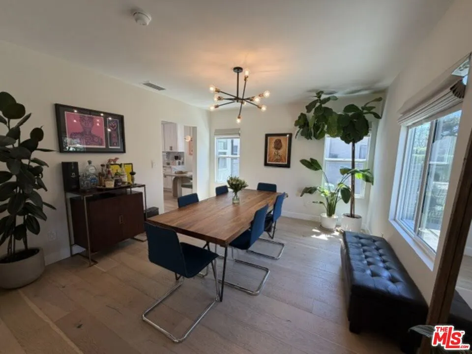 Located in Mid City / Picfair Village, set back behind a private motorized gate and lush green hedges, this beautifully renovated residence on Fairfax Avenue offers a rare blend of secluded tranquility and urban convenience. Fully remodeled in 2021, the light-filled interior exudes quality, featuring engineered wood flooring, walnut doors, and a designer lighting scheme that highlights the spacious, open layout. At the heart of the home is a gourmet kitchen finished with quartzite countertops, custom cabinetry, and premium Samsung appliances, while the primary suite serves as a serene retreat with a walk-in closet, a spa-inspired ensuite bathroom, and elegant French doors. Every detail was upgraded for modern ease, from the NEST-controlled HVAC and dual-pane windows, to the fully updated electrical and plumbing systems, and entire roofing. The property's appeal extends outdoors to a spacious, paved entertaining or play area that flows onto green landscaping including mature citrus fruit trees, with multiple seamless access points from the kitchen and two of the three bedrooms. For those seeking versatility, the detached two-car garage has been reimagined with finished floors and walls, stylish ceiling lighting and a sliding glass door, making it the perfect all-season studio, home office, gym, additional living/entertaining space, or family recreation room. There is free street parking on both sides of the friendly neighborhood road, for guests to visit and stay as long as desired. A very short distance from LACMA, Petersen Automotive Museum, La Brea Tar Pits, The Original Farmers Market & The Grove, and Melrose Avenue, this fully furnished abode is a rare turnkey opportunity to enjoy a contemporary lifestyle in one of Los Angeles' most desirable corridors.