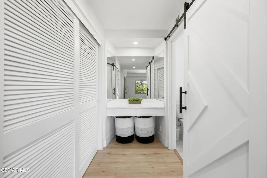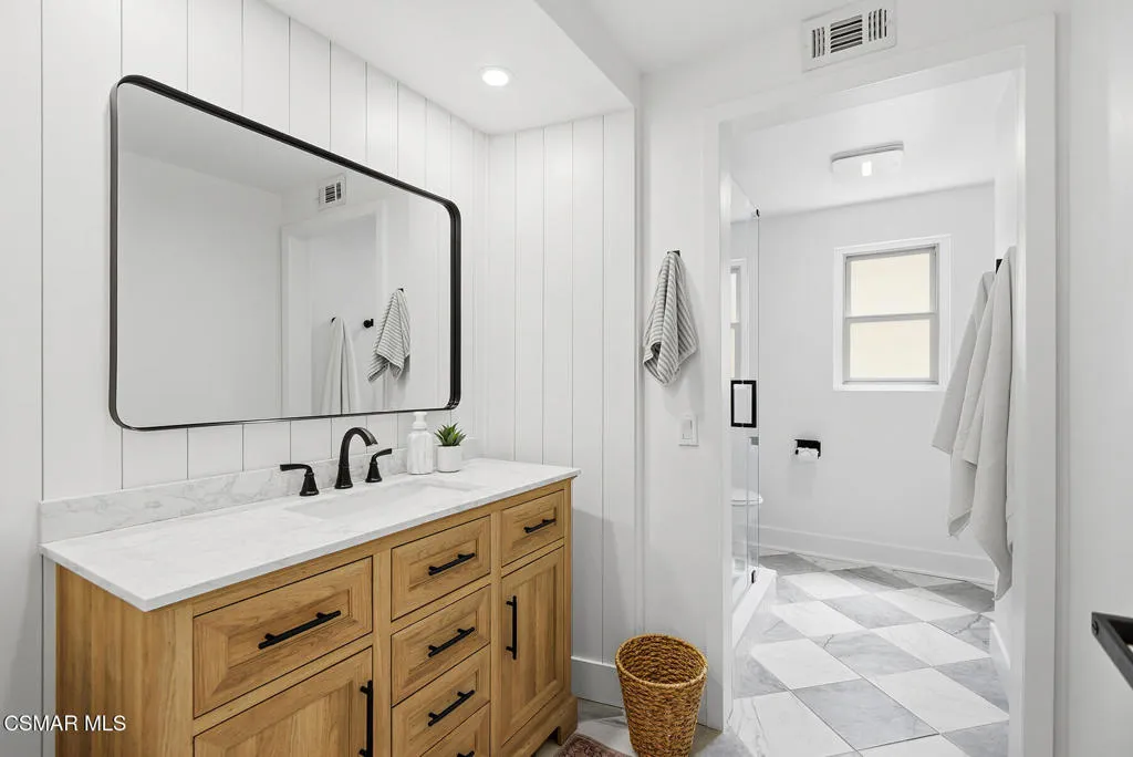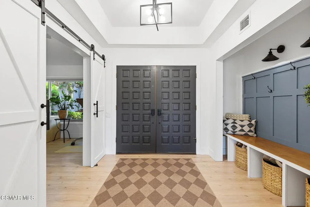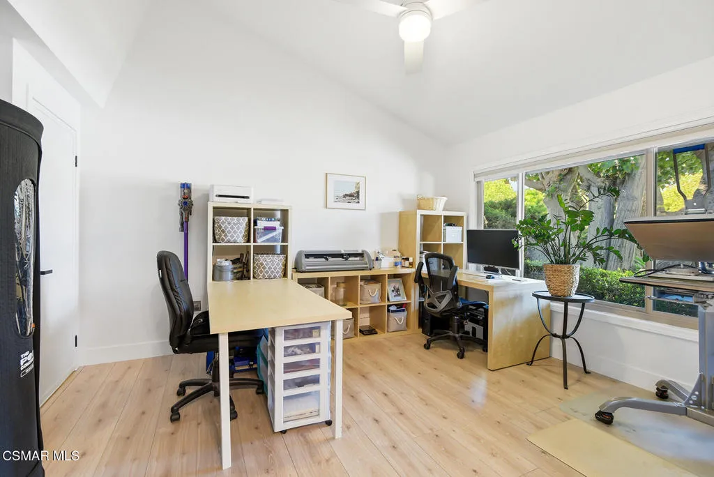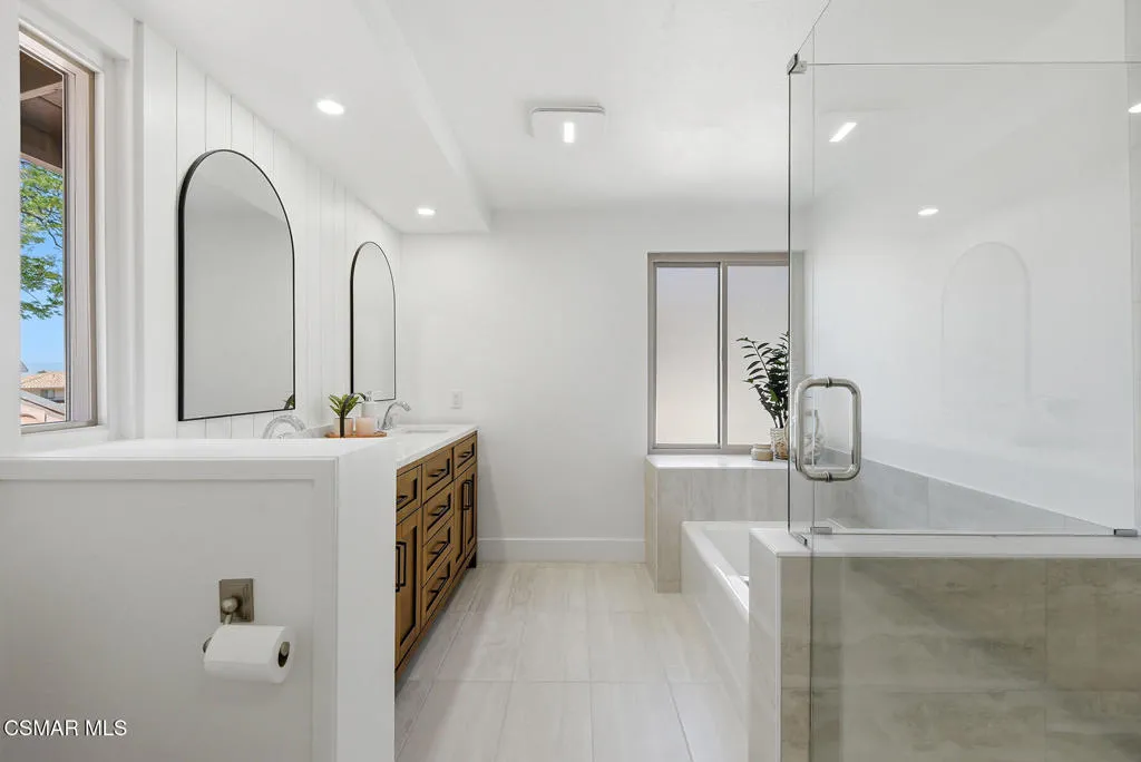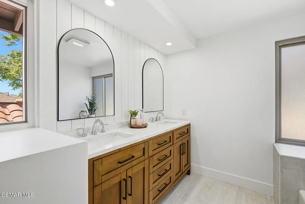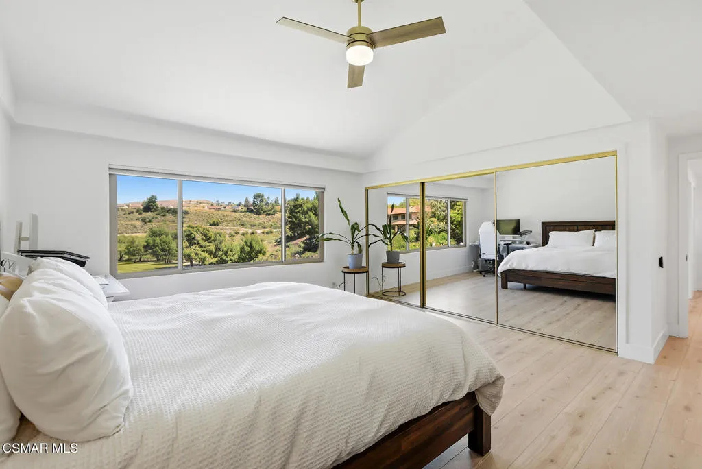 Welcome to 3922 Calle de Sol, located in the highly desirable Sunset Hills neighborhood of Thousand Oaks. This beautifully remodeled 4-bedroom, 3-bathroom home offers 2,615 sq ft of living space, an ideal open floor plan, and stunning golf course views overlooking the 16th hole of Sunset Hills Country Club. The light-filled interior features wide plank laminate flooring, recessed lighting, and a seamless flow between the main living spaces. The remodeled kitchen is thoughtfully designed with quartz countertops, custom cabinetry, stainless steel appliances, and a large island with bar seating, all opening to the living and dining areas, perfect for both everyday living and entertaining. Expansive windows and sliding doors showcase picturesque backyard views of the golf course and surrounding hills, creating a peaceful and private setting. The outdoor space is ideal for relaxing, hosting, and enjoying the scenic surroundings. The neighborhood also offers a private paseo with walking paths and additional scenic viewpoints, providing a true indoor-outdoor lifestyle right outside your door. A downstairs bedroom and full bathroom offer flexibility for guests or a home office. Upstairs, the spacious primary suite and additional bedrooms are complemented by remodeled bathrooms and beautiful views of the surrounding hills and golf course. Additional highlights include a 3-car garage, with one bay currently converted into a gym, and a prime location just moments from Sunset Hills Country Club, parks, shopping, dining, and award-winning schools. This turnkey home combines style, functionality, and an exceptional location in one of Thousand Oaks' most sought-after communities.