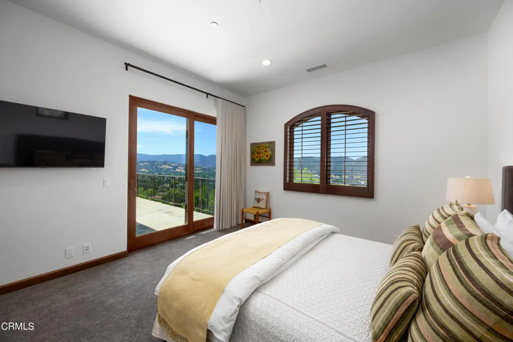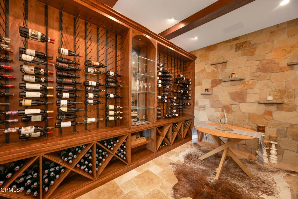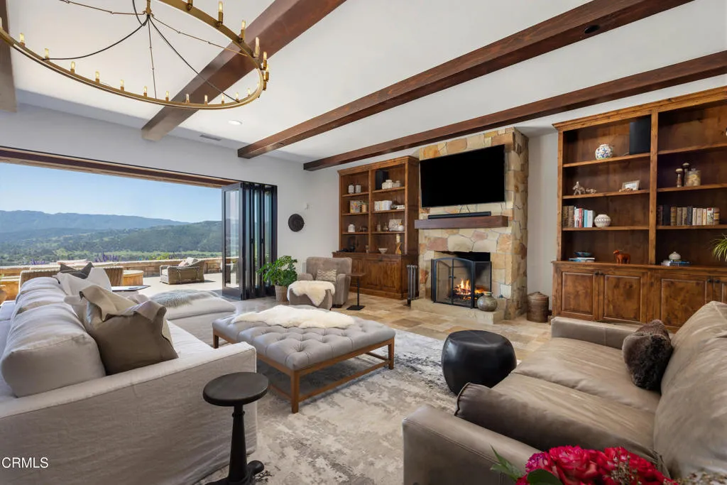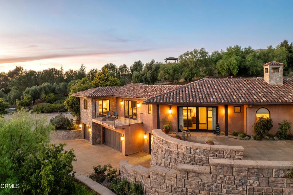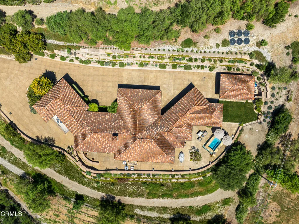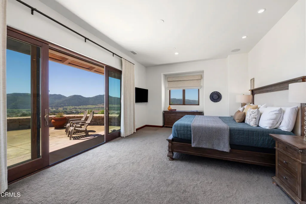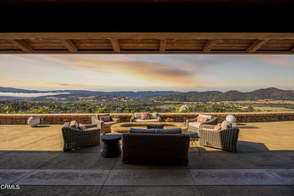 Be the first to watch as the fog slowly rolls in and cradles the Valley. Welcome to ''First Fog Ranch'', with breathtaking views and incredible sunsets! Relaxed country elegance, a stunning estate of the highest quality constructions and craftsmanship, with high end finishes that perfectly blends elegance with serene ranch living. 6.27+/- acres, offering both privacy and versatility, boutique Syrah vineyard, 5,456+/- sq. ft. of refined living space, featuring 4 spacious bedrooms and 4.5 luxurious bathrooms. The heart of the home is the impressive living room with grand stone fireplace and a wall of folding glass bi-fold doors that open entirely to the outdoor patios with umbrellas, a cozy fire pit and a splash pool. The gourmet kitchen is a chef's dream, equipped with an expansive island, breakfast bar, walk-in pantry, wine refrigerator, and a high-end Wolf range. For wine enthusiasts, the temperature-controlled wine cellar provides ample space for your collection, accommodating up to 780 bottles. Wander the many pathways that lead to magical landscaped destinations. Additional amenities include an attached 3-car garage, a detached 1-car garage, a separate workshop in an area that's private with views, just waiting for your future barn or ADU. Designed and originally built for a celebrity artist, come and experience the epitome of luxury and tranquility at First Fog Ranch, where every detail has been thoughtfully designed to create an unparalleled living experience.