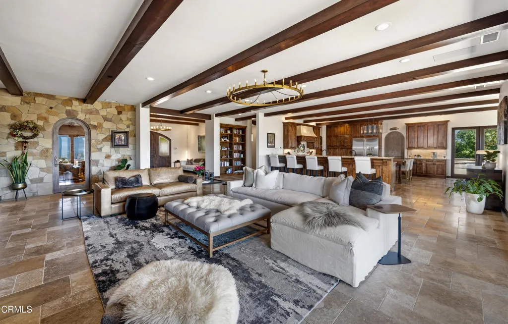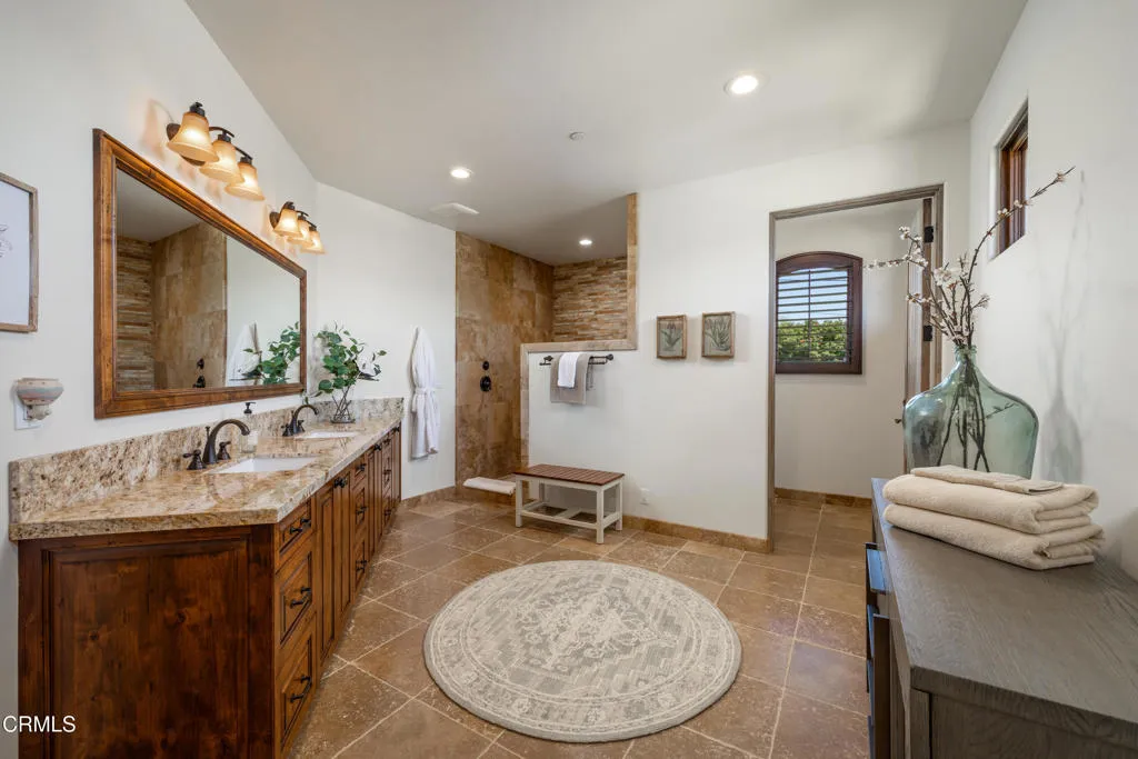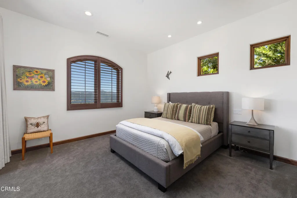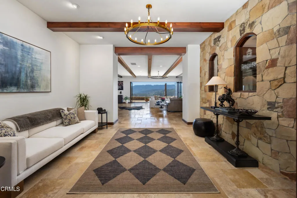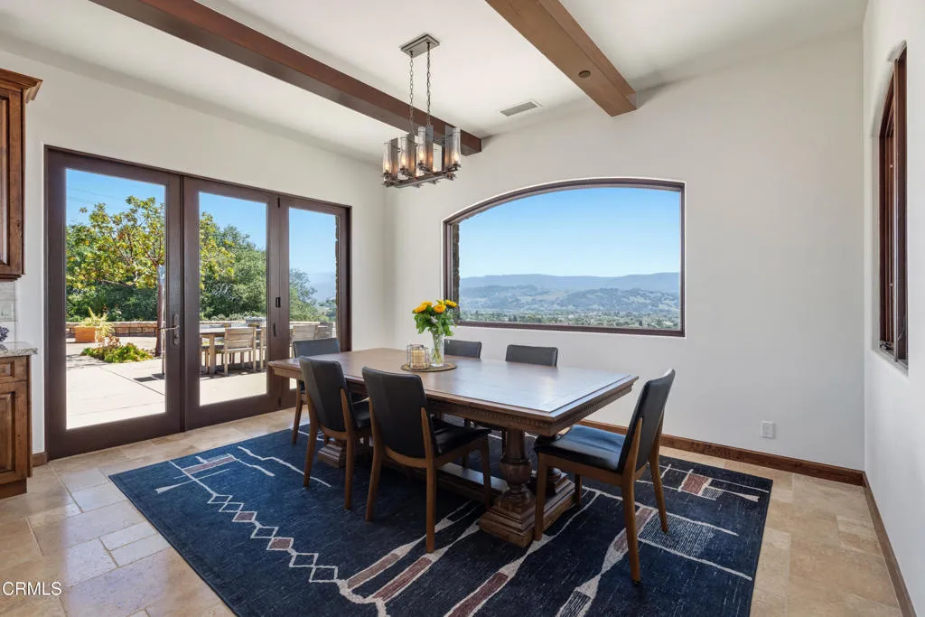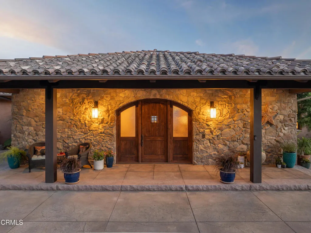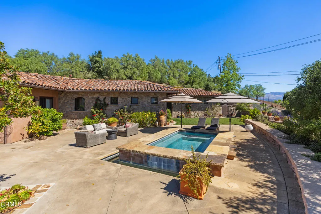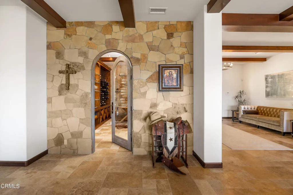 Be the first to watch as the fog slowly rolls in and cradles the Valley. Welcome to ''First Fog Ranch'', with breathtaking views and incredible sunsets! Relaxed country elegance, a stunning estate of the highest quality constructions and craftsmanship, with high end finishes that perfectly blends elegance with serene ranch living. 6.27+/- acres, offering both privacy and versatility, boutique Syrah vineyard, 5,456+/- sq. ft. of refined living space, featuring 4 spacious bedrooms and 4.5 luxurious bathrooms. The heart of the home is the impressive living room with grand stone fireplace and a wall of folding glass bi-fold doors that open entirely to the outdoor patios with umbrellas, a cozy fire pit and a splash pool. The gourmet kitchen is a chef's dream, equipped with an expansive island, breakfast bar, walk-in pantry, wine refrigerator, and a high-end Wolf range. For wine enthusiasts, the temperature-controlled wine cellar provides ample space for your collection, accommodating up to 780 bottles. Wander the many pathways that lead to magical landscaped destinations. Additional amenities include an attached 3-car garage, a detached 1-car garage, a separate workshop in an area that's private with views, just waiting for your future barn or ADU. Designed and originally built for a celebrity artist, come and experience the epitome of luxury and tranquility at First Fog Ranch, where every detail has been thoughtfully designed to create an unparalleled living experience.