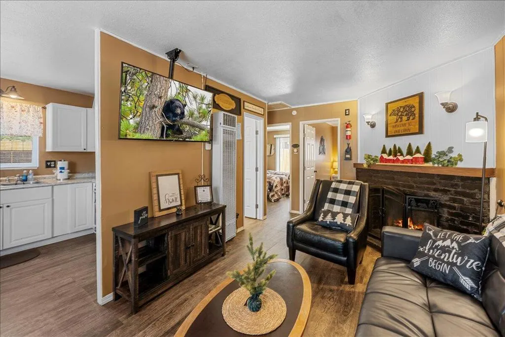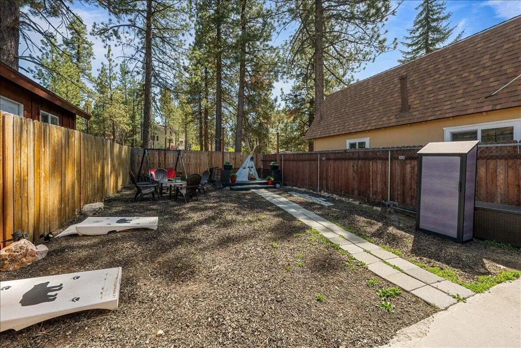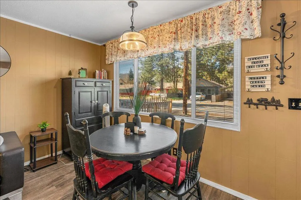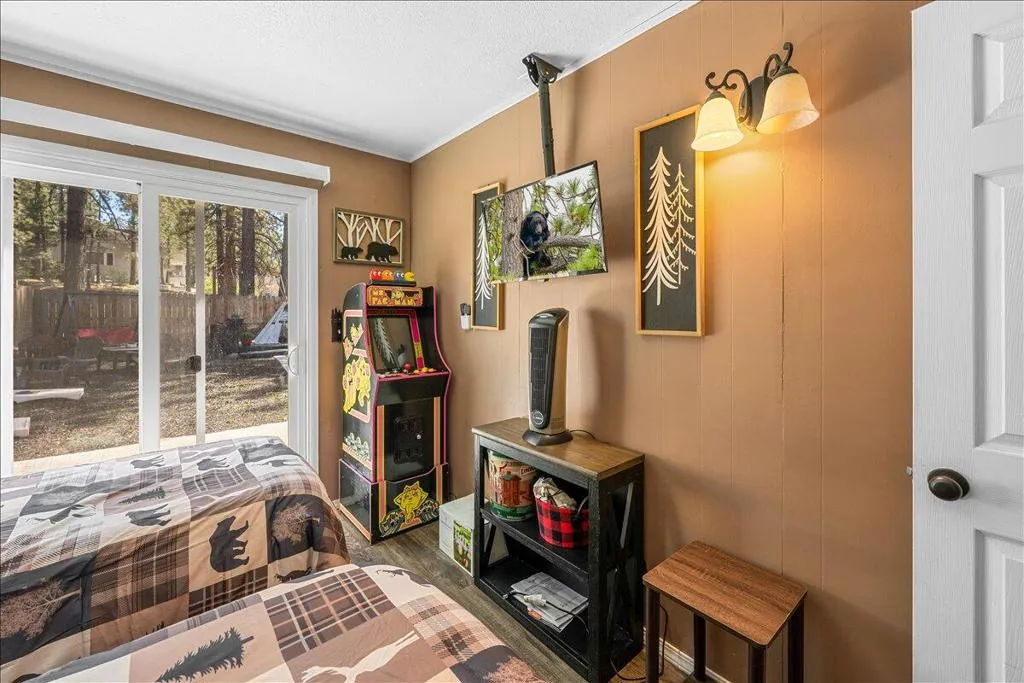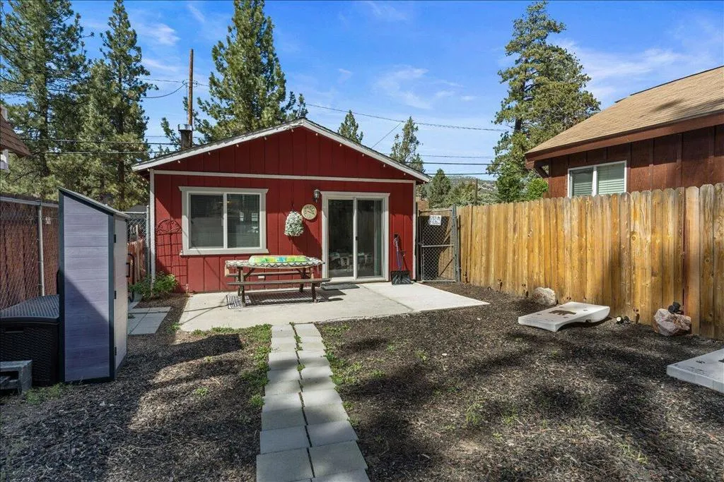 LOCATION! LOCATION! LOCATION!- TURNKEY , single-story home situated on a fully fenced lot in a central Big Bear City location. Conveniently located near farmers market, Oktoberfest, hiking and biking trails, ski resorts, snow play, the zoo, the Village, and local shopping. This home features dual-pane windows throughout, updated cabinetry, newer countertops, and stainless steel appliances including a refrigerator with ice maker and water dispenser, range, and built-in microwave. Interior upgrades include new doors, updated lighting, vinyl flooring, and a remodeled bathroom with modern black fixtures. Additional features include a wood-burning fireplace, stackable washer and dryer. The functional single-level layout offers comfortable living space suitable for full-time living, second home use, or investment. The backyard is fully fenced, providing space for outdoor enjoyment, pets, or entertaining. Property is a Airbnb Furnishings are included, offering a potential turnkey opportunity forbuyers seeking immediate use or rental setup.