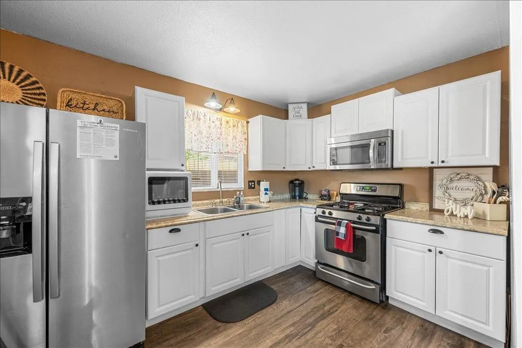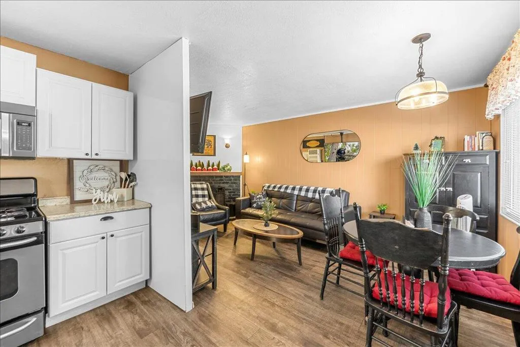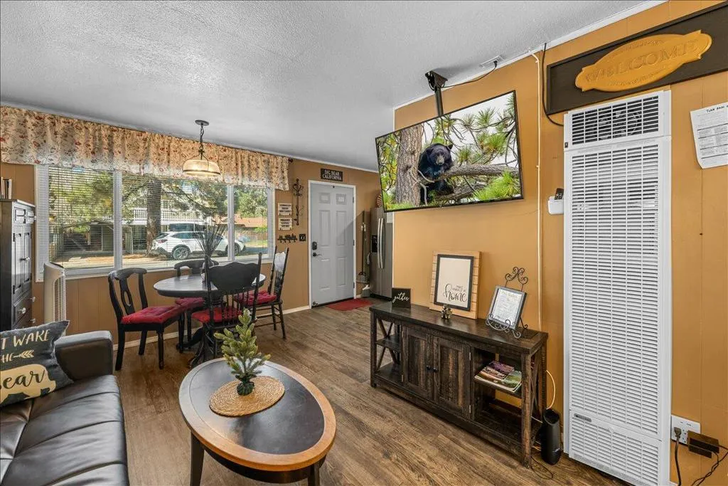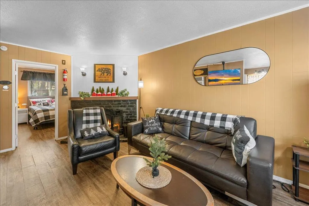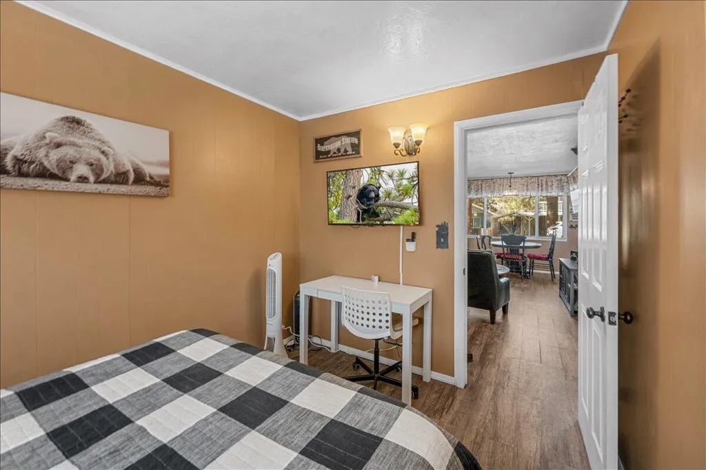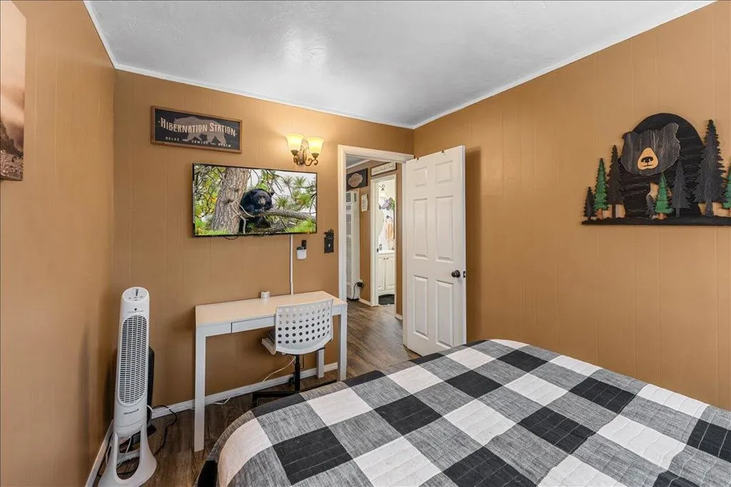 LOCATION! LOCATION! LOCATION!- TURNKEY , single-story home situated on a fully fenced lot in a central Big Bear City location. Conveniently located near farmers market, Oktoberfest, hiking and biking trails, ski resorts, snow play, the zoo, the Village, and local shopping. This home features dual-pane windows throughout, updated cabinetry, newer countertops, and stainless steel appliances including a refrigerator with ice maker and water dispenser, range, and built-in microwave. Interior upgrades include new doors, updated lighting, vinyl flooring, and a remodeled bathroom with modern black fixtures. Additional features include a wood-burning fireplace, stackable washer and dryer. The functional single-level layout offers comfortable living space suitable for full-time living, second home use, or investment. The backyard is fully fenced, providing space for outdoor enjoyment, pets, or entertaining. Property is a Airbnb Furnishings are included, offering a potential turnkey opportunity forbuyers seeking immediate use or rental setup.