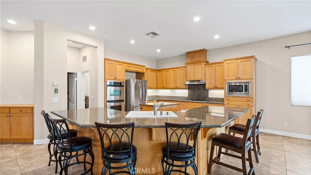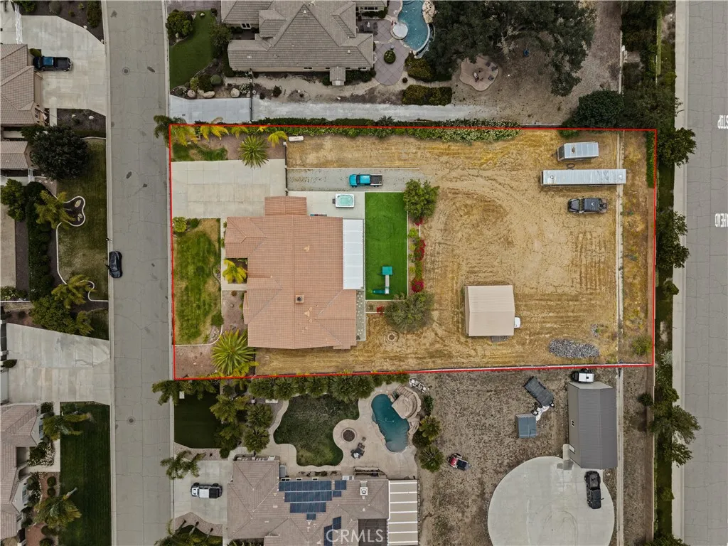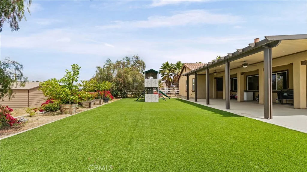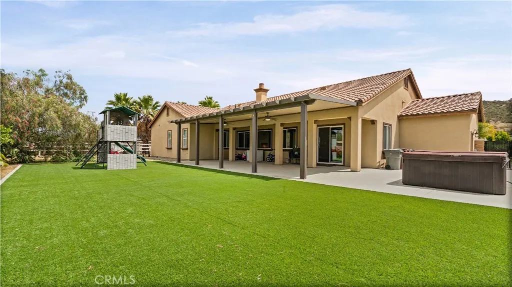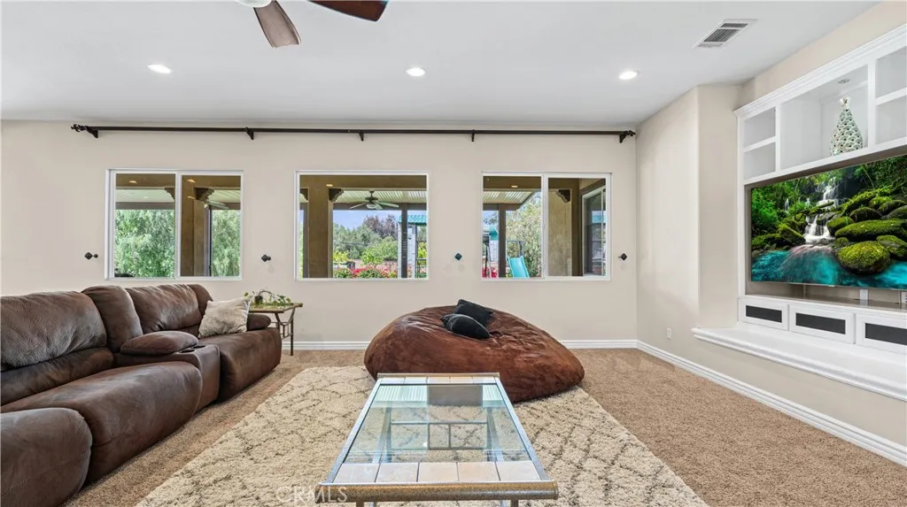 Tucked inside a quiet, 28-home community, this sprawling single-story sits on a full acre and delivers the kind of space and privacy that rarely comes to market. From the moment you walk in, the oversized great room sets the tone — wide open, light-filled, and built for real living. The kitchen is the heart of the home, featuring hardwood cabinetry, an oversized island, a walk-in pantry, a breakfast nook, and a formal dining room. The primary suite impresses with a spa-inspired bath — soaking tub, separate shower, and a large walk-in closet. Two additional bedrooms share a double-sink bath, thoughtfully positioned between them for family or guests. The dedicated theatre room features sound-absorbing wall panels and an oversized projector screen — projector not included, but the setup is ready to go. Prefer a home office or game room? This space converts back effortlessly. Outside, the oversized gated side yard opens to a fully covered back patio with an Alumawood extension, artificial turf, a kids' play area, and a huge above-ground jacuzzi that seats 10. Beyond that, the acre lot delivers — a large carport with easy workshop conversion potential, plus ample parking for trucks, trailers, RVs, and all the toys. Single-story sprawl. One acre. Room for everyone and everything. Homes with this footprint on this kind of lot don't come around often — and this one won't last.