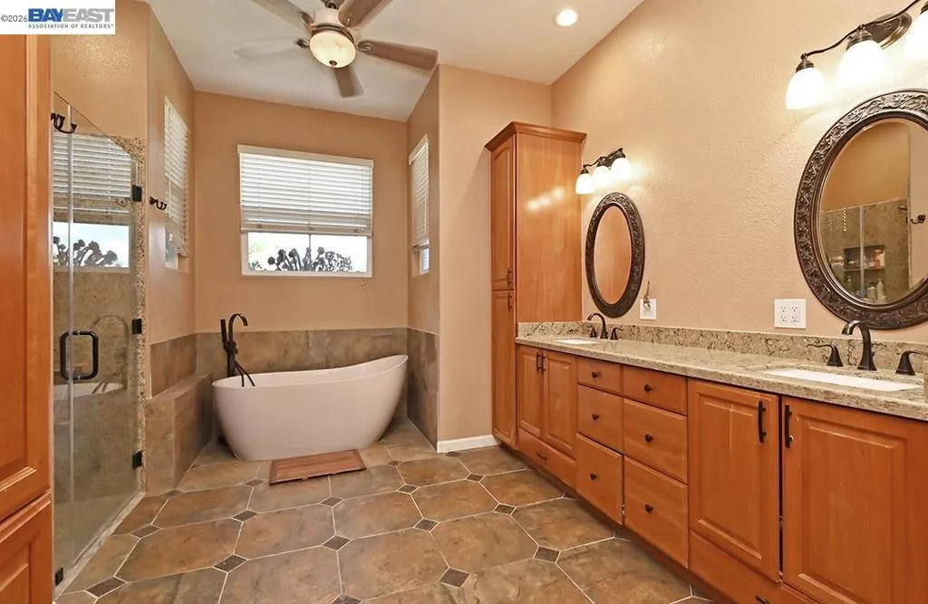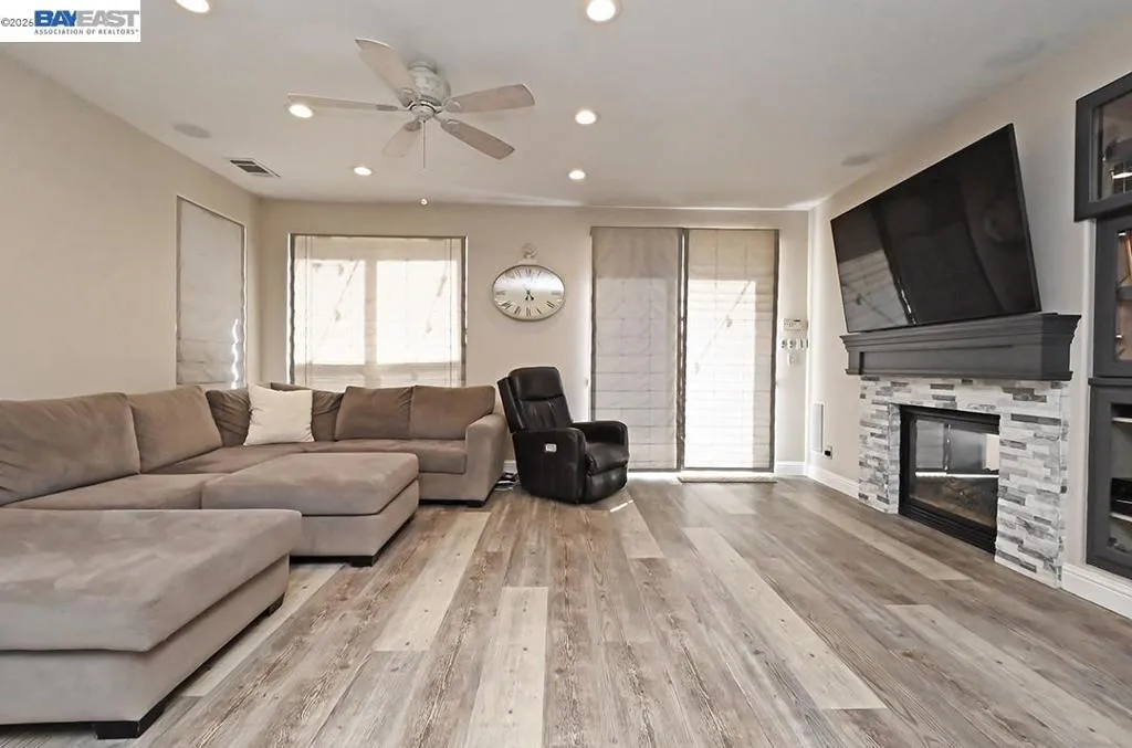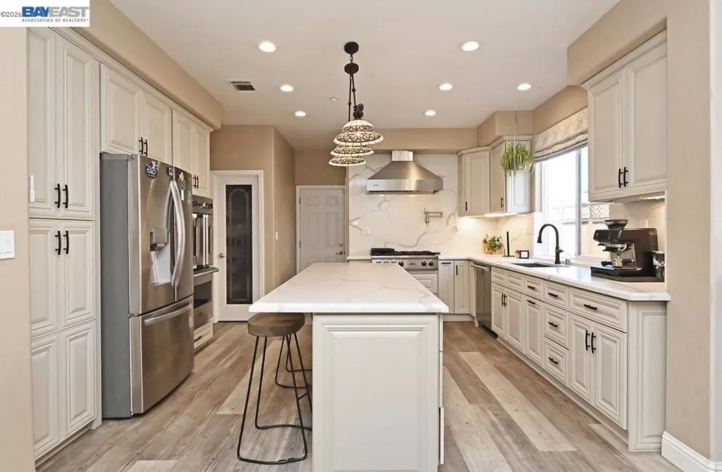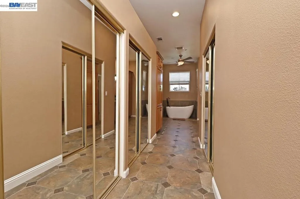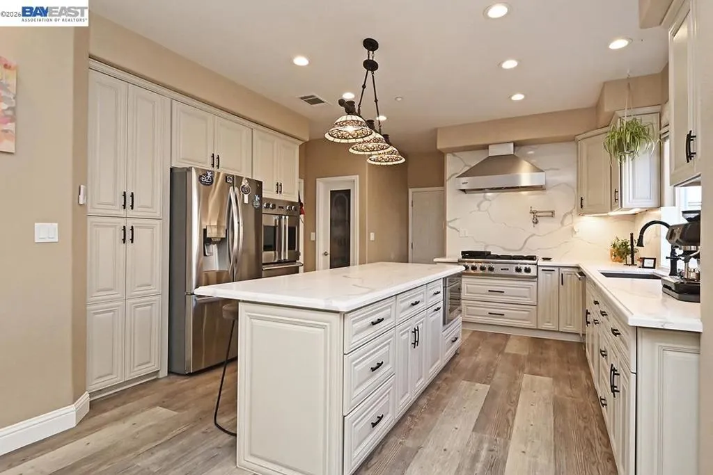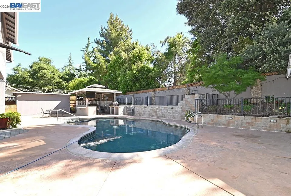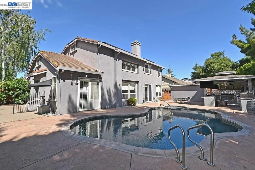 Prime location in Coventry with no HOA! Incredible rear yard with recently-resurfaced pool/spa and large shade pavilion featuring an awesome outdoor kitchen with built-in Traeger grill, pizza oven, gas cooktop/oven, sink, fridge, wine cooler, stainless storage, ceiling fan, lighting and gas fireplace. Modern floor-plan features 2 primary suites - one on each floor - perfect for multi-generational living. Beautifully updated island kitchen with high-end Viking appliances, stone counters/backsplash, pot-filler, pull-out cabinetry and walk-in pantry. Bathrooms remodeled with quartz counters and backsplash. Hardwood floors, recessed lighting, surround-sound and double-sided fireplace. New HVAC and water heater. Whole house fan and solar power. Outside you can also enjoy an upper sitting area, garden space and citrus trees. 2 storage sheds, recently resurfaced pool, new pool sweep, drainage and sprinkler system. Convenient 3 car garage. High end staircase chair lift installed 5 years ago, ideal for elderly or orthopedic uses. Just minutes to Livermore wine country, downtown dining, shopping and entertainment, as well as area parks and schools.