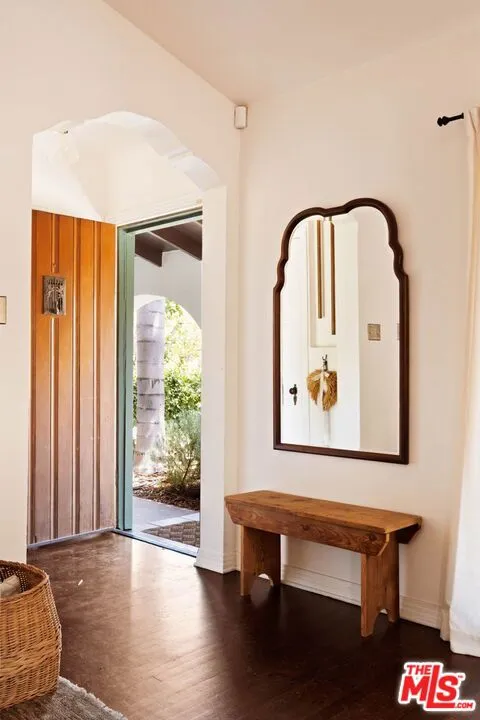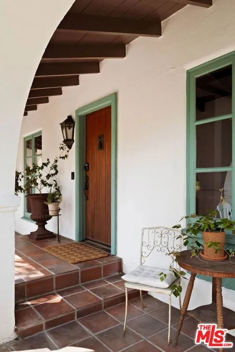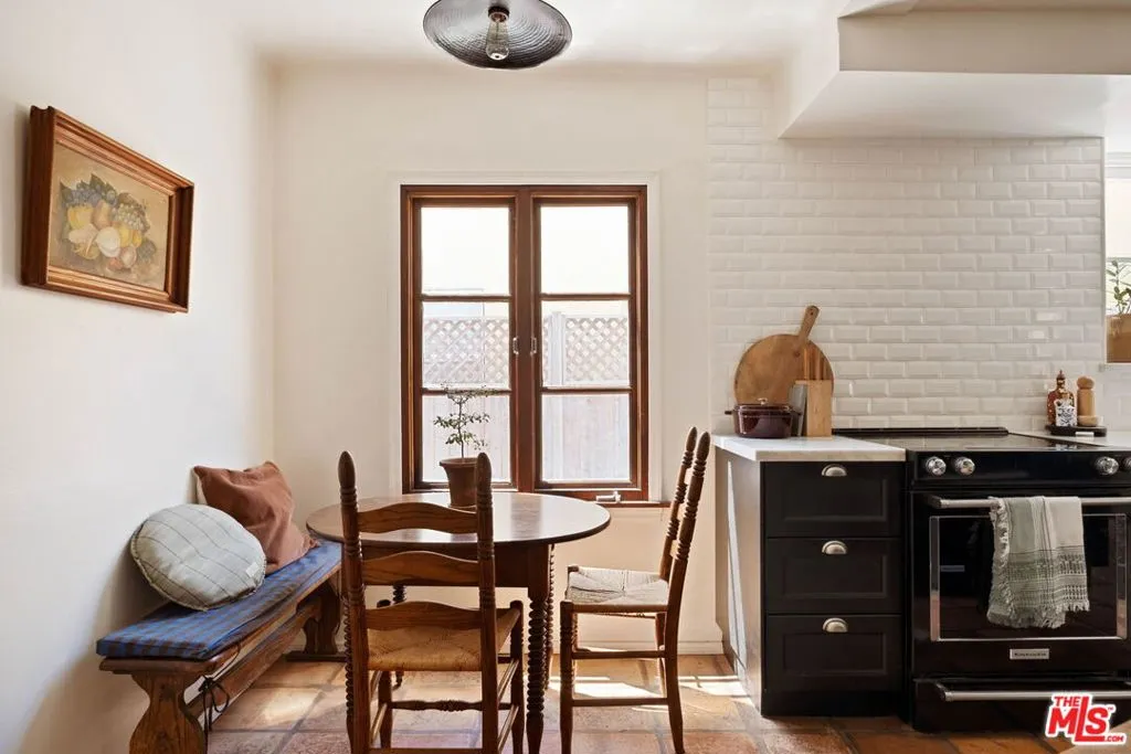 Set on a quiet street, this hard-to-find, truly authentic Spanish home holds onto the character that defines it, with exposed beams, warm wood floors, Saltillo tile, arched doorways and details that give the home its sense of history and charm. The living room is filled with natural light and anchored by a corner fireplace, with a classic arched opening to the dining room. At the center is a recently updated kitchen that feels both current and in keeping with the home, with marble countertops, open shelving, and paneled appliances. The layout remains practical and connected, with an intimate eat-in area at one end and, at the other, beautiful oak built-ins that add both warmth and function while neatly integrating the laundry. The bedrooms are well proportioned and comfortable. The primary sits toward the back with doors that open directly to the yard, bringing in light and creating an easy indoor-outdoor flow. The en-suite bath is bright and thoughtfully finished, while the second bath offers a soaking tub, rain shower, and built-in storage with a simple, classic sensibility. Outdoors, the yard is open and inviting, with mature trees, thoughtful planting, and a dedicated vegetable garden that give it a quiet, magical feel. It is a space that feels established and easy to enjoy, whether for everyday living or gathering with friends. The finished garage offers excellent built-in storage and flexibility, with potential to evolve over time depending on your needs. Homes like this do not come along often, where the character is still intact and the updates feel in line with what was always here, a true Spanish at heart.
