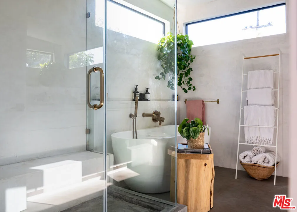 Tucked behind gates in the heart of Mar Vista, this Casey Blanco-designed contemporary is defined by bold architectural lines, rich materiality, and an effortless connection to the outdoors. Wrapped in dark cladding and softened by lush landscape, the home unfolds through walls of sliding glass, where natural light, garden views, and ocean breezes animate the interiors. Wide-plank oak floors, elevated ceilings, and warm, layered living spaces create a quiet sophistication throughout, balancing openness with intimacy. Designed for both everyday living and gathering, the home spills out to a series of beautifully composed outdoor moments, from the pool and spa to verdant lounge spaces and a rooftop deck designed for sunset evenings under the coastal sky. The 5-bedroom, 4.5-bath floor plan is both refined and livable, anchored by a serene primary suite opening to the landscape and complemented by flexible bonus spaces. Set in one of the Westside's most beloved neighborhoods, near the iconic Gregory Ain enclave and moments from Mar Vista's cafes, markets, and some of the city's best neighborhood dining, the home captures a distinctly coastal rhythm, easy rides to the beach, and ocean air drifting inland. A rare architectural offering where privacy, design, and indoor-outdoor living converge.