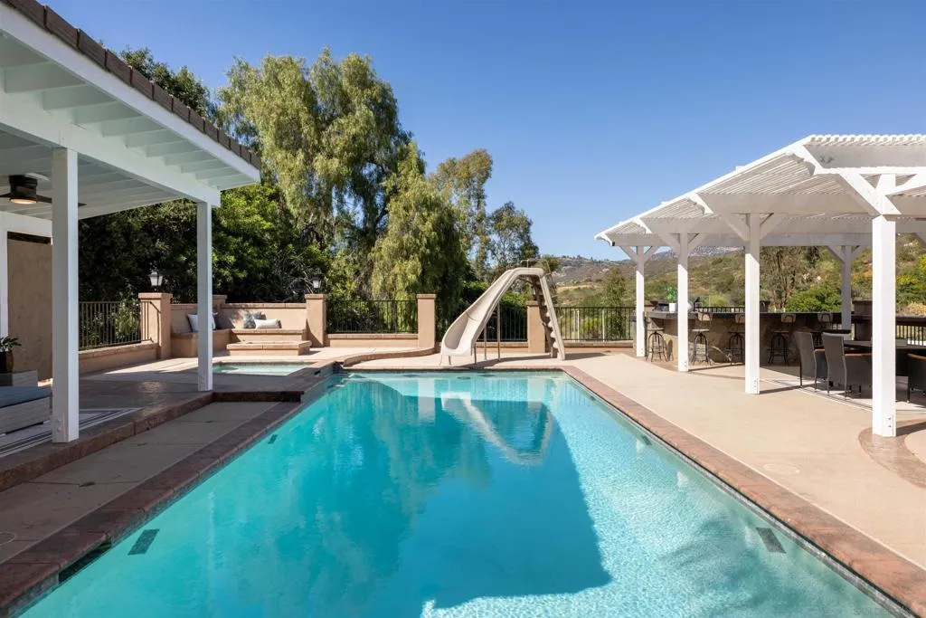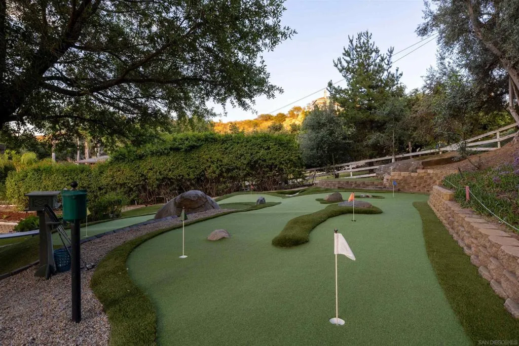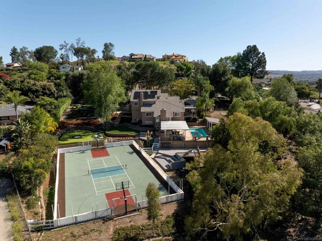 Located on just over 1 acre in the heart of Poway, 14026 Donart Dr offers a rare blend of space, privacy, and resort-style living. The expansive grounds feature a heated pool, spa, new outdoor BBQ entertaining area with updated appliances, multi use pickleball sport court, and a custom pitch-and-putt golf course which is ideal for both entertaining and everyday enjoyment. The home has been thoughtfully updated with major system improvements including AC/HVAC, electrical, irrigation, added solar, and whole home water softener and filtration system. Cosmetic upgrades include luxury vinyl plank flooring, recess lighting, custom paint, and curated landscape. There is an additional flex space that offers potential to be an formal ADU, complete with bedroom, living area, and kitchenette which would be ideal for guests, multigenerational living, or added income. This is a unique opportunity to own a property with usable land that has exceptional outdoor amenities and room for further upside.