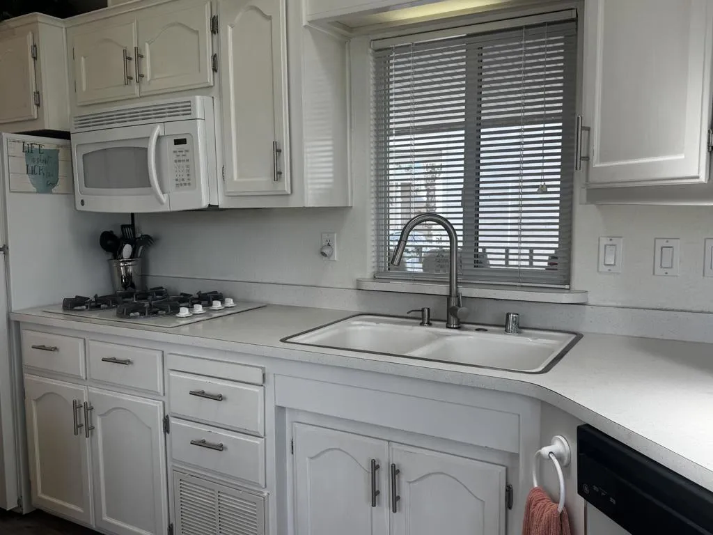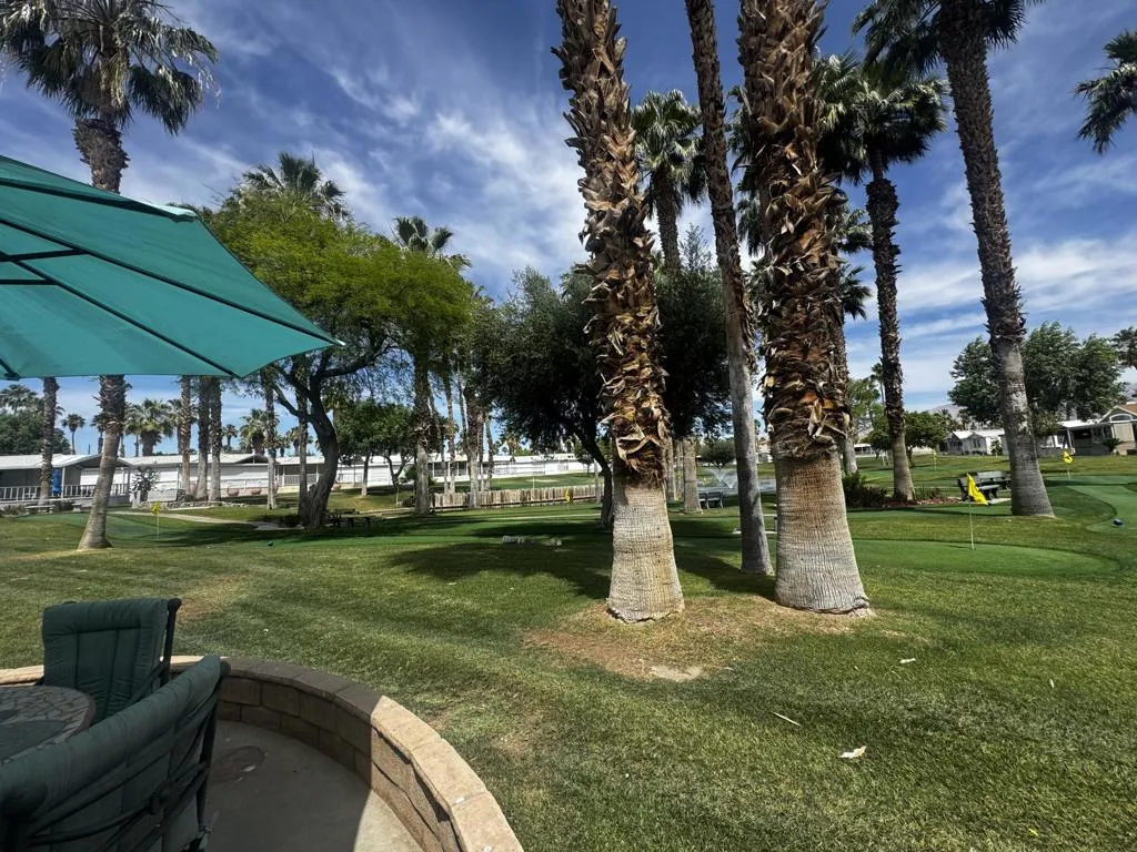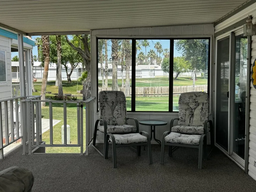 This beautifully maintained turnkey park model is perfectly positioned on golf course overlooking the putting area, offering stunning lake views and breathtaking vistas of the Mountains. Enjoy unforgettable sunsets from the expansive deck and additional seating areas enhances both style and durability creating the perfect outdoor retreat.Located within the highly sought-after Rancho Casa Blanca (RCB), this lushly landscaped 80-acre resort-style community features 801 individually owned park models and RV sites. Residents enjoy an exceptional lifestyle with two spacious clubhouses that serve as vibrant social centers, along with four satellite buildings offering laundry facilities, mail services, heated pools, and relaxing spas.Ownership includes FREE GOLF on the 18-hole par-3 course, plus access to a 9-hole putting course, multiple chipping and putting greens, six heated pools and spas, tennis and pickleball courts, shuffleboard, horseshoe pits, and a fully equipped fitness center. With over 60 clubs and activities, there's truly something for everyone.For added peace of mind, this guard-gated community offers regular security patrols. Whether you're seeking an active, social lifestyle or a peaceful desert retreat, Rancho Casa Blanca delivers the best of both worlds--all easily enjoyed by golf cart.Occupancy is limited to 270 days per calendar year (not consecutive).