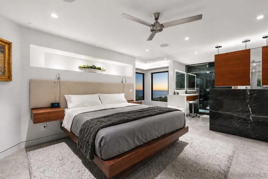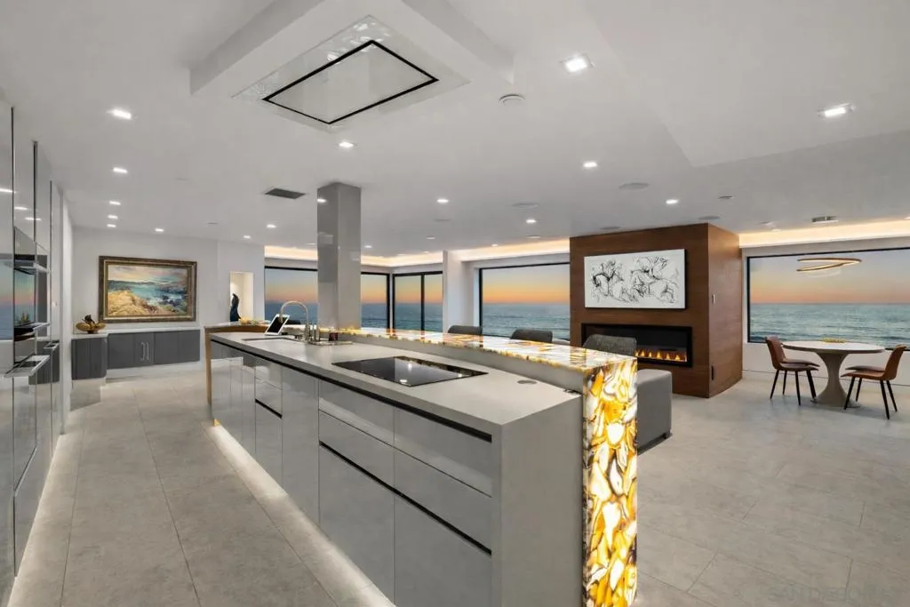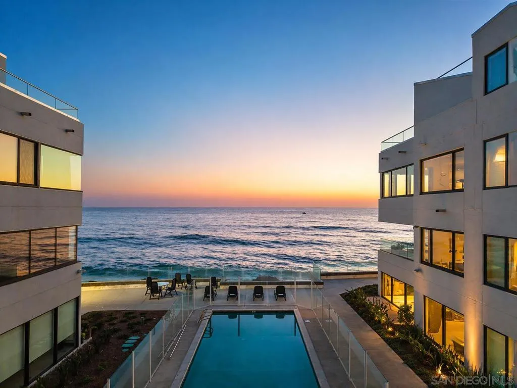 Perched directly on the coveted La Jolla coastline, Residence 104 at 100 Coast Blvd offers a rare, single-level living experience where architecture and ocean exist in perfect harmony. Walls of glass dissolve the boundary between indoors and out, panoramic views of the Pacific, an ever-changing backdrop of light, water, and horizon. Recently reimagined with over $2 million in bespoke renovations, this turnkey residence is a masterclass in refined coastal living. Scandinavian minimalism is seamlessly paired with world-class Italian craftsmanship, highlighted by award-winning Aster Cucine kitchen and bath cabinetry, a dramatic backlit agate bar, and a full suite of Miele appliances. Custom walnut solid-core doors, integrated Pianca wardrobe systems, and curated finishes throughout elevate both form and function. The primary suite is designed as a private sanctuary, featuring a spa-caliber steam room, Jacuzzi whirlpool tub with ceiling-mounted filler, and a statement fireplace—one of three thoughtfully placed throughout the home. Advanced smart home technology, state-of-the-art lighting and sound systems, and comprehensive soundproofing provide a level of comfort and control rarely found in oceanfront properties. With direct access to the sand at Whispering Sands Beach, this is a truly rare offering—where the sound of the surf, the salt air, and uninterrupted coastal views become part of everyday living. Designed by Jesper Pedersen this residence is not simply a home, but a curated coastal experience—private, sophisticated, and undeniably exceptional. Some of the photos have been altered to digitally remove the scaffolding that was present during the photo shoot and that may or may not be present at the time of showings.
