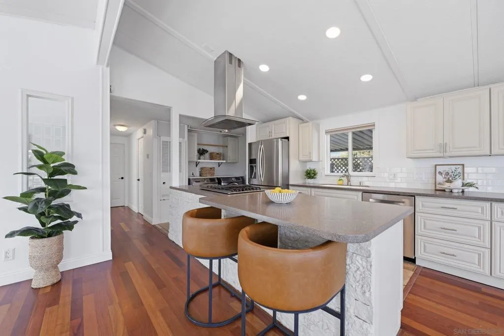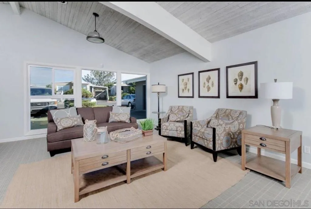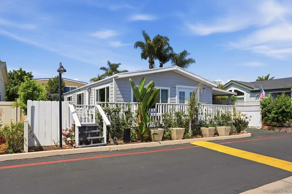 Live the Southern California dream in this charming beach cottage just steps from the sand! Tucked in a private, quiet Carlsbad location with serene meadow views, this well-maintained 2-bedroom home with optional 3rd bedroom or office features numerous windows that fill the space with natural light, beautiful wood floors with inlays, and a flexible layout. Enjoy coastal living with ocean breezes, a wrap-around wood deck, private courtyard, and low-maintenance outdoor space—perfect for relaxing or entertaining. Additional features include a large storage shed, carport, and in-home laundry and community clubhouse, game room, sauna, pool and spa. Located in a desirable all-ages park surrounded by multimillion-dollar homes, this practically beach front property offers rare privacy in a peaceful setting, while still being close to public transportation, shopping, and everything Carlsbad has to offer. Offered at $285,000 with $3,195/month space rent and LOW TAXES!—an exceptional opportunity to enjoy an exclusive coastal lifestyle at a fraction of the cost! Contact Chrystal Nowakowski at 760-583-5158 with any questions