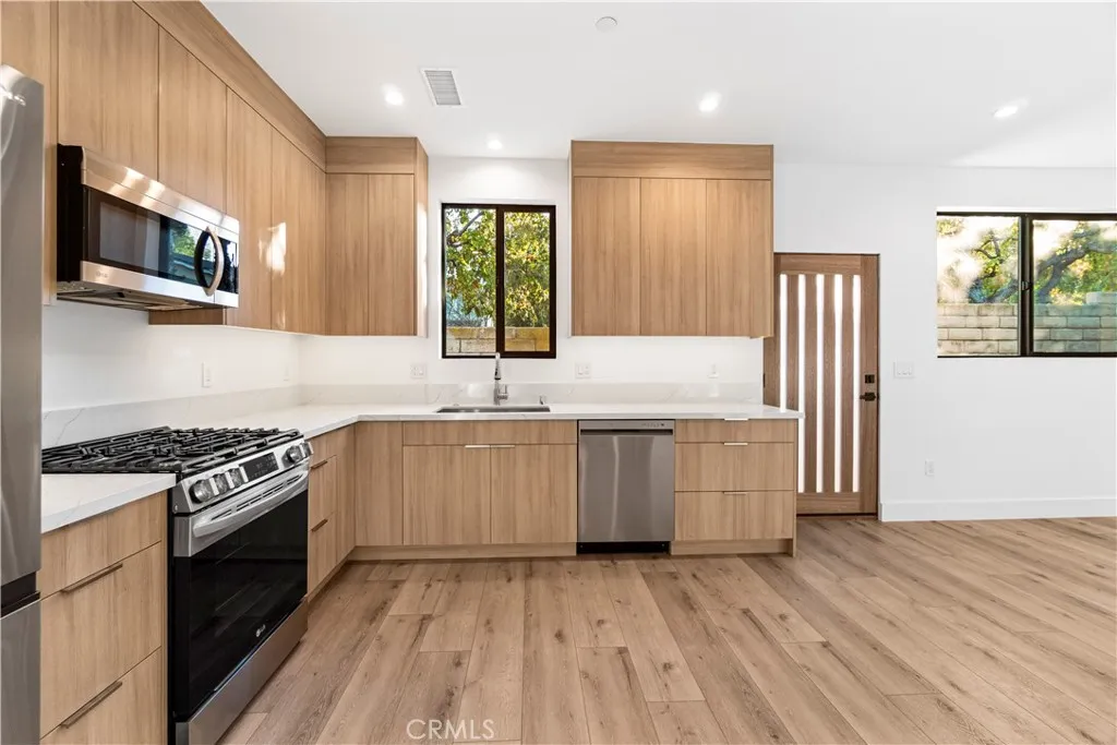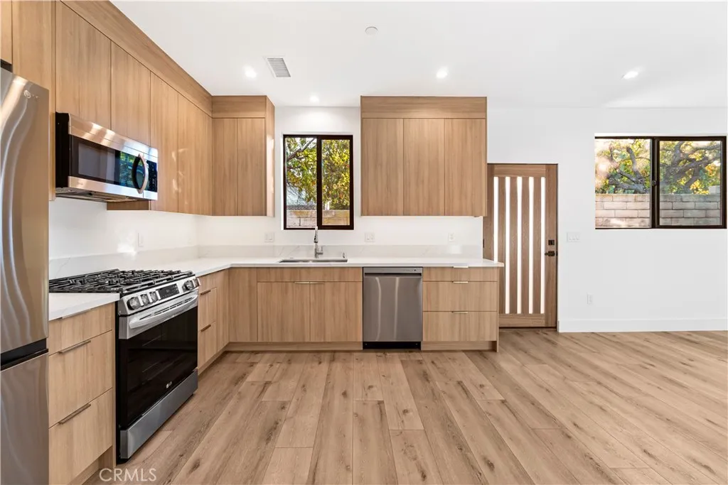 This stunning, 1 Bedroom/1 Bathroom ADU Home in a lovely West Hills neighborhood offers the best of suburban living. With thoughtful details and high end finishes throughout, this beauty feels like a house! Enter through your private access gate to the custom entry door that opens to an open floor plan concept with a full Kitchen and combined dining/living room area. There is even room for an island in the Kitchen! With Custom built kitchen cabinets with efficient organizational touches, soft-close doors/drawers and LG appliances this Kitchen is ready for the chef in you to emerge. the Living Room opens onto your own private back patio and yard with water-efficient artificial turf providing a serene and private outdoor area for relaxing or grilling. The combined Laundry/Linen closet opens from large double doors and is organized with a stackable washer/dryer unit and a custom built shelving system for storage and convenience. The Bathroom is beautifully appointed with upscale finishes and a smart vanity mirror. The Bedroom boasts a custom built 'mini walk-in' closet with finishes that complement the cabinetry and shelving throughout this home. With a private location on a cul-de-sac, located near Chaminade Prep, Malibu Wines, schools and shopping, this ADU home offers modern living in West Hills. See it before it is gone! Available June 1, 2026. Do not disturb Occupants.