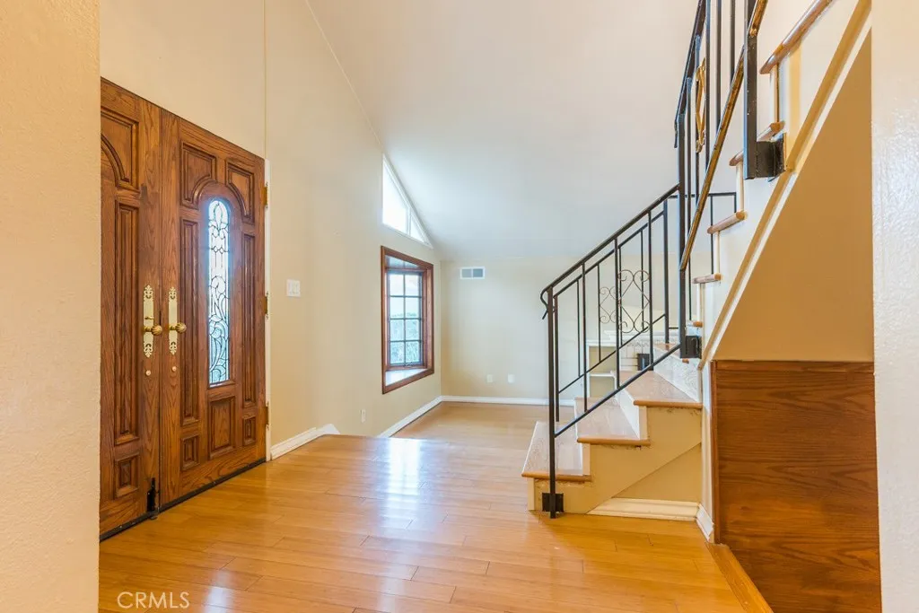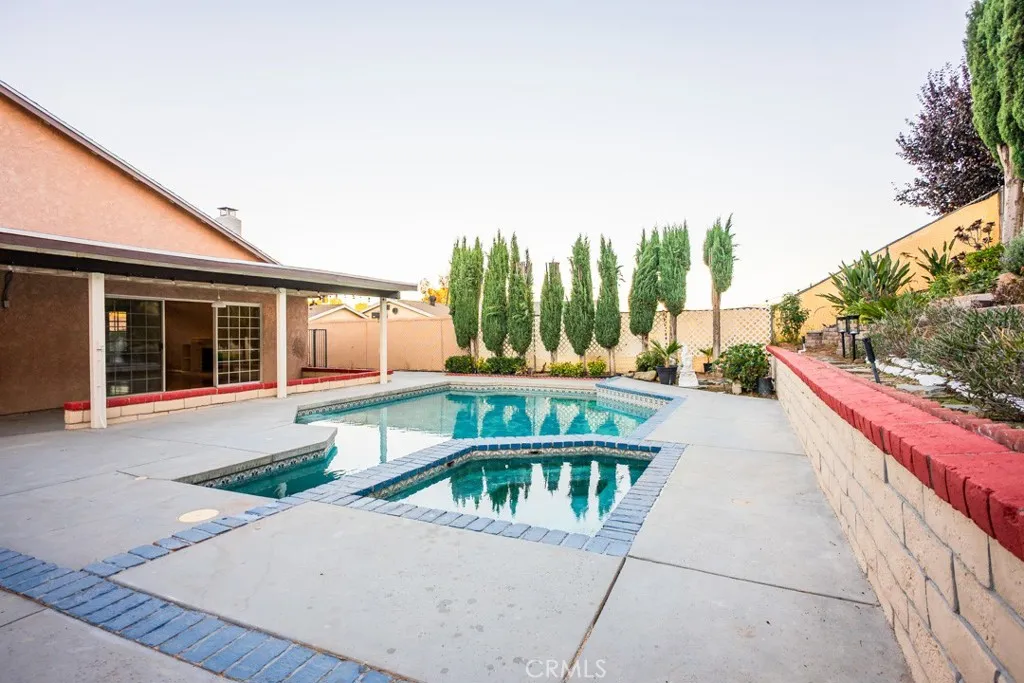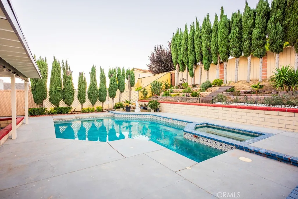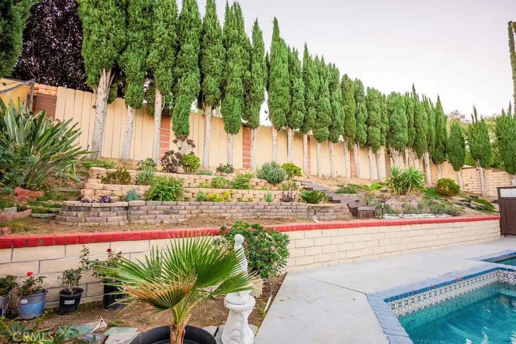 NEW HVAC SYSTEM!! Downstairs Bedroom and bathroom two story home in the highly desired Monteverde tract of Valencia, a rare gem in prime location! This beautifully upgraded residence sits on a private elevated lot surrounded by mature cypress trees, offering full backyard privacy and a peaceful atmosphere. Inside, you'll find a spacious living room with a classic brick fireplace and large diamond-paned windows that fill the space with natural light. The upgraded kitchen features granite countertops, stainless-steel appliances, rich cabinetry, and a charming dining area overlooking your sparkling backyard oasis. Upstairs, the primary suite offers dual French door to a private balcony, a walk-in closet, and a dual-sink vanity with a standing shower. Additional bedrooms are spacious and bright, with plenty of flexibility for family or guests. The entertainer's backyard is a true escape — featuring a sparkling pool and spa. The front garden, elevated above street level, creates a sense of tranquility and total privacy from the moment you arrive. With a new HVAC system, no HOA or Mello Roos, and proximity to top schools, parks, and restaurants, this home offers the best of Valencia living. Make this your new home before it's gone!