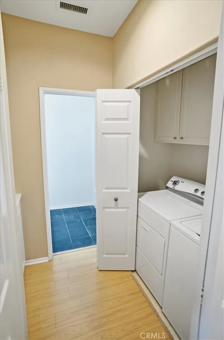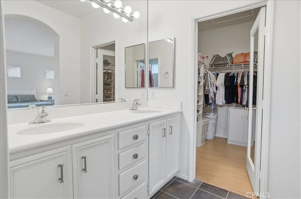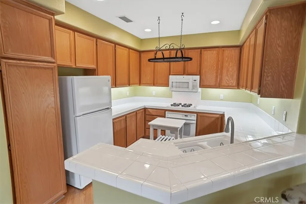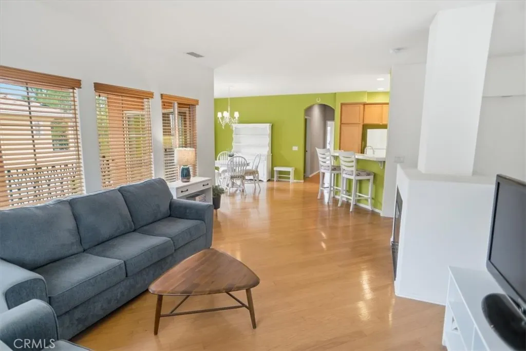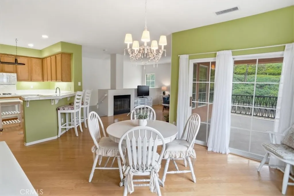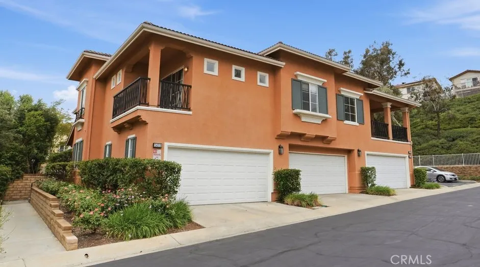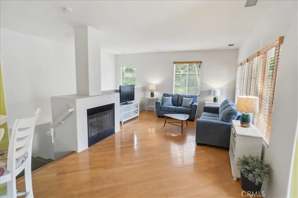 Desirable Valencia Cornerstone condominium offering comfort, privacy, and an ideal location. This 2-bedroom, 2-bath upper-level end unit features approximately 1,349 square feet and lives like a single-story home with no upstairs neighbors. - No Mello Roos Taxes, Warrantable, and also FHA spot approval eligible! The open layout is filled with natural light and enhanced by wood flooring, a cozy gas fireplace, and two spacious patio decks that extend the living space outdoors. The kitchen flows seamlessly into the main living areas, creating a functional and inviting environment. The primary suite includes a walk-in closet and a private bath with dual sink vanity. Additional highlights include inside laundry and a direct-access 2-car garage. Situated in a quiet cul-de-sac location within a low-density community featuring only three units per building, ample guest parking plus residents enjoy access to multiple pools, spas, BBQ areas, picnic spaces, and a playground. Conveniently located near paseos, trails, parks, shopping, dining, and top-rated schools.