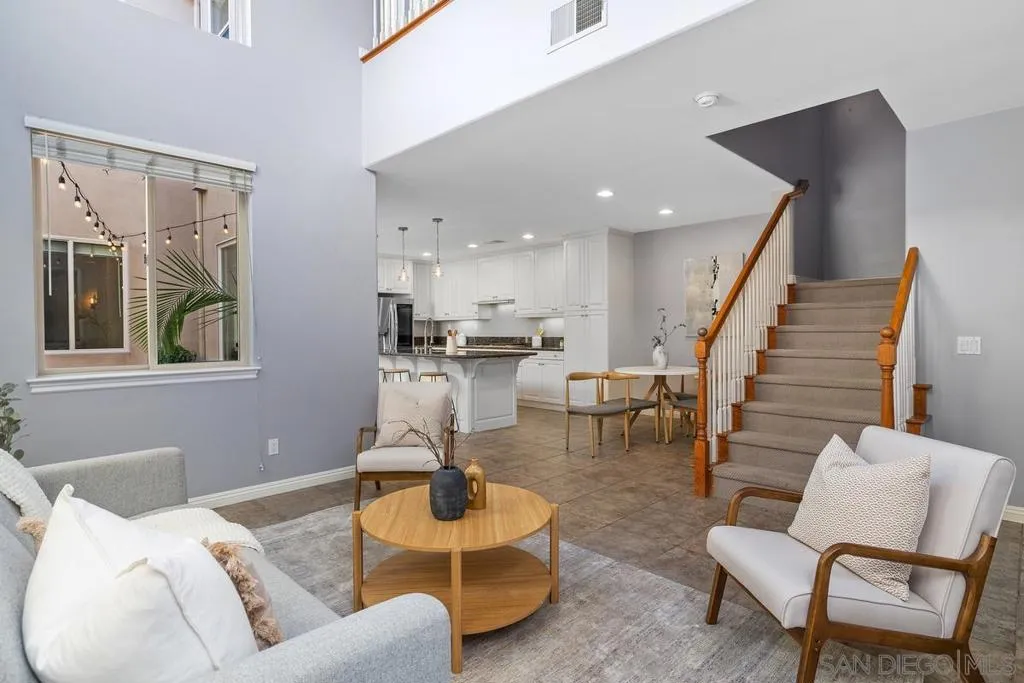 Beacon Point Plan Three with a Third Story Loft and Owned Solar!!! This is the largest sq. ft home with only 9 total in all of Liberty Station! What's unique about this home is that is is perfect for a couple who both work from home and need their own separated office spaces or you are in need of a fourth bedroom and another two office spaces. There is an office space downstairs conveniently located near the formal living and formal dining room and the third story loft has a very large open room that could be converted to a fourth bedroom and possibly a fourth bathroom and it is separated from a office space. The Owned 6.93 Kilowatts Solar was installed in 2021 with 21 panels. Other features of this home include all Stainless Steel Appliances, Granite Countertops and Fresh Interior Paint. The Master Suite approx. 32x22 and the Master Bath features a large soaking tub, separate shower, dual sinks, make up station and also has a very large customized walk-in closet. The two additional bedrooms are on the same floor but on the opposite end of the home for privacy. The formal living room has double doors leading out front and the family room with a focal gas FPL is open to the kitchen and breakfast table area and looks out on the backyard with an added deck. All located in the walking village of Liberty Station with a 46 acre waterfront park, Rock Church, The Lot Movie Theater, Loma Club Golf Course, Trader Joes, High Tech Schools, Stone Brewery, Liberty Station Public Market and so much more!
