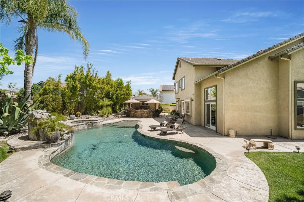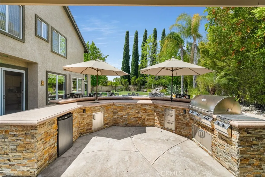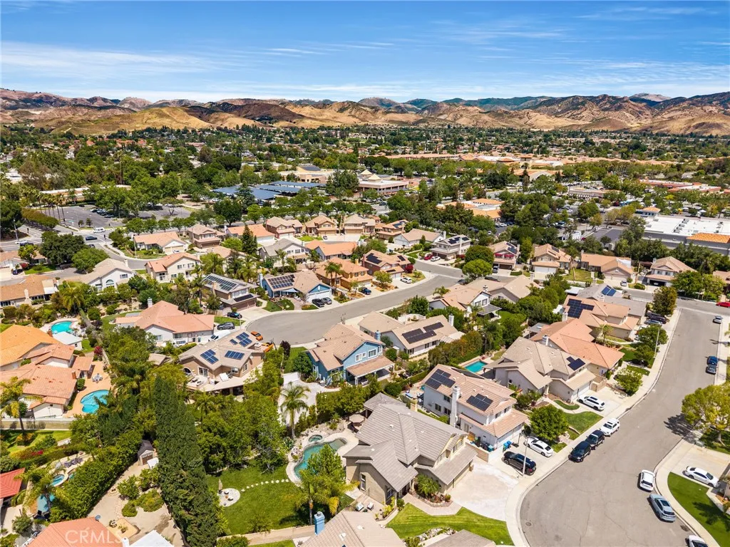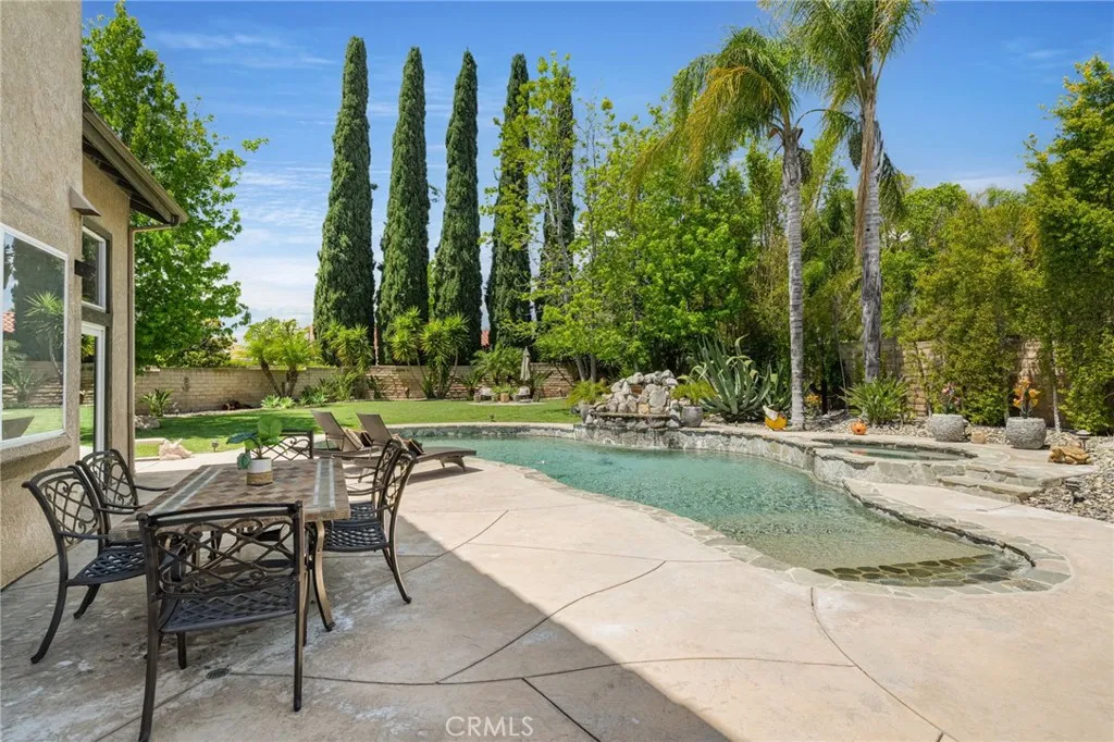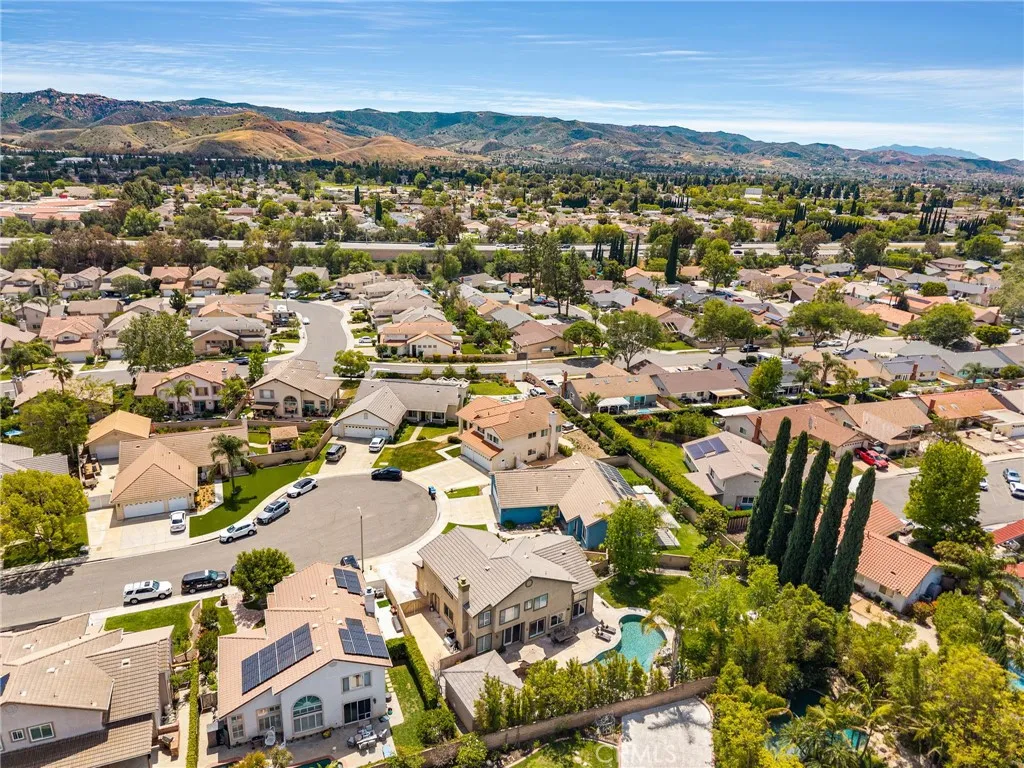 Welcome to this gorgeous turnkey 5-bedroom, 3-bath home nestled in beautiful Simi Valley, perfectly situated at the end of a quiet cul-de-sac on a sprawling 11,761 sq. ft. lot—one of the largest in the community with a 3-car garage, no HOA, and desirable RV access. Step into your own private resort-style oasis featuring a breathtaking beach-entry PebbleTec pool with waterfall, an outdoor barbecue and entertaining area, and a stunning outdoor living space designed for year-round enjoyment. High-end dual-pane Andersen sliding doors create a seamless indoor-outdoor connection, perfectly complementing the indoor/outdoor wired surround sound system and making this home ideal for unforgettable gatherings. Inside, the home offers an amazing layout that flows seamlessly from room to room. The beautiful living room welcomes you with soaring high ceilings and abundant natural light. The remodeled kitchen showcases modern finishes and opens effortlessly into the main living areas, complemented by recessed lighting and rich engineered hardwood flooring throughout. This spacious home features five generously sized bedrooms, including a highly sought-after first-floor bedroom and full bath—perfect for guests or multigenerational living. Immaculately maintained and move-in ready, every detail reflects pride of ownership and thoughtful design, enhanced by a warm southwest-inspired style. Conveniently located near local shopping, dining, and easy access to the 118 freeway, this exceptional property offers the perfect blend of comfort, functionality, and resort-style living. This home truly has it all. Call today for a showing!