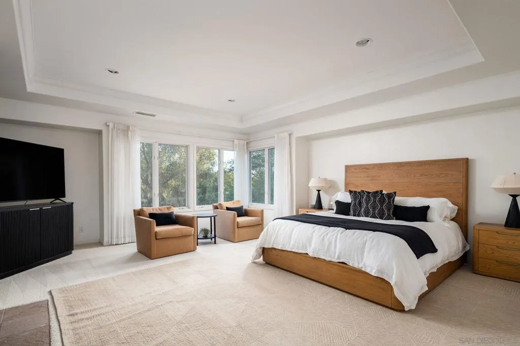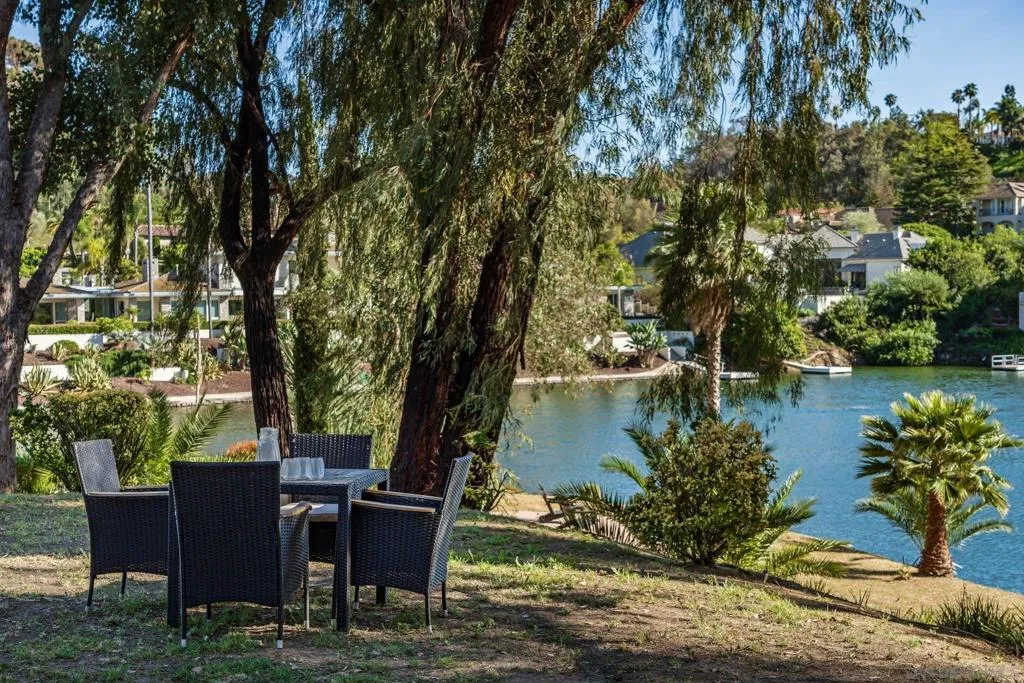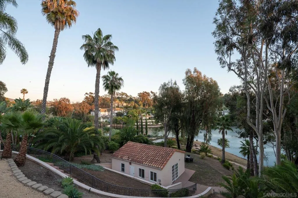 Enjoy lakefront living in the prestigious guard-gated community of Fairbanks Ranch. This exceptional estate offers privacy, land, and serene lake views in one of Rancho Santa Fe’s most coveted neighborhoods. The main house features soaring ceilings, multiple living areas, and 5 total bedrooms including two en-suite on the main level, providing ideal accommodations for guests or multigenerational living. The upstairs master suite serves as a private retreat, complete with a grand bathroom and expansive walk-in closet. The detached guest house sits directly on the lake below with stunning views, its own en-suite bath and kitchenette. Surrounded by mature trees and framed by captivating lake views, the compelling backyard highlights a pool, spa, outdoor kitchen, multiple patios, and a private path down to its own seating area on the lake. Additional highlights include a sauna, water softener, subterranean wine cellar/storage room, wet bar, paid solar, four-car garage, and extended wraparound driveway offering ample parking. Residents of Fairbanks Ranch enjoy 24-hour guard-gated security and an array of amenities including a clubhouse, lake with walking trails, tennis and pickleball courts, playground, and an equestrian center. The property is also close to top-rated schools, Rancho Santa Fe Village, dining, shopping, and the coast.