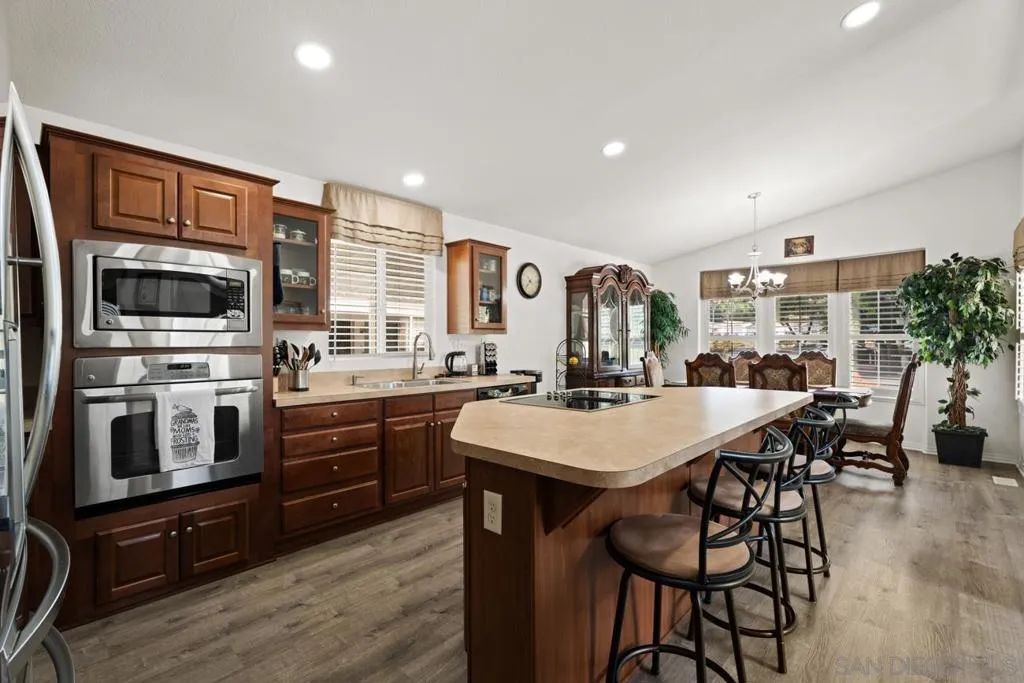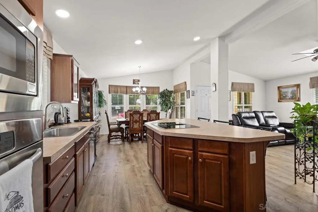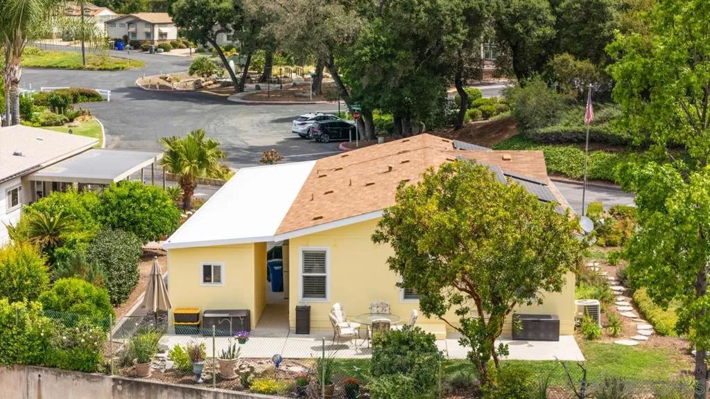 Impeccably cared for and thoughtfully updated, this 2–3 bedroom, 2 bath home offers 1,620 sq ft of comfortable living on OWNED LAND in an amenity-rich LOW HOA 55+community. Built in 2011, it blends newer construction with easy, low-maintenance living, enhanced by SOLAR (leased) and updated electric appliances for the utmost efficiency. Ideally situated on a level lot near the gated entrance and clubhouse, the home features fresh exterior paint, updated plumbing, whole-house water filtration, laminate plank flooring, plantation shutters, and new screens throughout. A flexible floor plan includes an optional third bedroom, currently configured as a home office. Enjoy a true resort lifestyle with access to tennis, pickleball, bocce ball, shuffleboard, a dog park, fitness center, putting greens, and a heated pool and spa—along with a vibrant clubhouse, billiards, and ample guest parking. Located in Champagne Village within Lawrence Welk Resort area, offering golf, dining, spa services, live theater, and a weekly farmers market just minutes away. A compelling opportunity for low-maintenance homeownership in a resort-style setting—where comfort, convenience, and community come together. Open Sunday, April 26, 1-4 Open Sunday, April 26, from 1-4