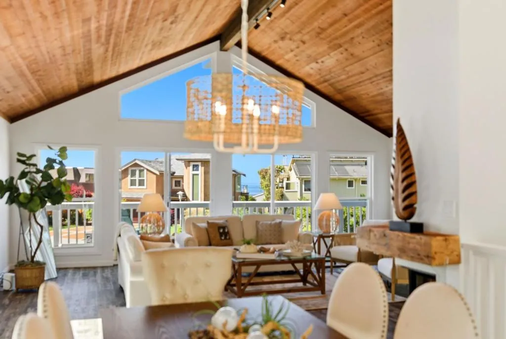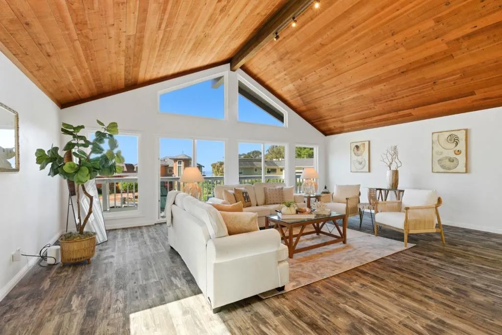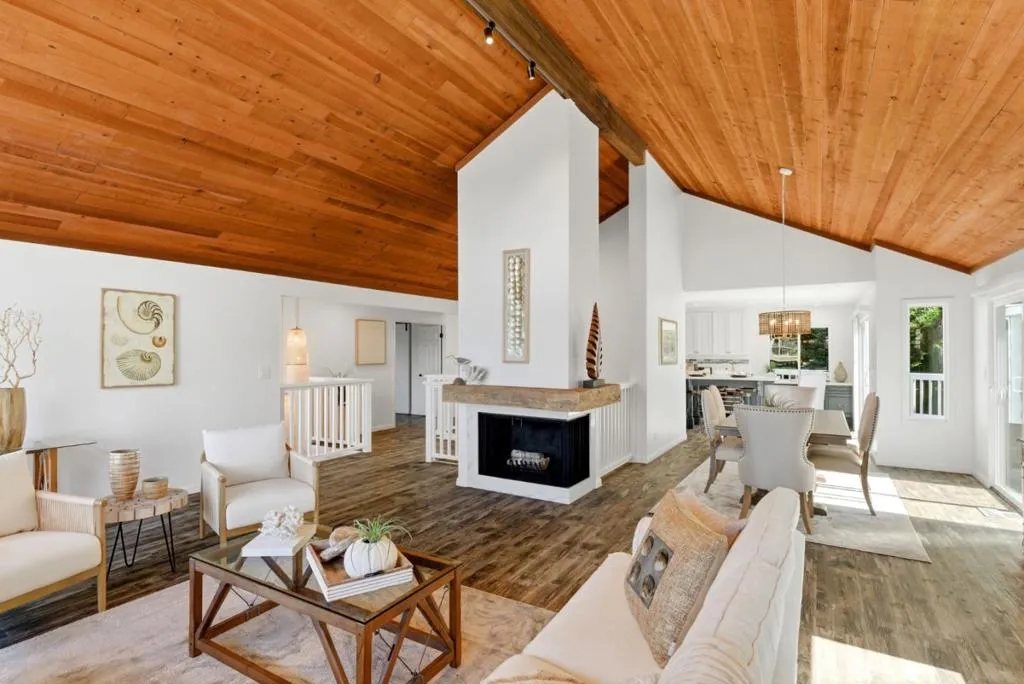 Welcome home to 709 Via Palo Alto, where coastal elegance awaits you!. This remodeled 3 bedroom, 3.5 bath home offers over 2,700 sq. ft. with a two story reverse floor plan designed to maximize light and lifestyle! Enjoy your ocean peeks beneath vaulted redwood ceilings in the living room and primary bedroom. Two cozy fireplaces are perfect for cooler coastal evenings with multiple upper and lower decks that enhance your indoor/outdoor living and entertaining! Spacious custom kitchen with a large island opening directly onto a deck. perfect for morning sun, afternoon wine and bbq's! Two bedrooms, two full baths and a fantastic great room just downstairs for game night or just relaxing. Fully landscaped with a wrap around yard and a gardening space for your vegetables and herbs. Large two car garage with built in storage, space for bikes and boards! Just steps from a private path leading to Hidden Beach, Hidden Beach Park and minutes to Seascape Golf Club, Seascape Fitness, and Seascape Resort with golfing, dining, spa, and resort amenities nearby. From the antique oars that greet you to the custom 100 year old rough-hewn fireplace mantel, these thoughtful features bring warmth and history to this Aptos beach home where gentle breezes complete the experience!