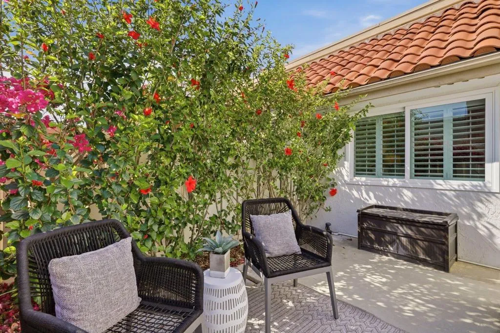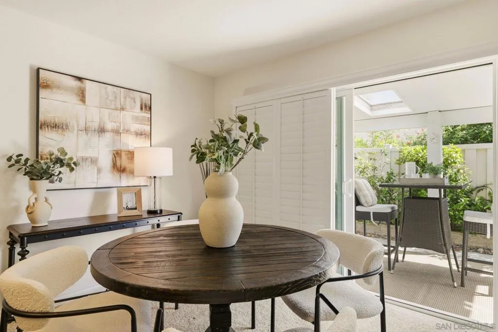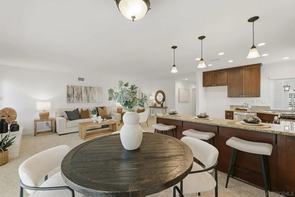 Welcome home to effortless living in this immaculate Oceanside single story! Located in the exceptional 55+ community of Pacifica, this low maintenance home lives spaciously and sits in a serene yet lifestyle-focused neighborhood. Immediately greeted by an inviting great room with a fireplace, open concept floor plan, and newer windows and slider dressed with shutters, this pristine 3 bedroom, 2 bathroom, 1417 ESF home's layout flows easily. At the heart of the home, the renovated kitchen with a large peninsula opens up to the living and dining areas, offering plenty of space for both daily life and entertaining. A slider seamlessly invites the indoors out to a covered patio and peaceful, private backyard with lush plants and vibrant flowers. The spacious primary suite features a walk-in closet and ample cabinetry in the attached bathroom, and both bathrooms match the tasteful design of the kitchen. With a 2-car garage, laundry, plentiful storage, updates throughout, and newer HVAC system, this home offers both comfort and ease. Located close to conveniences yet tucked away, Pacifica features amenities like a pool, spa, clubhouse, tennis courts, shuffle board, sauna, a park, social activities and more, all within a beautifully manicured community that makes life and homeownership simple with exterior maintenance and more covered by the HOA. Come experience a wonderful new dawn on Dawn Ln.