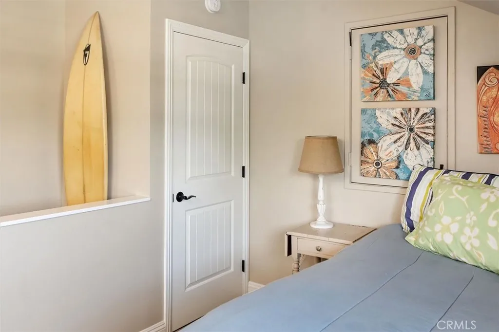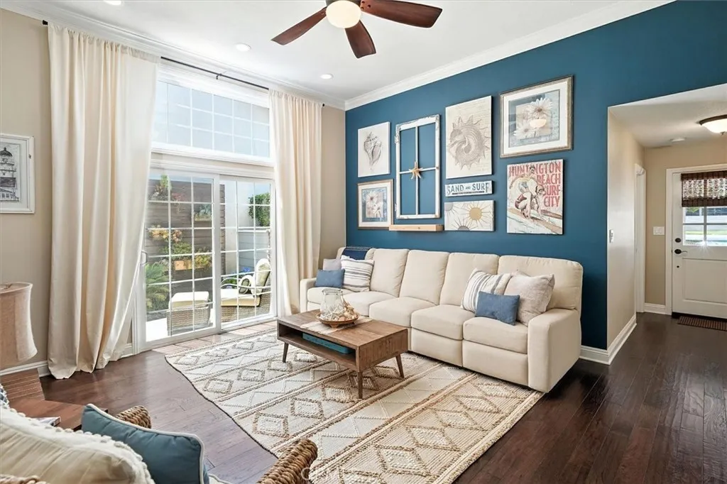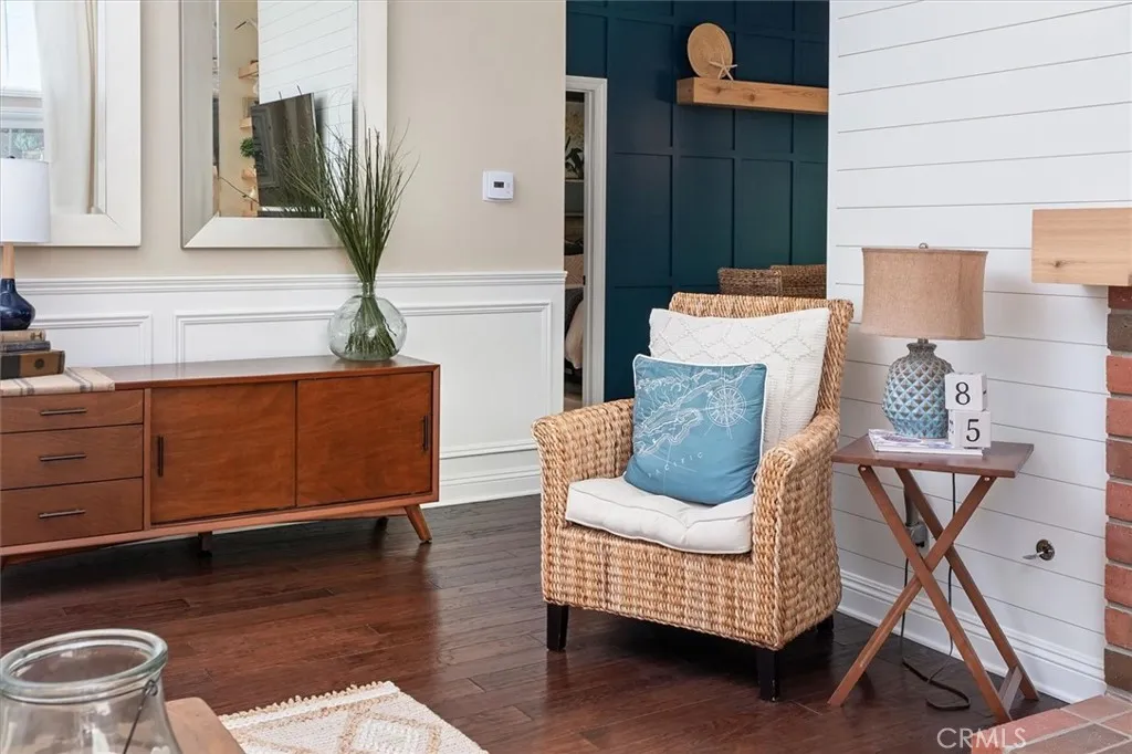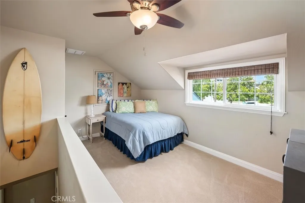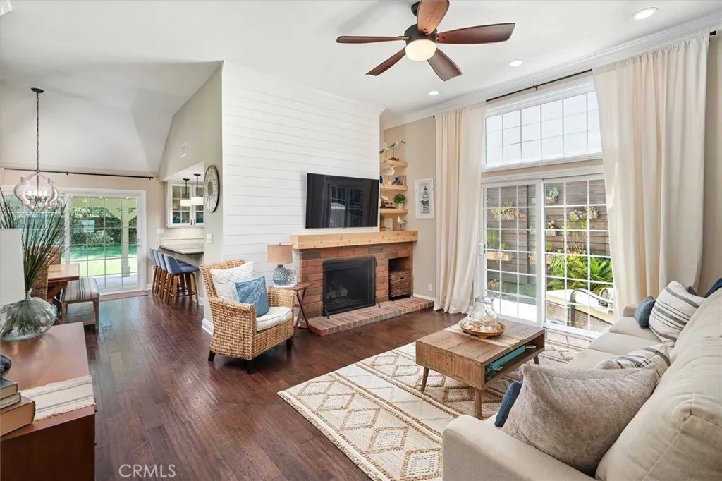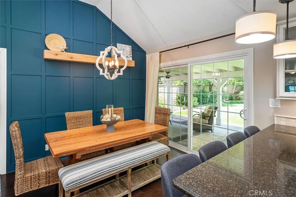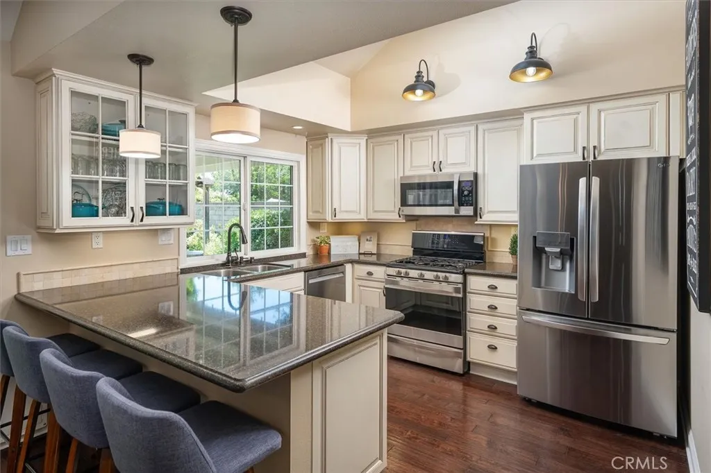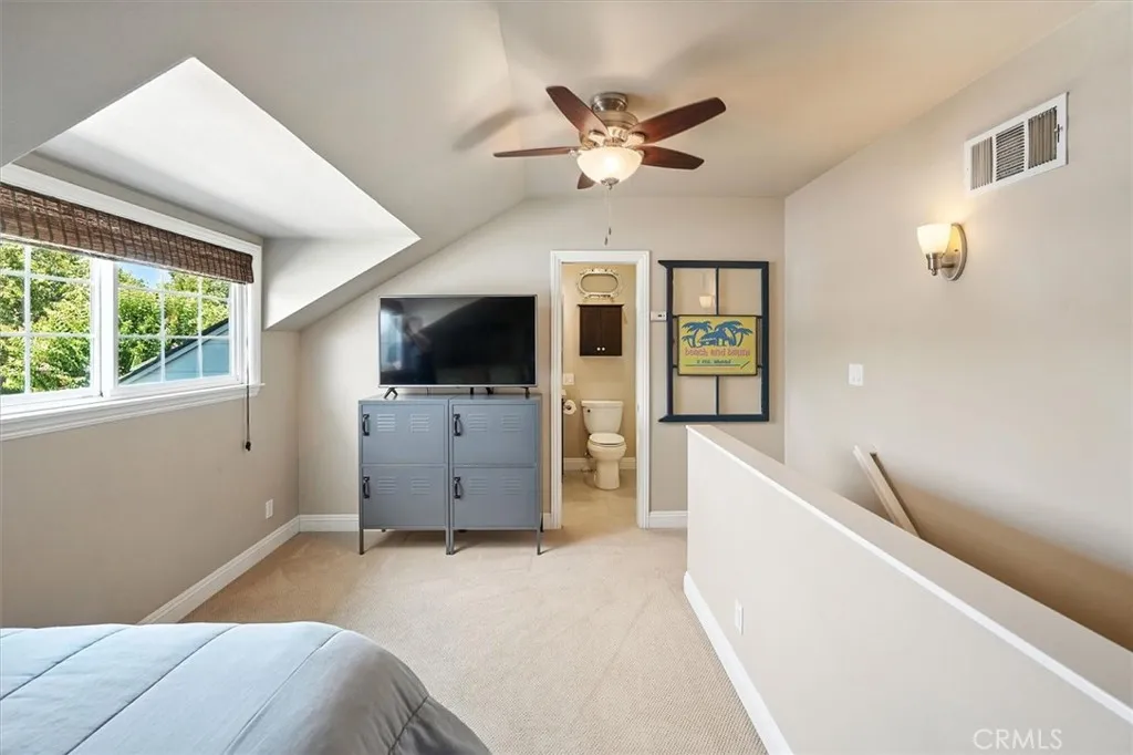 Beautifully renovated and meticulously maintained bungalow-style home on a cul-de-sac in the heart of Valencia, located just behind Granary Square and featuring an oversized backyard and a floorplan that lives like a single story with most living spaces on the main level. Situated in one of Valencia’s most desirable neighborhoods, the home offers exceptional convenience to shopping, restaurants, entertainment, medical facilities, and miles of scenic paseos and biking trails. The community offers neighborhood pools and parks, easy freeway access, and is less than an hour’s drive to the beach. The area is known for its top-rated schools, with no Mello-Roos and low HOA fees. This thoughtfully designed floor plan includes three ensuite bedrooms—two located downstairs, with one currently serving as an office or flex space that can accommodate a king-size bed, and another ensuite situated on the upper floor. The home features wood floors, custom wood paneling and wall treatments, and high ceilings. The kitchen includes quartz countertops, custom cabinets with pull-out shelving, and soft-close drawers and doors, along with an extra pantry. The bathrooms are equipped with new vanities, fixtures, and solid surface counters. The property offers excellent storage with an oversized attic and a backyard shed. Additional features include dual-pane windows, a metal roof, a whole house fan, automatic sprinklers, outdoor lighting, and outdoor ceiling fans. The expansive backyard includes a covered patio and a trash enclosure. The garage is equipped with a workbench, attic storage, and cabinets.