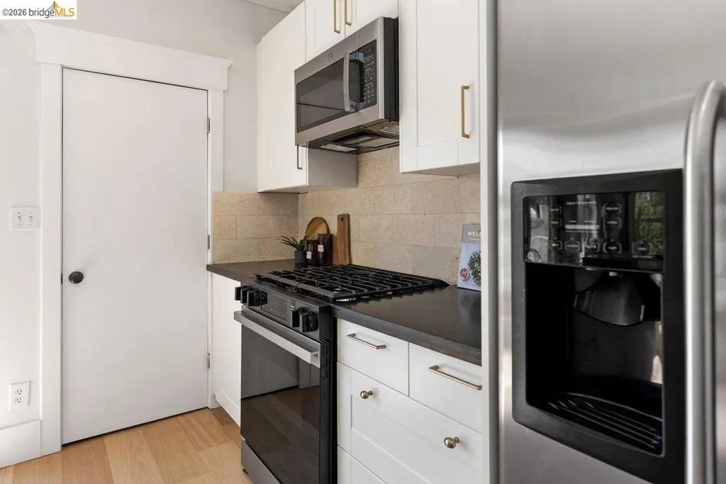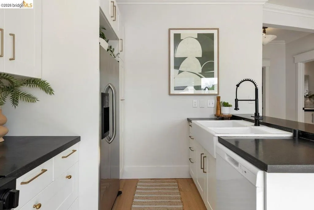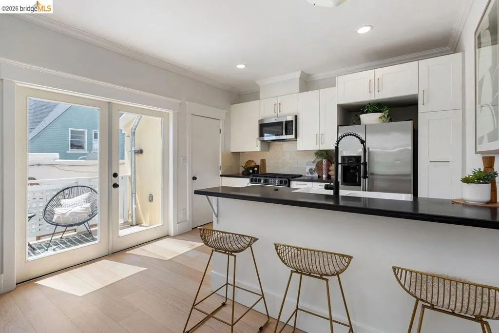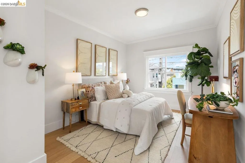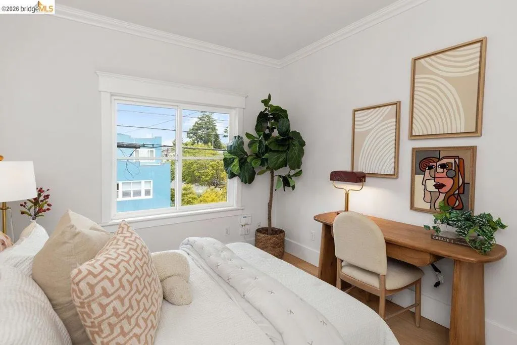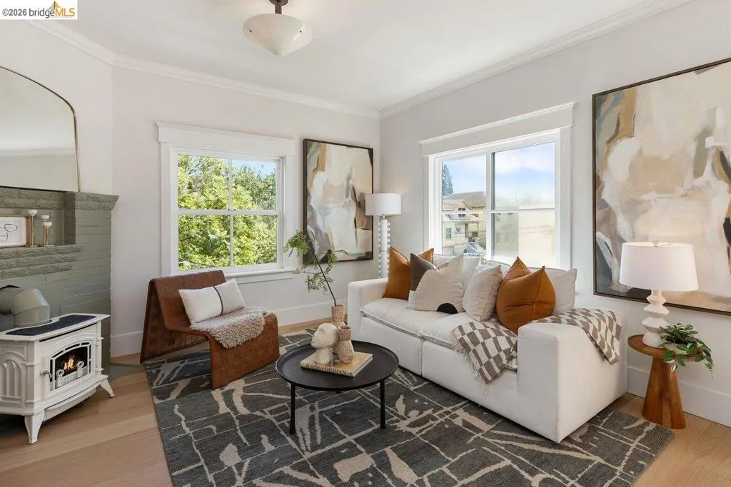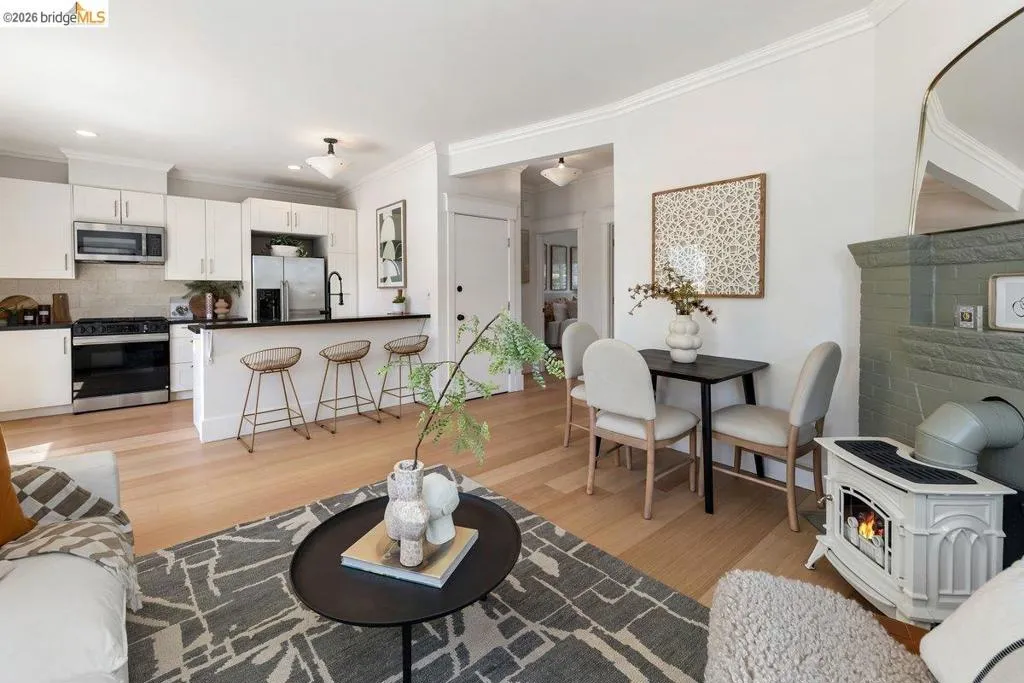 Morning light moves easily through this home. Set along a quiet, tree-lined stretch of Arlington Avenue, this cheery two-bedroom Edwardian unfolds with an immediate sense of calm and openness. Positioned on the second floor of a classic four-unit building, the home’s eastern exposure welcomes soft morning light that gently fills the living spaces as the day begins. The layout has been thoughtfully reimagined into an open-concept design, where the kitchen becomes the natural center of daily life. Anchored by stone counters, stainless steel appliances, and clean modern lines, it’s a space suited for both quiet mornings and easy evenings with friends, spilling out to an inviting balcony just off the kitchen. New engineered wood floors run underfoot, while high ceilings and preserved period woodwork add depth and character, subtle reminders of the home’s Edwardian roots. Every detail supports comfort and ease: dual-pane windows, in-unit laundry, and a seamless flow that makes the home feel larger than its footprint, with virtually no wasted space. And then there is the location. Drawing energy from Temescal's restaurants, shops, and neighborhood rhythm, and with easy access to BART and freeways, the city feels close but never overwhelming. It’s a setting where convenience and character meet, and daily life moves with a bit more ease. A home that lives simply, and lingers quietly.
