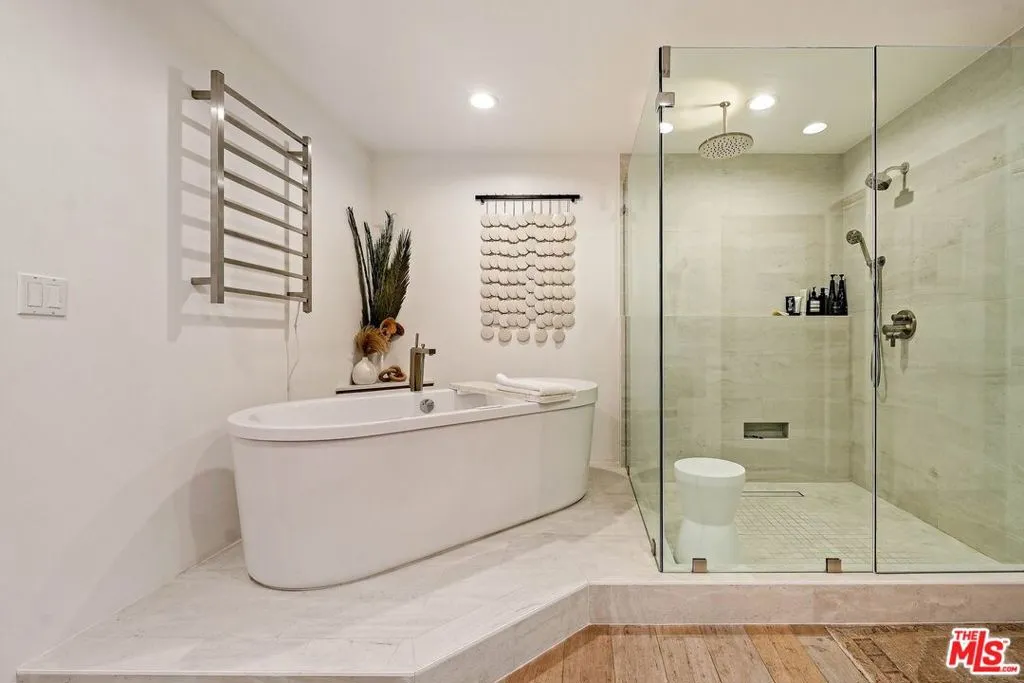 VENICE. BROOKS AVENUE LOFTS. $2,295,000 Five minutes to Abbot Kinney, Erewhon around the corner, the beach a short jaunt west. You won't need your car here. That's the neighborhood. Inside Brooks Avenue Lofts, an intimate six-unit building where everything feels intentional, this 2,480 sq ft townhome was completely reimagined in 2021 with over $200K in upgrades. Three bedrooms, three baths, move-in ready. The main floor opens wide with French oak, floor-to-ceiling windows, sun-drenched and built for living. The kitchen has a Viking six-burner range, Cambria quartz, pot-filler, custom LED shelving, and a farmhouse sink. A bonus room with roll-up door opens to a private terrace. That's where people gravitate. The primary suite takes the entire second floor with motorized shades on massive windows, a fireplace, and a private balcony. The ensuite is spa-quality: dual Caesarstone vanities, Axor fixtures, jetted Duravit tub, dual showerheads. Your own retreat. Third floor: two bedrooms with custom Italian Murphy beds, Jack-and-Jill bath with heated towel rack, slate floors, frameless glass shower. Outside, there's a jasmine-scented patio with a Lynx BBQ and a shared courtyard with built-in fireplace and grill for gatherings. Real outdoor living. Systems include a new Navien tankless water heater, two-car garage with direct access and EV charging, plus ample storage. Motorized shades throughout the primary floor. The HOA is $800/month and covers building insurance, exterior maintenance, roofing, landscaping, termite protection, elevator, and gate systems. True lock-and-leave.