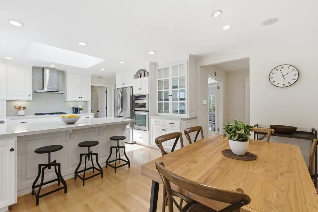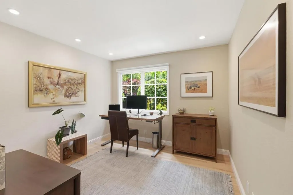 Tucked against the serene Los Gatos hillside with a peaceful greenbelt backdrop, this light-filled home offers privacy, space, and seamless indoor-outdoor living. Large windows, skylights,and glass French doors fill the home with natural light.The layout features multiple spaces for living, dining, and entertaining.The remodeled kitchen includes stainless steel appliances, and two natural stone fireplaces add warmth and character.The primary bathroom and powder room have been updated. Smart features include switches, appliances, a garden watering system, a water softener, and a wine fridge. Additional upgrades include central A/C, a new fridge, a gas range, a washer and dryer, an encapsulated crawl space with a sump pump, attic storage with a hoist, and an EV charging outlet.The private backyard with hillside backdrop features an outdoor kitchen,dining areas, and a detached workspace w/electrical and WiFi. Located in a quiet, welcoming neighborhood with easy access to hiking and biking trails, scenic roads, and downtown Los Gatos.This home blends convenience w/a peaceful lifestyle.Enjoy a strong sense of community, especially during holidays, w/festive neighborhood events throughout the year. Located within the Alta Vista Elementary, Union Middle, and Leigh High School districts.