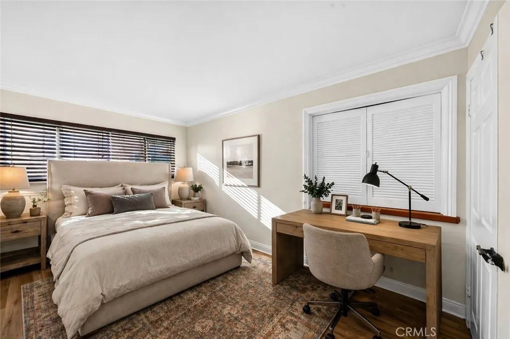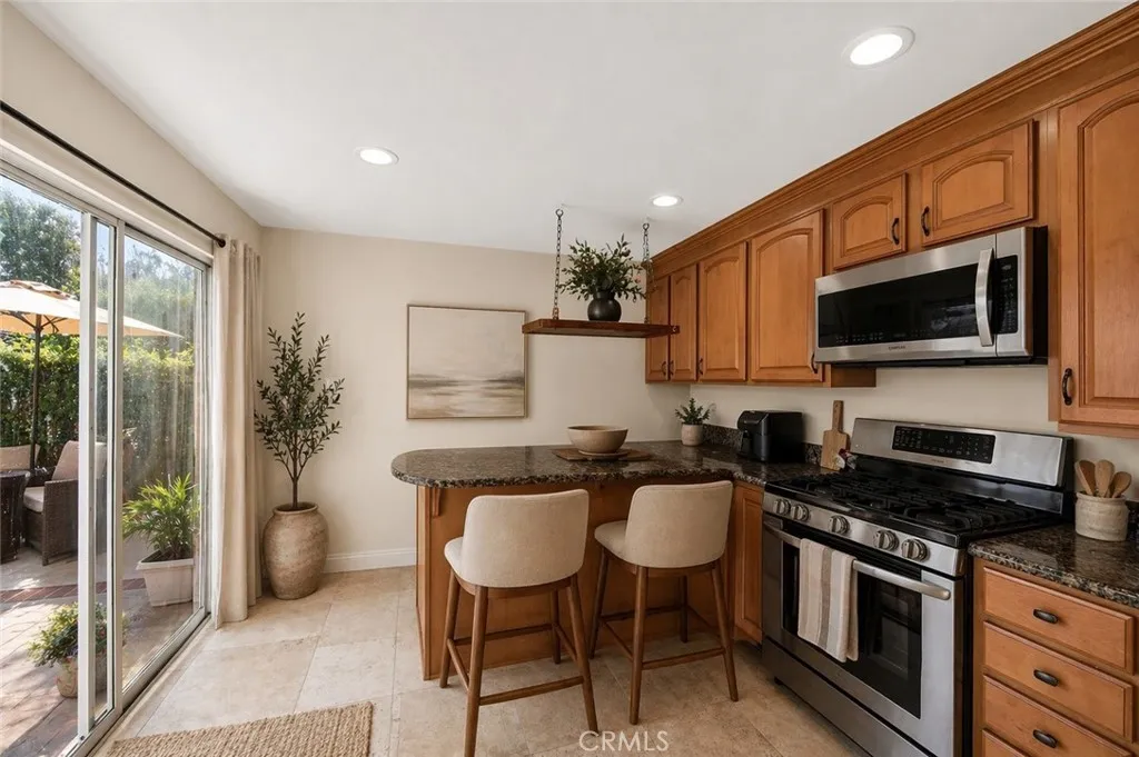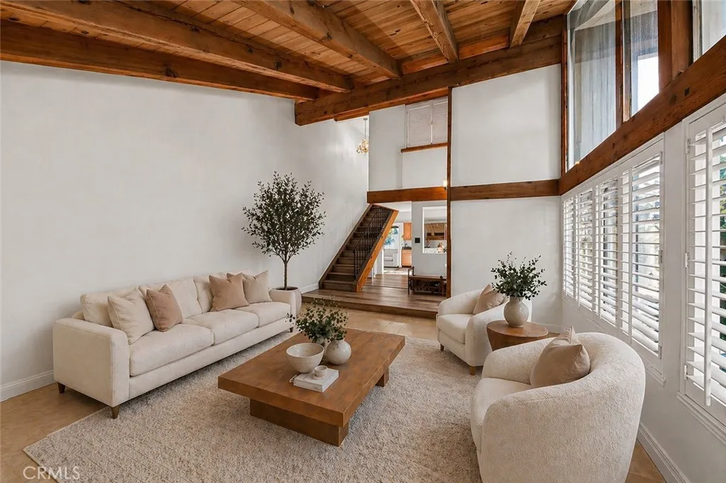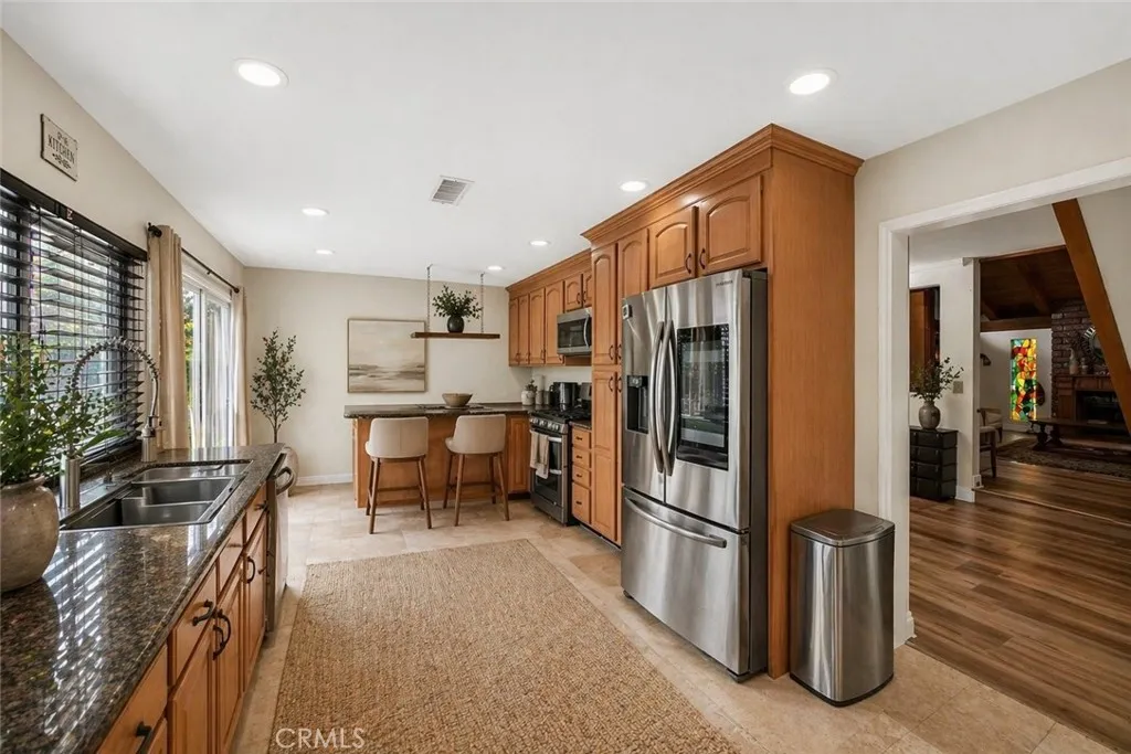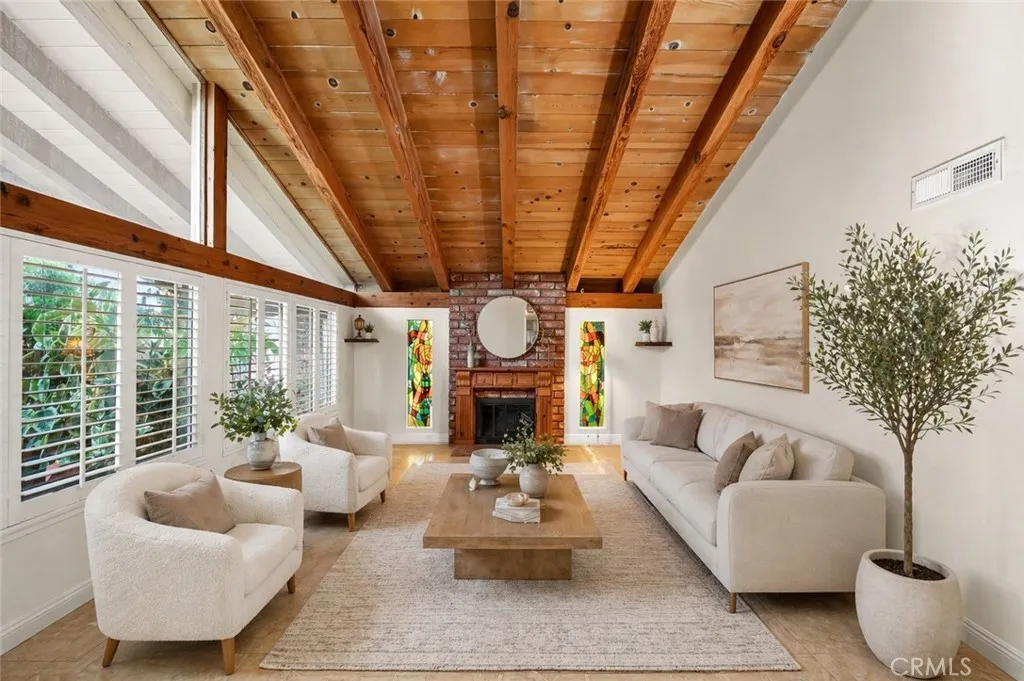 Luxury living in the prestigious city of Irvine, nestled within the highly sought after Racquet Club community. This beautifully remodeled pool home offers stunning curb appeal and is perfectly situated on a quiet, tree lined street. Featuring 4 bedrooms and 3 bathrooms, this spacious residence offers approximately 2,250 square feet of living space on a 5,533 square foot lot. Step through the inviting front patio into a bright and expansive living room highlighted by a soaring cathedral wood beam ceiling and a cozy brick fireplace. The space flows seamlessly into a formal dining room with elegant custom lighting. Large windows throughout fill the home with an abundance of natural light. The remodeled gourmet kitchen is a chef’s dream, featuring granite countertops, ample counter space, abundant cabinetry with stylish hardware, stainless steel appliances, and beautiful limestone flooring. A sliding glass door provides direct access to the backyard, creating effortless indoor outdoor living. Adjacent to the kitchen, the separate family room offers relaxing views of the pool, perfect for everyday living and entertaining. The main level also includes a bedroom and full bathroom, ideal for guests or extended family, along with direct access to the garage with laundry hookups. Upstairs, the expansive primary suite features generous closet space and a private en-suite bathroom with dual sinks, a soaking jacuzzi tub, and a separate shower. Two additional bedrooms are well sized and share a hallway bathroom. The backyard is designed for entertaining, complete with a sparkling pool and spa, ample patio space, and direct access to a walking trail that leads to Northwood Courtside Park. Additional highlights include a remodeled kitchen and bathrooms, luxury laminate flooring, and more. No HOA and no Mello Roos, which is an incredibly rare find in Irvine. Conveniently located near award winning Irvine Unified schools, dining, shopping, parks, entertainment, and easy access to the 5 freeway. Don’t miss this exceptional opportunity.