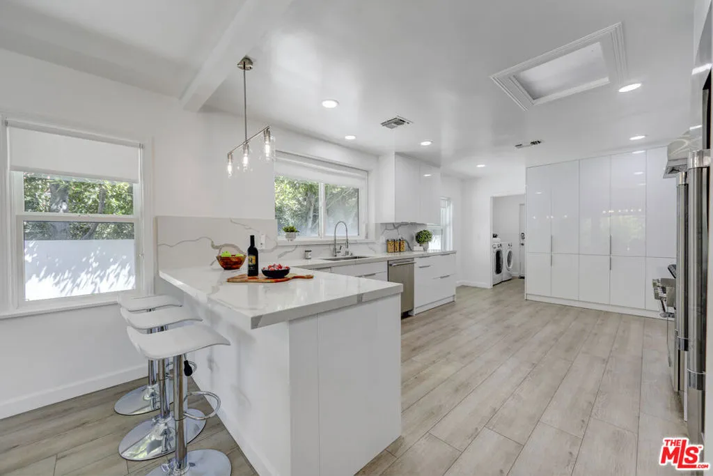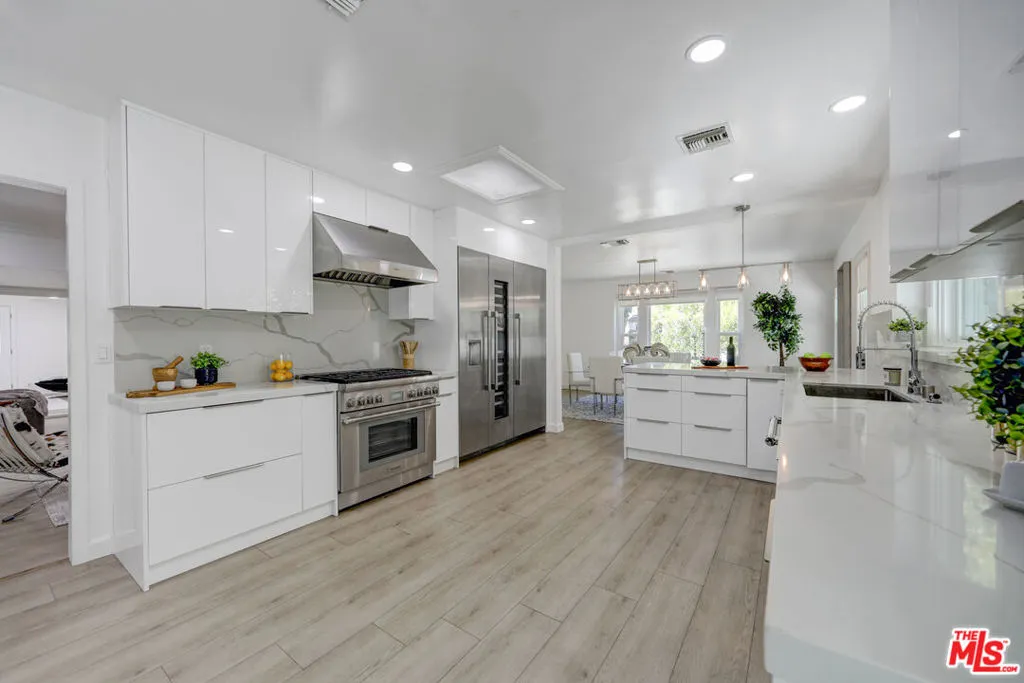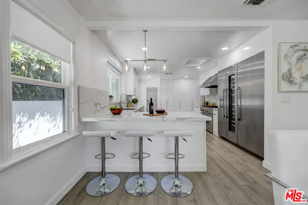 Remodeled in 2025, this exceptional residence in the heart of Beverly Hills showcases impeccable attention to detail, seamlessly blending modern luxury with timeless design.The thoughtfully curated floor plan offers both privacy and versatility, featuring a flexible bonus room ideal as a home office, den, or potential fourth bedroom, along with a separate guest bathroom, perfect for effortless entertaining.The primary suite is a true retreat, complete with a spa-inspired bathroom and an expansive walk-in closet. Throughout the home, brand-new windows invite abundant natural light, enhancing the open and airy ambiance. The chef's kitchen is outfitted with a full suite of premium Thermador appliances, delivering both top-tier performance and refined style.High-end finishes, superior craftsmanship, and a spacious two-car garage complete this turnkey offering, presenting a rare opportunity to own a meticulously upgraded home in one of Beverly Hills' most coveted neighborhoods!