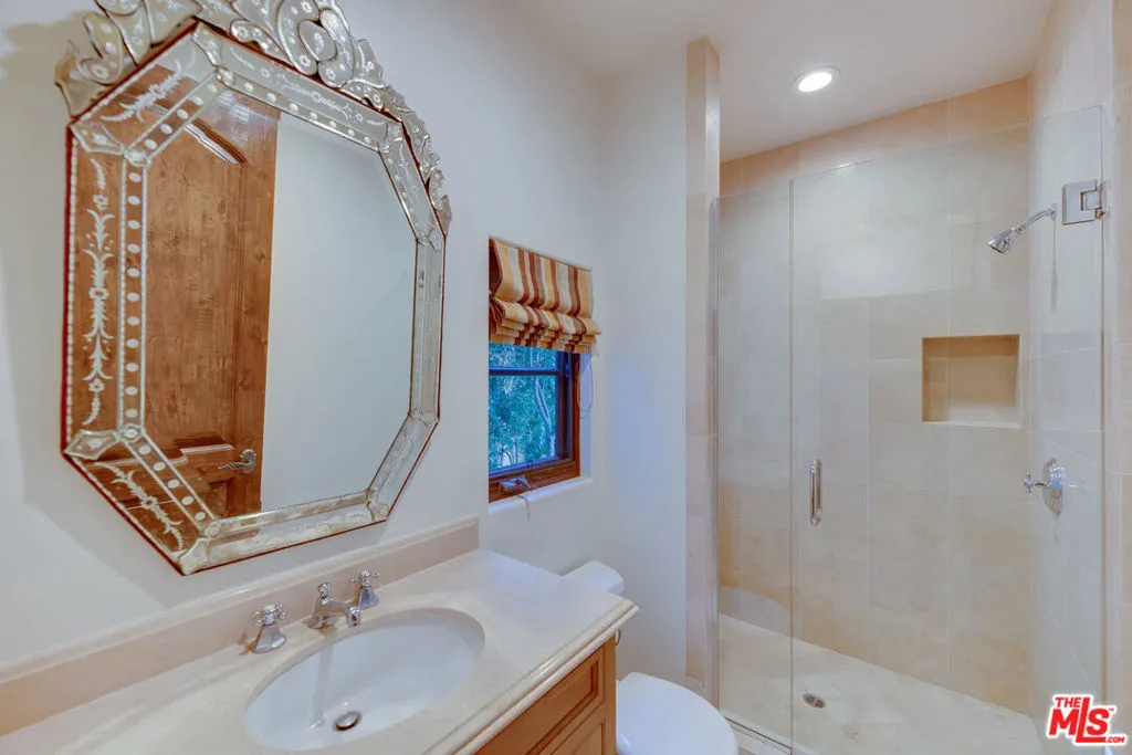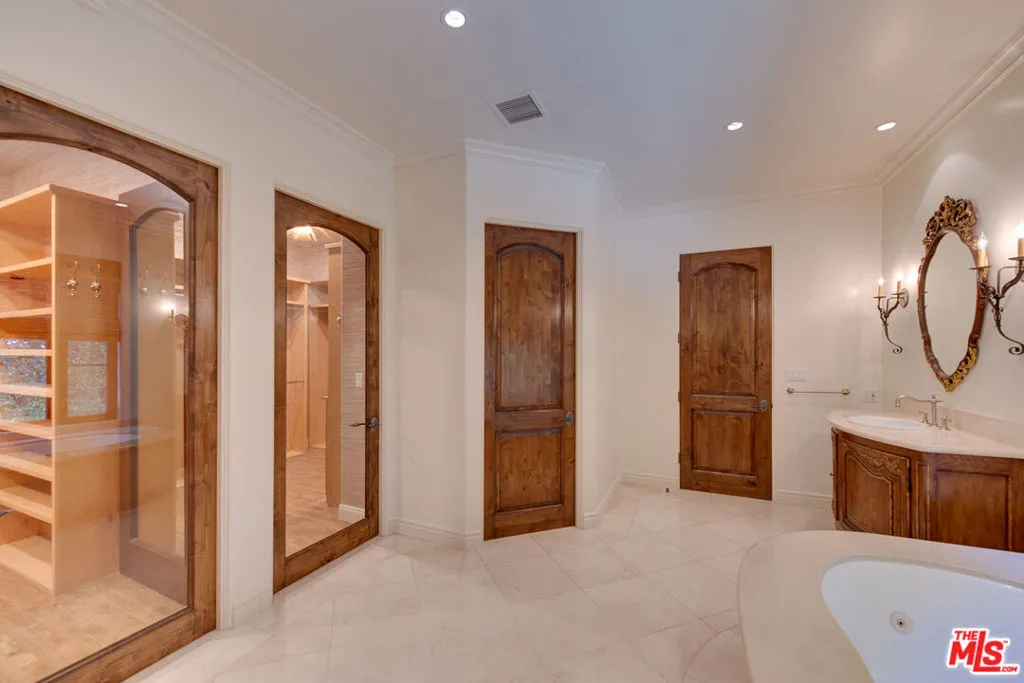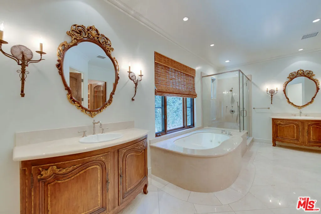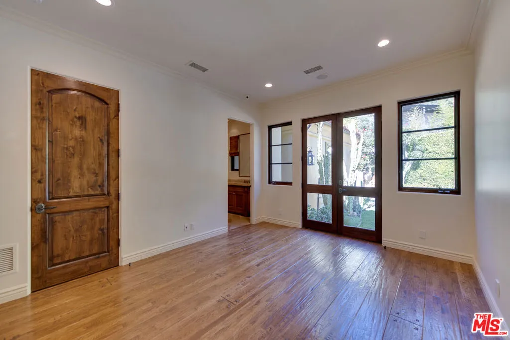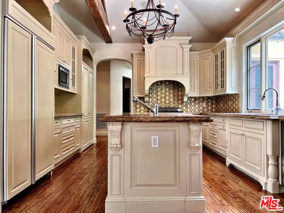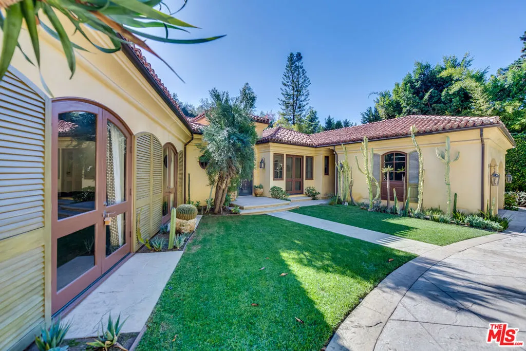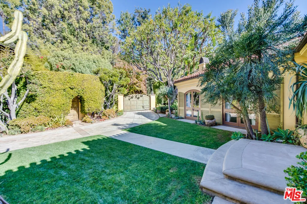 Some addresses are simply in a class of their own. Tucked behind private gates and lush hedgerows within the legendary 24-hour guard-gated enclave of Hidden Valley Estates - one of Beverly Hills' most coveted and discreet celebrity communities - this impeccably designed single-story Mediterranean estate offers the rare combination of absolute privacy, architectural pedigree, and effortless luxury living. Conceived by acclaimed architect Gus Duffy and built by master builder Gordon Gibson - who originally intended to keep the home for himself - every detail reflects an uncompromising standard. From the soaring glass-and-iron entry doors to the vaulted wood beam ceilings, hand-selected wide plank oak floors, and dual stone fireplaces, this is a home that was built to be experienced. The open-concept living and entertaining spaces flow seamlessly through French doors to a perfectly manicured front yard with circular motor court. The chef's kitchen features top-tier stainless appliances, a generous center island, and an eat-in layout ideal for both casual mornings and effortless entertaining. A grand family room with soaring ceilings and its own fireplace anchors the home's social heart. The primary suite is a private world unto itself. Fireplace, spa-inspired bath with dual vanities and separate closets, and serene views over the resort-style pool and spa. Three additional en-suite bedrooms plus a detached guest house provide ideal flexibility for staff, guests, or a dedicated home office. Beyond the walls: a LifeSource whole-home water filtration system, laundry room with dual washers and dryers, 2-car garage with Tesla charger, gated driveway parking for 4-5 additional vehicles, and your own private citrus grove (lemon, lime, orange, and mandarin) growing in the sun-drenched yard. Supremely private yet perfectly positioned, just minutes to both the Beverly Hills flats and the valley, with seamless access to the finest dining, shopping, and schools the Westside has to offer. This is not a rental. This is a lifestyle. SHOWINGS BEGIN MAY 8th.