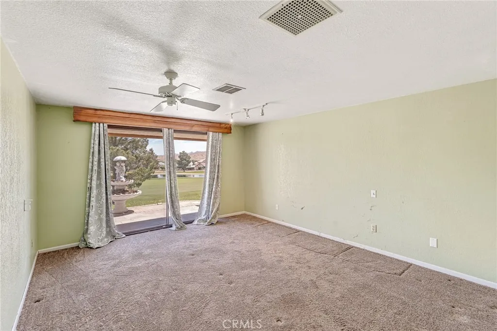 Golf course views + functional layout—this Silver Lakes home checks the boxes. This 3-bedroom, 3-bath home also features a step-down office with built-in shelving, perfect for working from home or creating a flex space. The living room is positioned to take in the golf course views and includes a cozy fireplace, creating a great focal point for the home. The kitchen also overlooks the golf course, giving you a consistent open and connected feel throughout the main living areas. Additional upgrades include a tankless water heater and water softener. Step outside to a private backyard with a jacuzzi under a covered patio—ideal for relaxing or entertaining. There is also HVAC and swamp coolers. Located in the Silver Lakes community, offering access to lakes, golf, parks, and more (buyer to verify). Great opportunity for a primary home, second home, or vacation home!