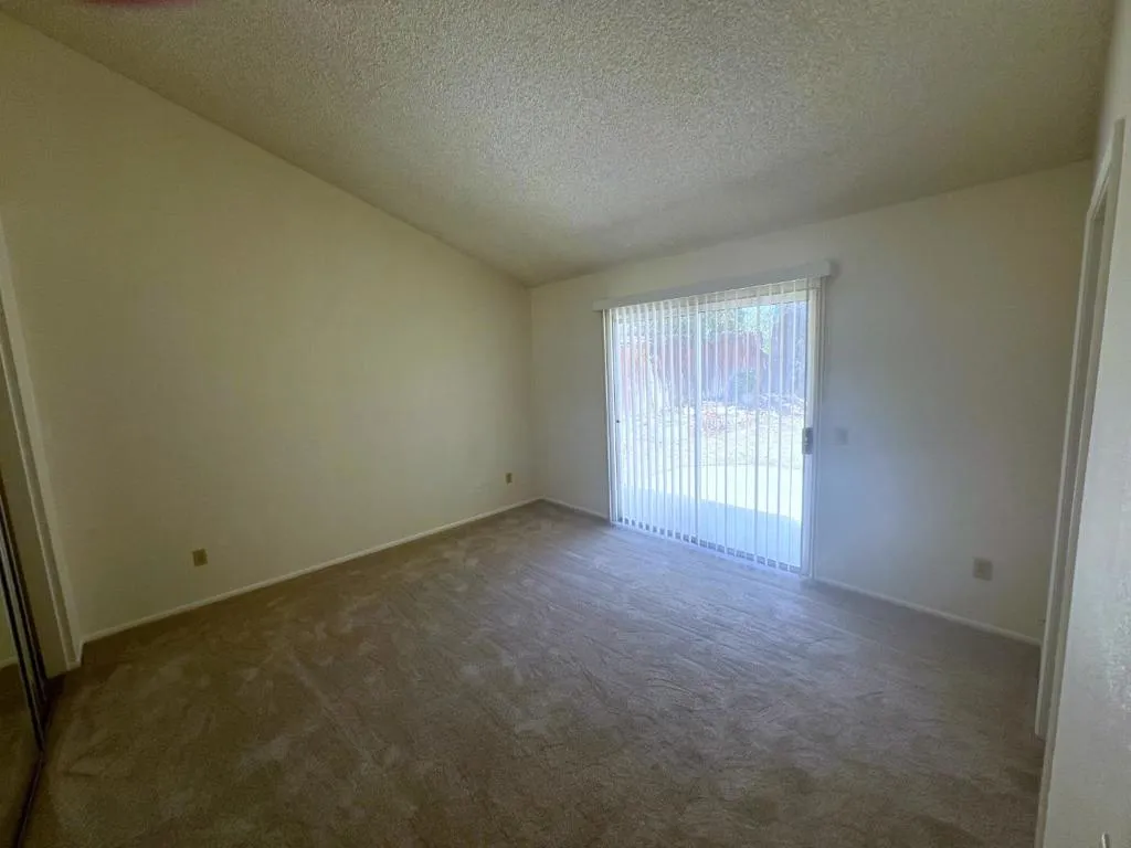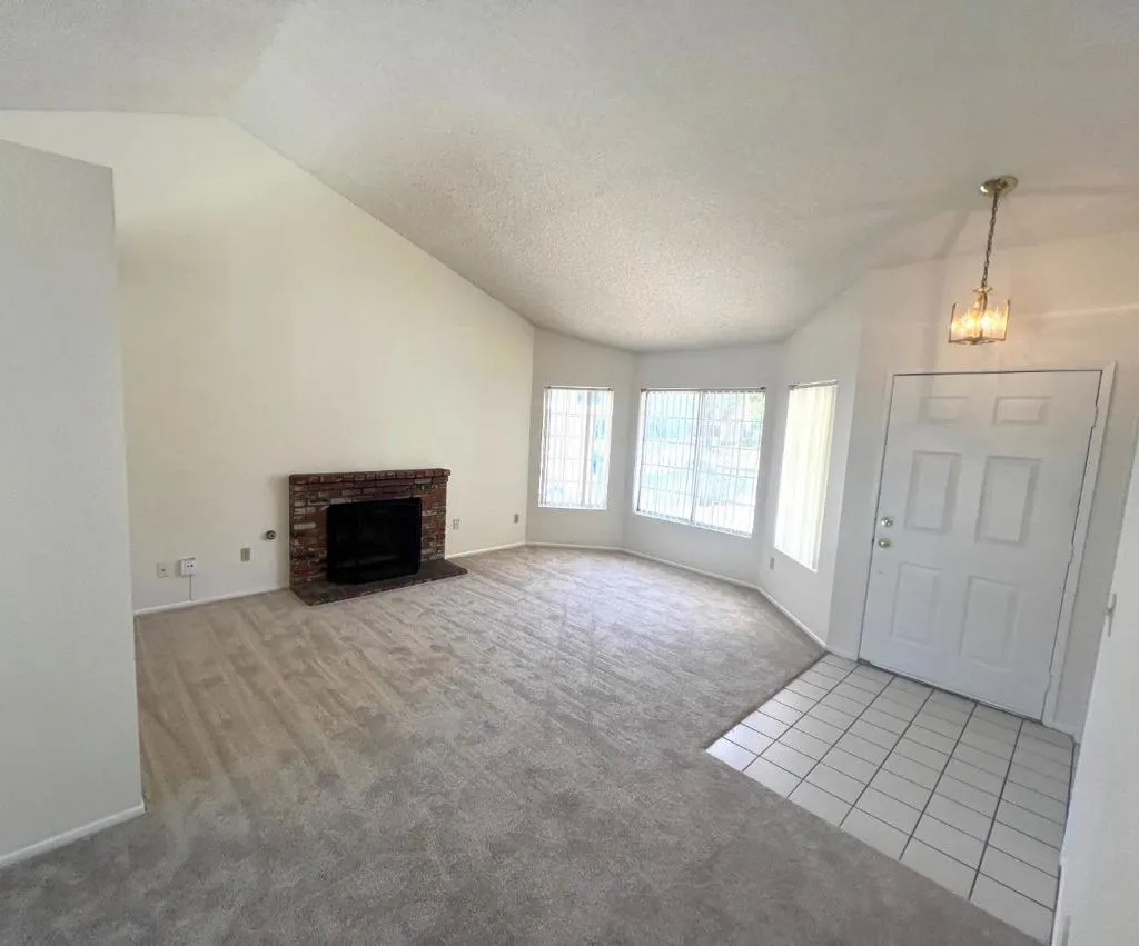 Nice Home in Quiet Neighborhood - New Paint Inside and Outside - New Carpeting throughout the Home - All windows have window coverings throuout the Home W Vaulted Ceiling in Living Room and Kithchen - Fireplace in Living Room - Kitchen has bay window looking out into backyard, Gas Cooktop and Oven, Microwave, Dishwasher, , Lots of Cabinets - First Bedroom has Double Doors into Living room, Could Work Well as Office - Nice Sized Second Bedroom with Big Closet - Hall Bathroom has Shower over Tub - Master Bedroom has large Double Closet , Sliding Glass Door to Backyard, Private Bathroom with Shoiwer Stall - Spacious 2 Car Garage with extra room for Work Bench/Shop - Large Feced in Backyard