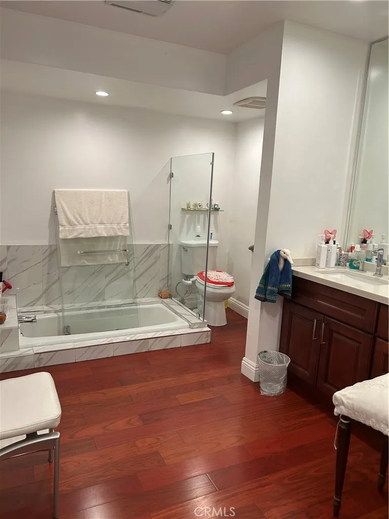 Nestled in one of the most sought after neighborhoods of Encino this spectacular condo will capture even the most sophisticated Tenant at the first sight. This turnkey unit . Newly remodeled . boasts with its recent upgrades including but not limited to an open floor plan, kitchen with custom cabinets. ceaser stone counter tops, hardwood floors throughout, fireplace, recess lighting crown molding you name it. Primary room with walking closet, gorgeous primary bathroom, large patio great for entertainment with the pool view. this unit is available for 6 months rent, and short term and furniture is included. washer and dryer is included, very custom unit look like a house very roomy and spacious. building does have a pool and spa,