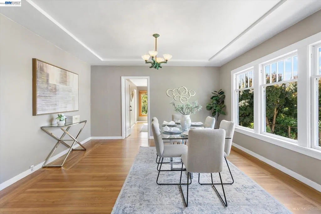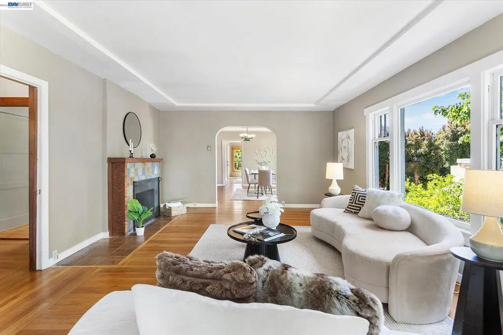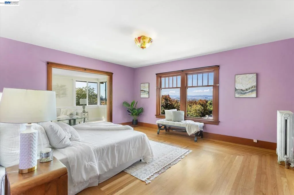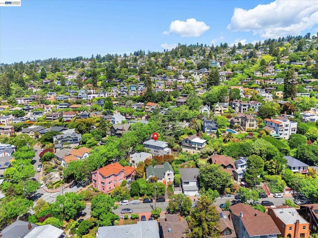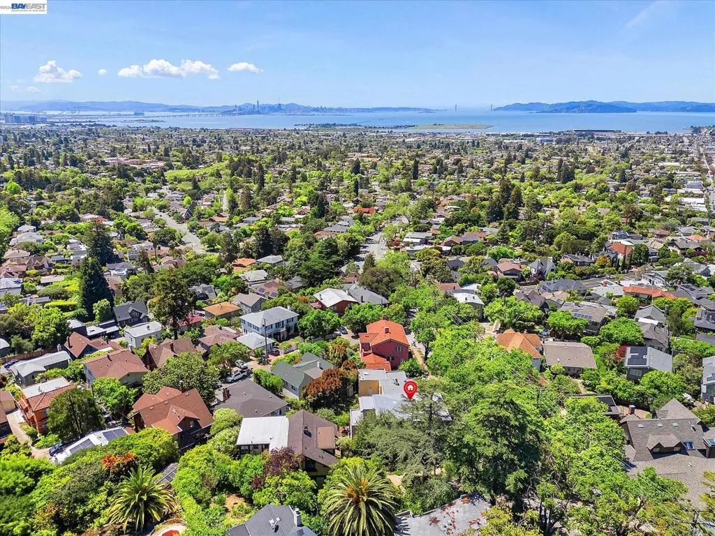 Prairie style,1916 tri-level home in desirable Berkeley Heights, 5+bed/3 bath with expansive top floor views that sweep from downtown Oakland to San Francisco, from the iconic GG Bridge to the Marin headlands. Multi-generational living is possible with a full 1 bed/bath on the main level, while the sizable ground level bonus space has Jr. ADU or home office potential with separate entrance and full bath. Gorgeous hardwood floors, eat in kitchen, large living room with fireplace and oversized windows with views of the trees all housed under a brand new roof. Separate side doors lead to a vibrant backyard garden full of color and green thumb possibilities. This home has a tremendous amount of space and light with many options for configuration. Conveniently located near award-winning schools, Solano Ave restaurants, Tilden Park and UC Berkeley. BESO score 3