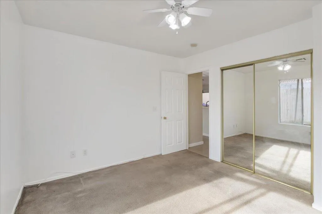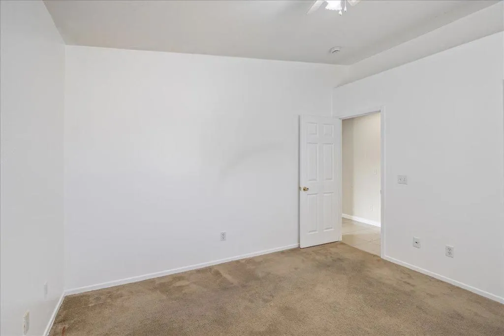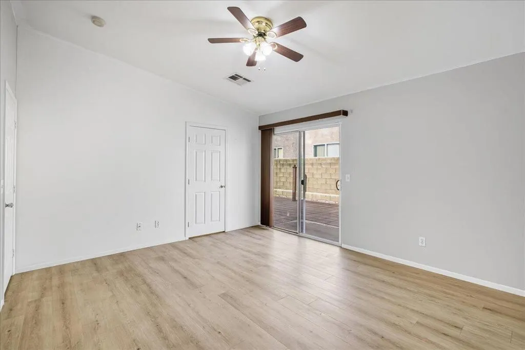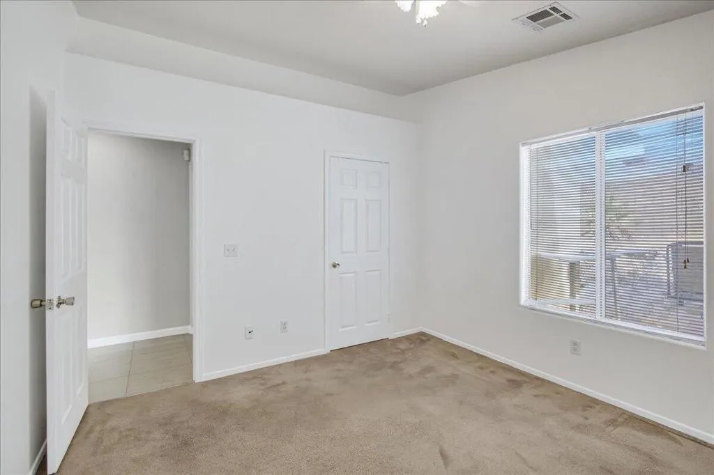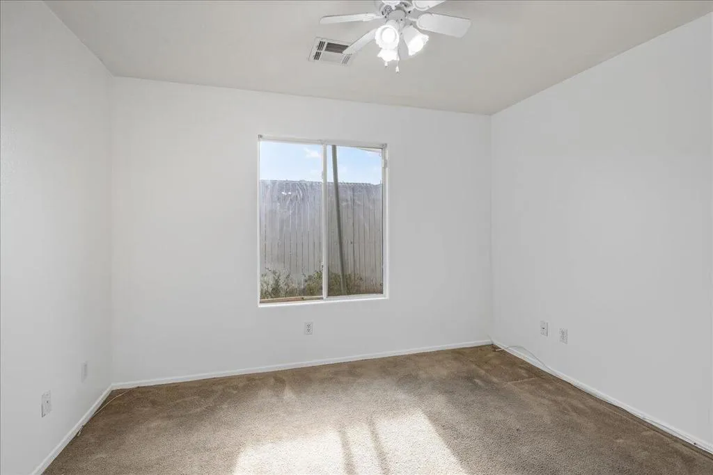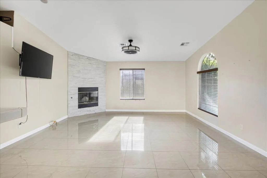 Welcome to this spacious 4-bedroom, 2-bathroom home offering comfort, functionality, and an ideal desert lifestyle. Conveniently located near schools and parks, with easy freeway access, you're just a short drive from downtown Palm Springs and Joshua Tree National Park.Inside, enjoy an open and airy floor plan with high ceilings, abundant natural light, and expansive tile flooring throughout the main living areas. The living room features a stylish tiled fireplace and flows seamlessly into the dining area and kitchen, complete with ample counter space and a breakfast bar--perfect for everyday living and entertaining.The home offers generously sized bedrooms, including a primary suite with updated flooring, a walk-in closet, and direct access to the backyard. Additional highlights include ceiling fans, mirrored closet doors, and an indoor laundry area.Step outside to a spacious backyard featuring a large patio, decorative fountain, and plenty of room to create your ideal outdoor retreat.