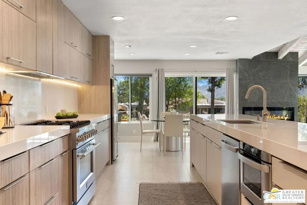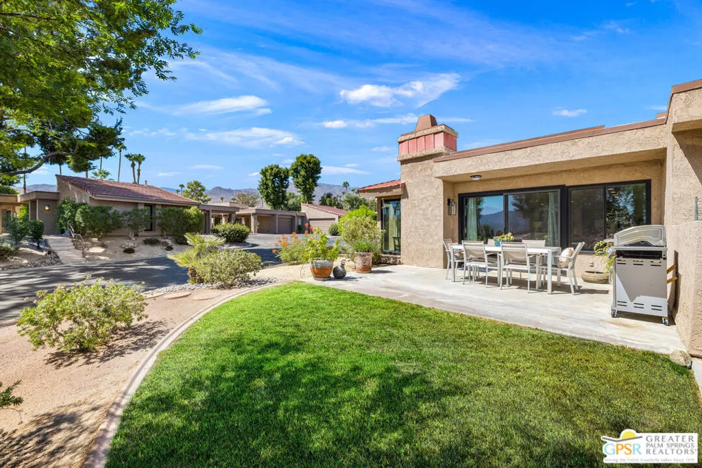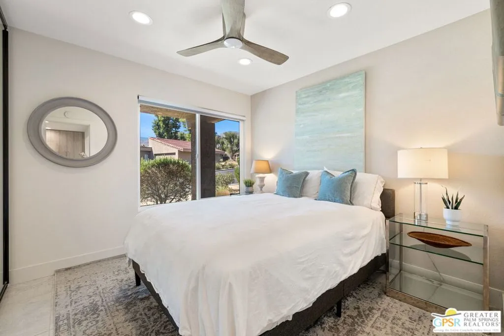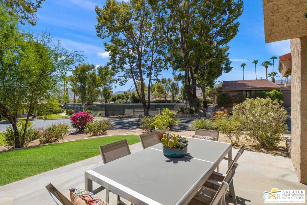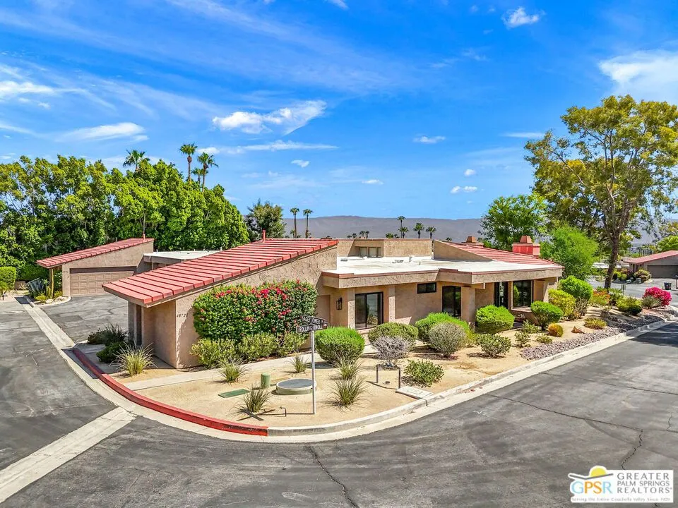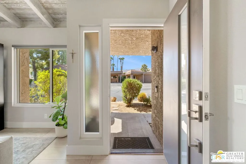 The ONE to see at gated Indian Hills in prime South Palm Desert. Elevated, furnished, and dialed in with designer finishes that feel straight out of Elle Decor. Big 180 degree mountain views meet dramatic beamed and vaulted ceilings, creating a light filled living experience that feels both refined and relaxed. A modernist fireplace anchors the main living area while living and dining spaces flow around a stunning kitchen with quartz counters, sleek cabinetry, curated lighting, and a 150 bottle wine refrigerator ready for entertaining. A den or study adds flexibility. The primary suite features an L shaped walk in closet with custom built ins and a beautifully updated bath with walk in shower and dual vanities. Guest Bedroom Two and bath are equally polished. Patio living takes in tennis courts and lush green space. Laundry tucked into the hall. Two car garage. Indian Hills delivers resort style pools, spas, tennis, and beautifully maintained grounds, all moments from El Paseo.