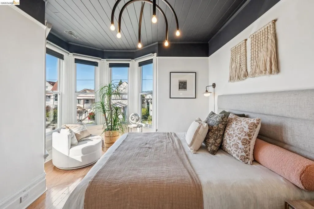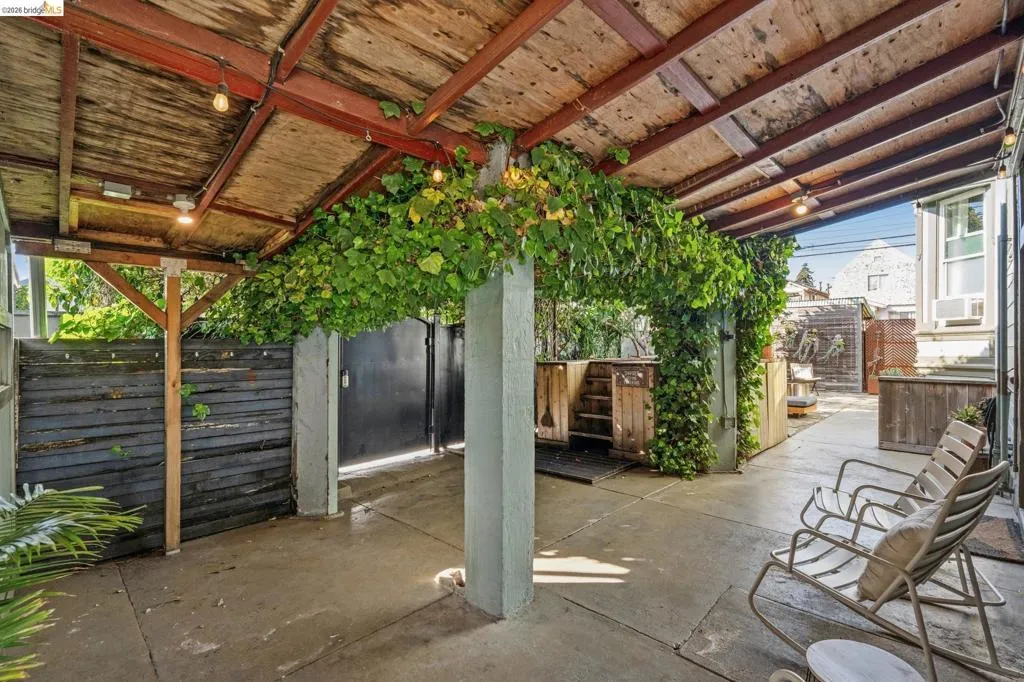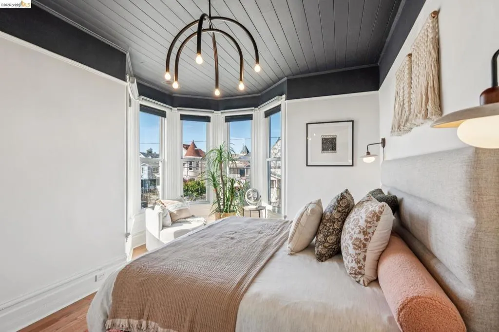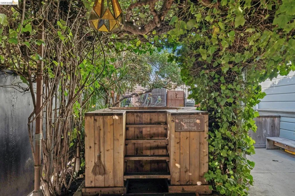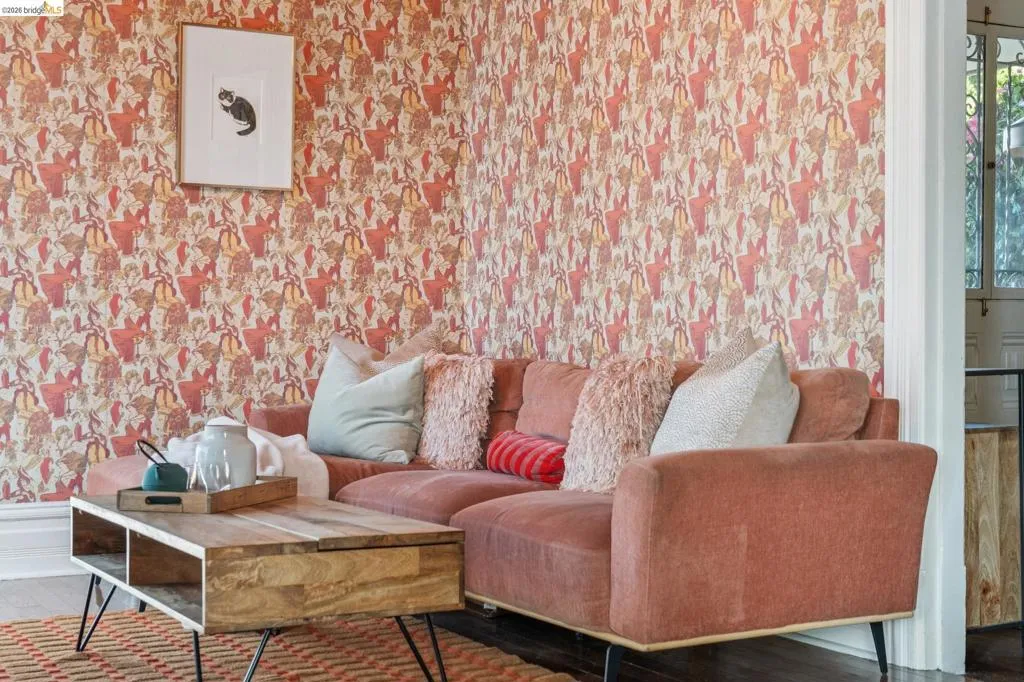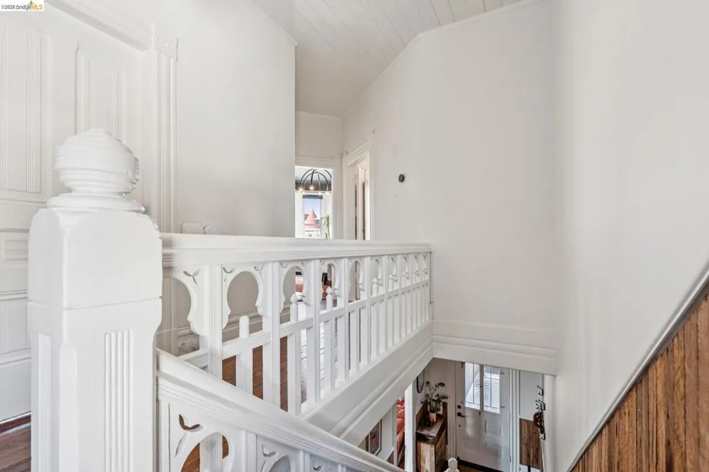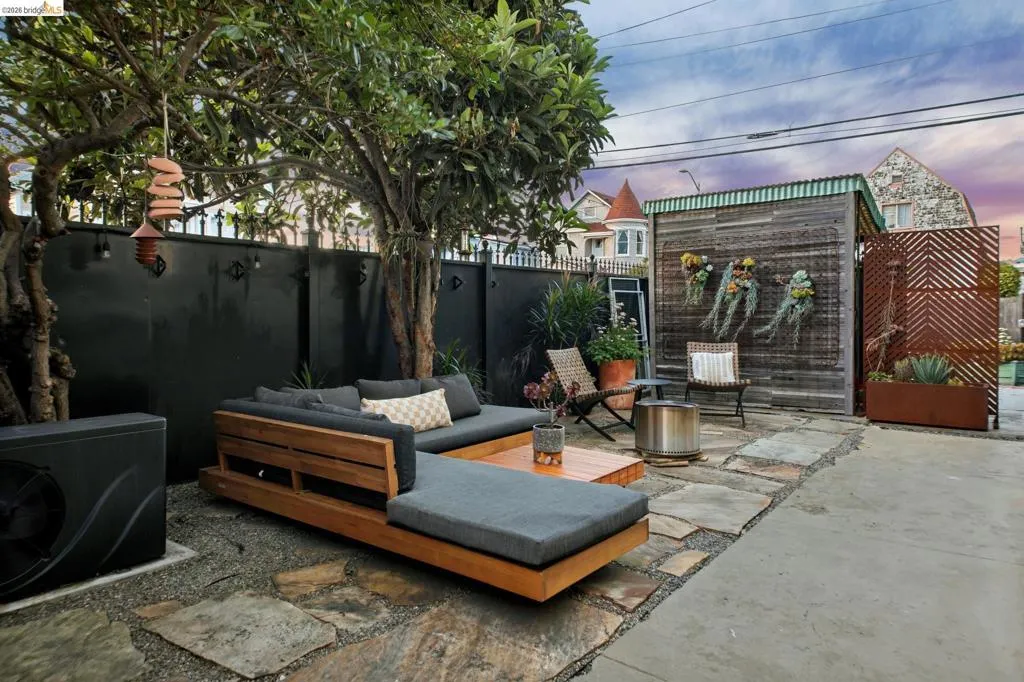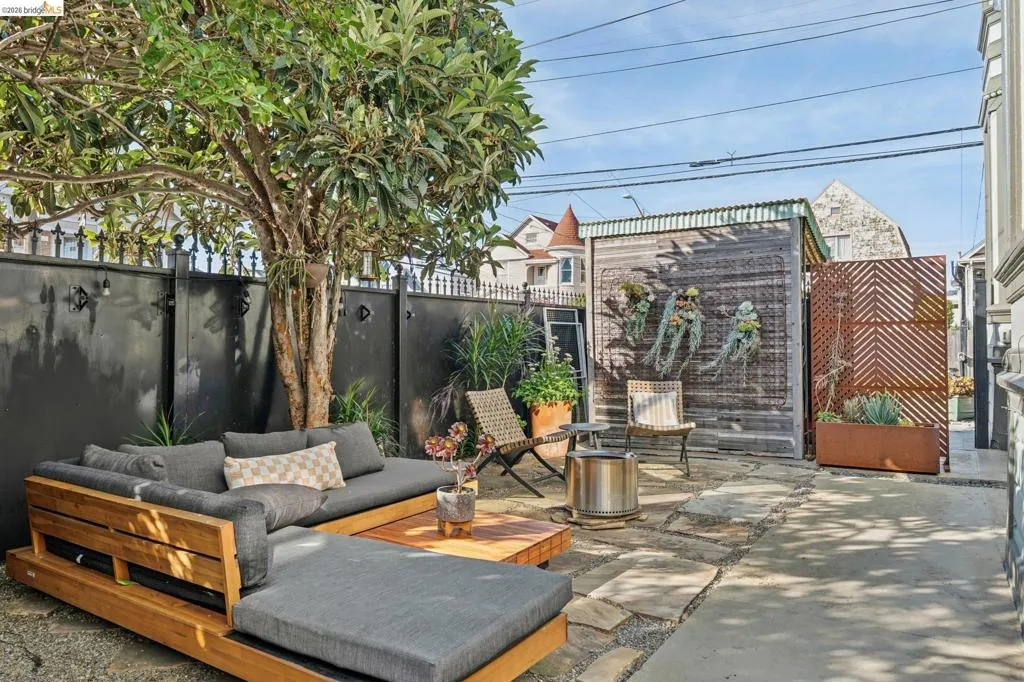 What happens when a gifted artist's wonderland gets a modern soul? This 6bd/2.5ba Victorian stunner at 2503 E 16th Street, Oakland, is the 3,314 sq ft* jewelry box you've heard whispers about — eclectic, warm, and dripping with character — but now she's been loved even more. The entry greets you with greenery and florals. Inside, natural light pours through the parlor, illuminating custom wallpaper, bronze pocket doors, and original wood floors. Antique embossed tin ceilings run throughout, creating a rich opulence that stops you in your tracks. The dining room brings brick, abundant windows, and room for all your vibrant dinner parties. The kitchen is fresh, with new (2026) paint and refrigerator. Upstairs, a Murphy bed and smart storage make the back bedroom work harder, and the updated vanity in the bathroom and resurfaced clawfoot tub feel polished and intentional. Out back, the converted garage is ready for your creative vision — redwood boards, custom window treatments, new (2026) torch down roof overhead. The bonus room now has a proper kitchenette (butcher block, sink, cabinets, fridge), making it a legitimate home office, guest suite, or income opportunity*. The side yard is flagstone and landscaped. There's a cedar fence framing the front yard, a Tesla charger in place, and a hot tub running on an efficient heat pump system. This beguiling Victorian has always had it all. Now it has even more. 2503 E 16th Street is in a convenient location close to downtown Oakland, San Francisco, and transportation nodes. Sewer and sidewalk compliant.