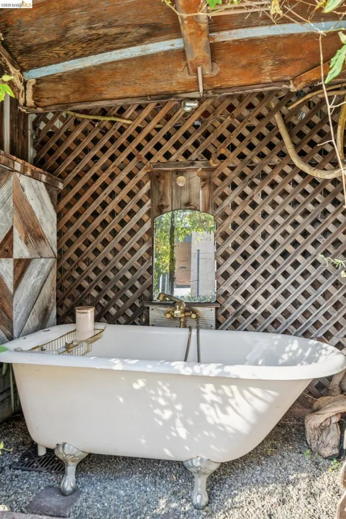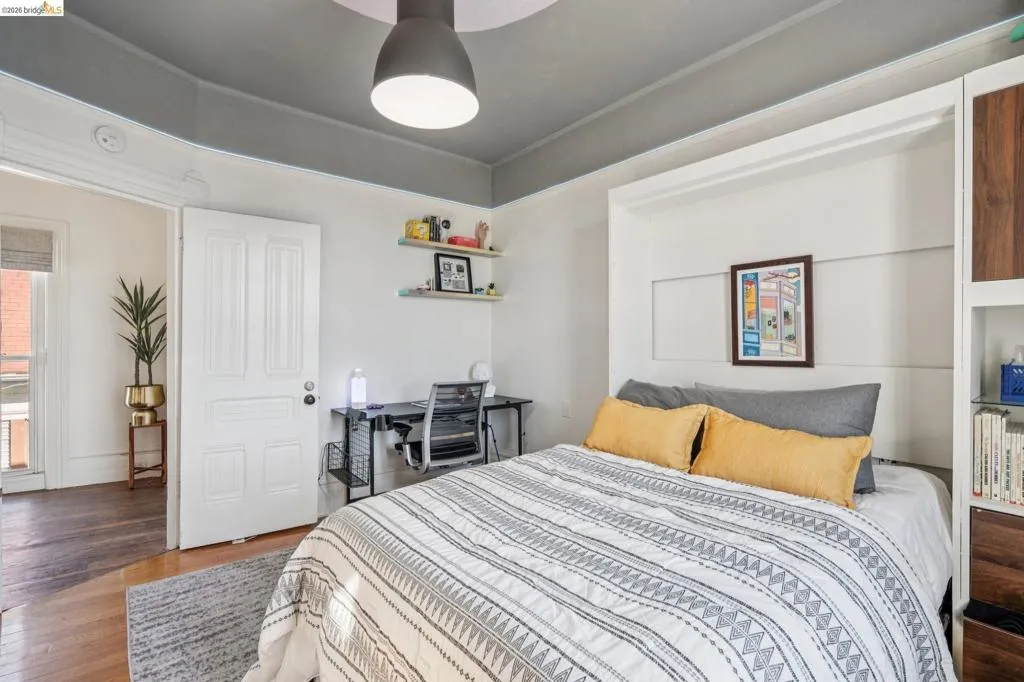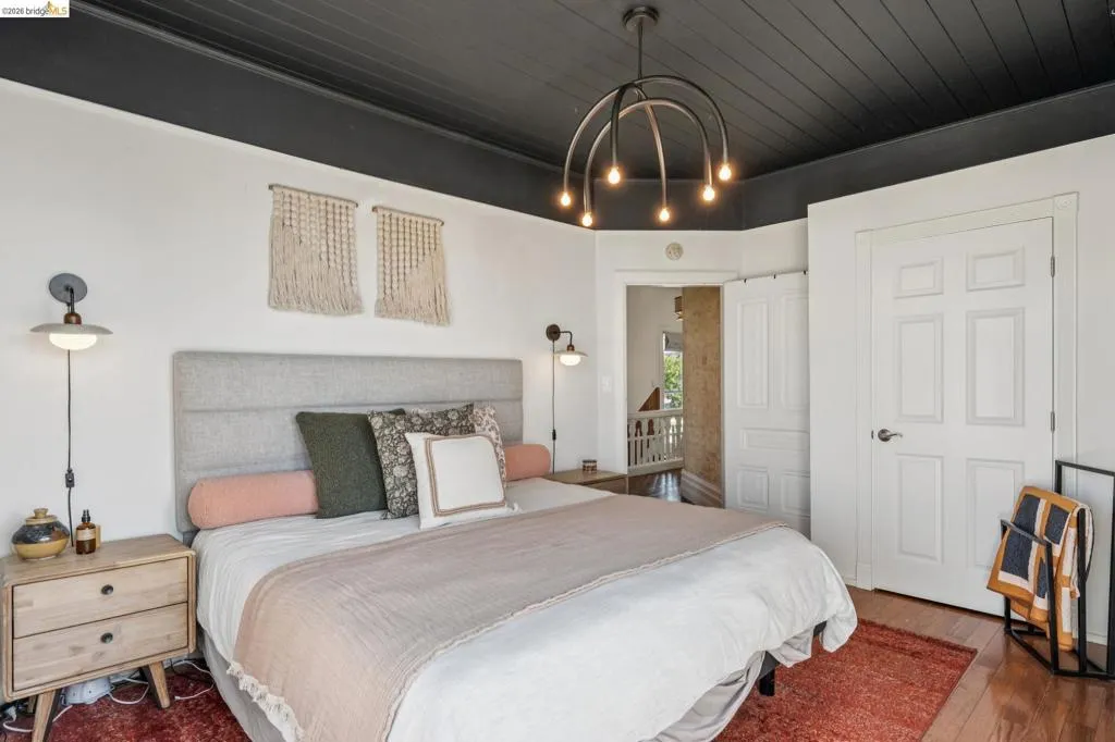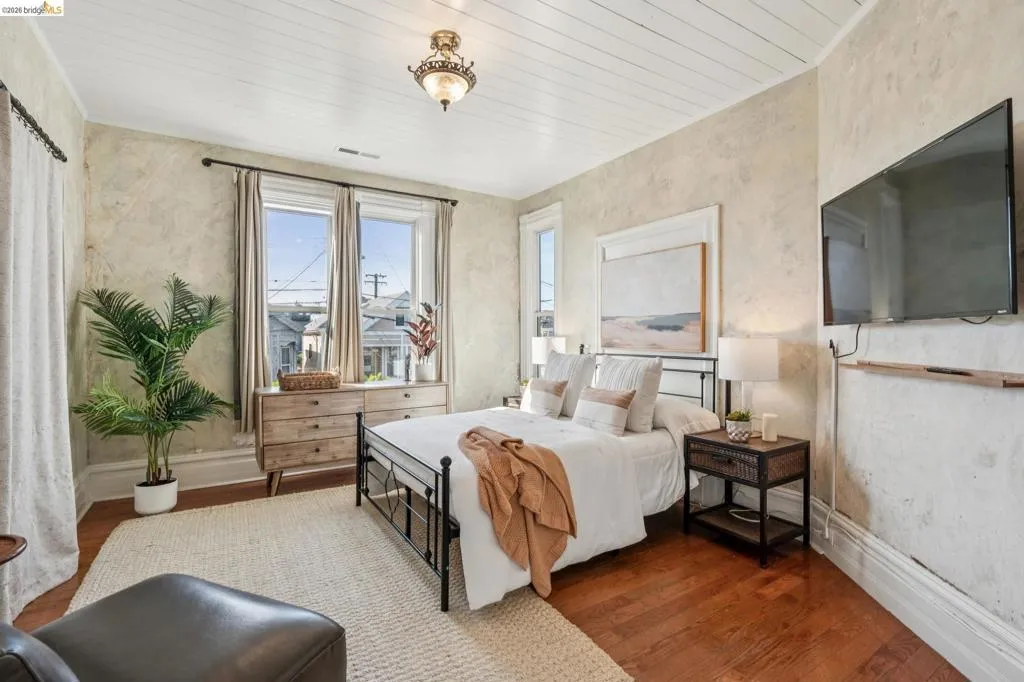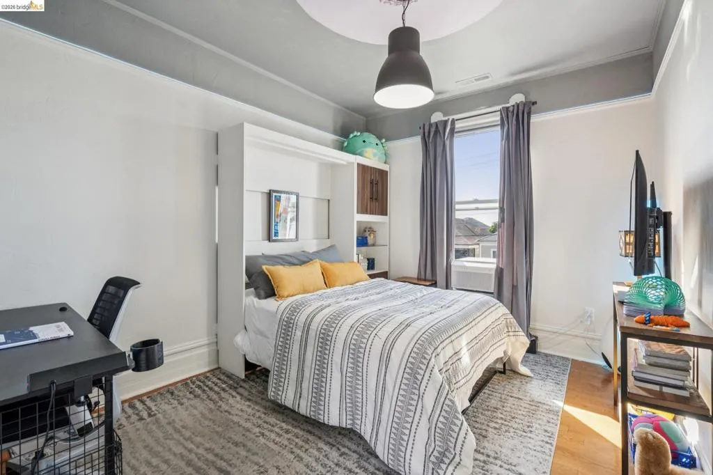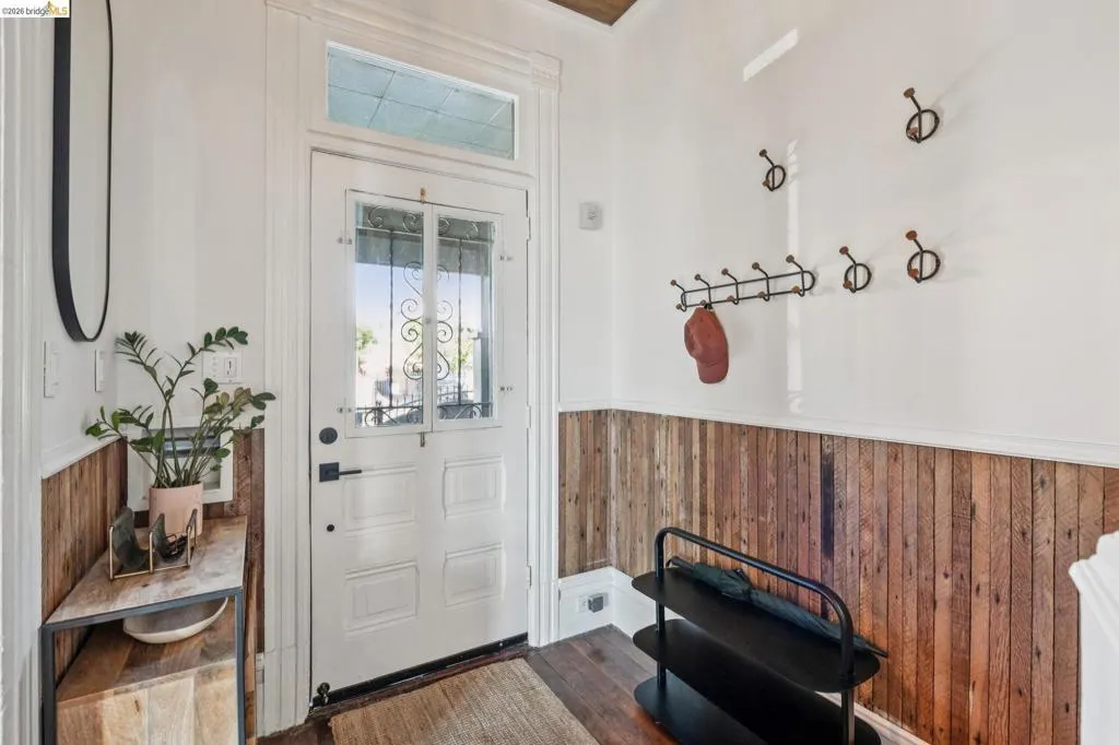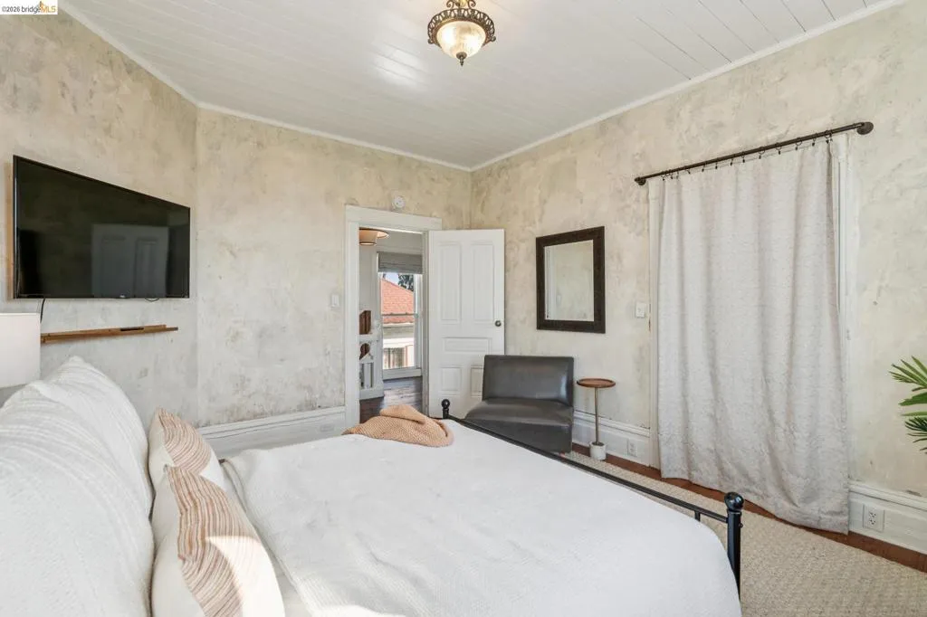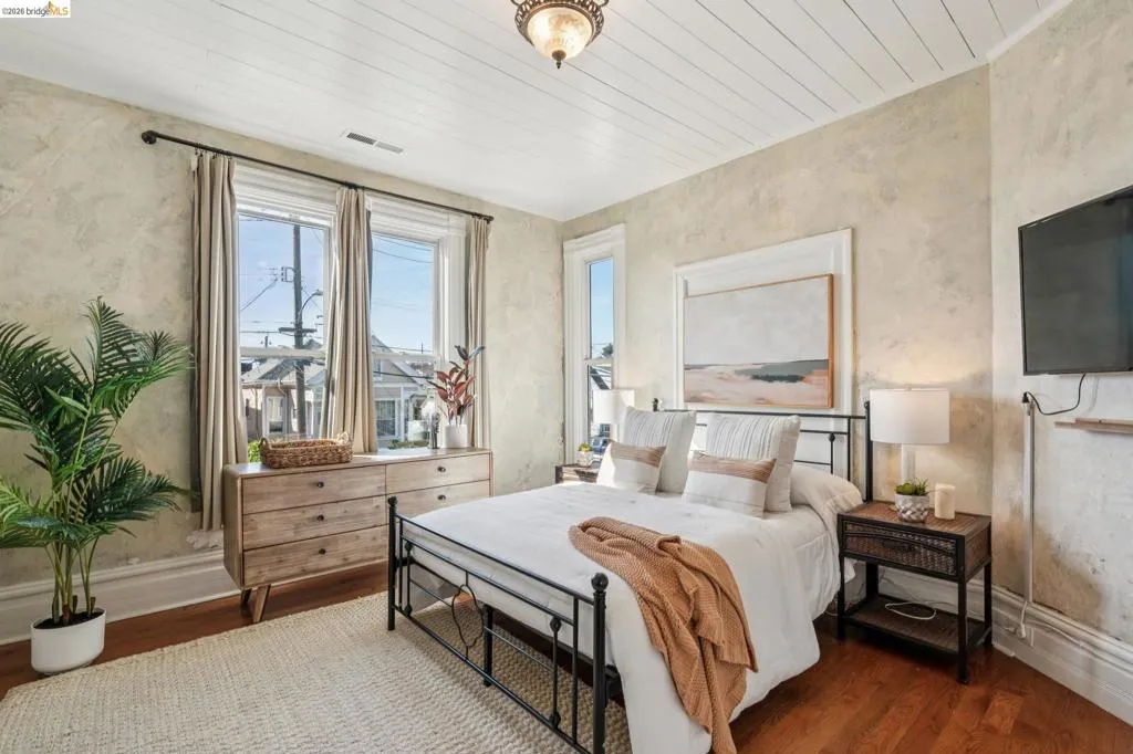 What happens when a gifted artist's wonderland gets a modern soul? This 6bd/2.5ba Victorian stunner at 2503 E 16th Street, Oakland, is the 3,314 sq ft* jewelry box you've heard whispers about — eclectic, warm, and dripping with character — but now she's been loved even more. The entry greets you with greenery and florals. Inside, natural light pours through the parlor, illuminating custom wallpaper, bronze pocket doors, and original wood floors. Antique embossed tin ceilings run throughout, creating a rich opulence that stops you in your tracks. The dining room brings brick, abundant windows, and room for all your vibrant dinner parties. The kitchen is fresh, with new (2026) paint and refrigerator. Upstairs, a Murphy bed and smart storage make the back bedroom work harder, and the updated vanity in the bathroom and resurfaced clawfoot tub feel polished and intentional. Out back, the converted garage is ready for your creative vision — redwood boards, custom window treatments, new (2026) torch down roof overhead. The bonus room now has a proper kitchenette (butcher block, sink, cabinets, fridge), making it a legitimate home office, guest suite, or income opportunity*. The side yard is flagstone and landscaped. There's a cedar fence framing the front yard, a Tesla charger in place, and a hot tub running on an efficient heat pump system. This beguiling Victorian has always had it all. Now it has even more. 2503 E 16th Street is in a convenient location close to downtown Oakland, San Francisco, and transportation nodes. Sewer and sidewalk compliant.
