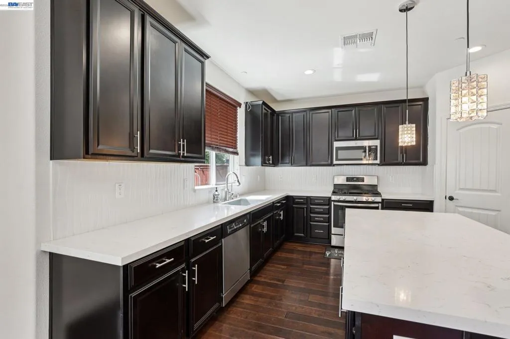 Welcome to this spectacular North-facing home in Mountain House, offering 5 bedrooms and 4 full bathrooms designed for both comfort and style. Step into a bright and open floor plan filled with abundant natural light and hardwood floors on the first level. The spacious layout includes a downstairs bedroom and full bathroom, perfect for guests, in-laws, or extended family. The expansive kitchen and family great room create the heart of the home—an inviting space ideal for gathering, relaxing, and entertaining. The gourmet kitchen shines with quartz counters, generous cabinet and counter space, a pantry, pendant lighting and more-making everyday living and hosting effortless. Upstairs, the primary suite is both spacious and elegant, paired with a luxurious primary bathroom designed for comfort and relaxation. A versatile loft area provides additional living space, perfect for a second family room, home office, or media area. The backyard is built for entertaining, featuring stamped concrete, low-maintenance landscaping, and space for gardening or creating your own outdoor retreat. Conveniently located near top-rated schools with excellent commuter access, this exceptional opportunity truly has it all. Welcome Home.