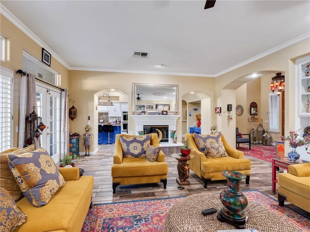 Discover the epitome of luxurious living in the highly coveted gated community of Stonebrook Estates. This magnificent smart home offers a wealth of amenities and boasts 3 spacious bedrooms, a versatile library/office with exquisite built-in bookcases, and a den/TV room that could effortlessly serve as a 4th bedroom. The vast game room, complete with a pool table, invites endless entertainment possibilities. A culinary enthusiast's dream, the kitchen is equipped with modern conveniences, including double ovens a microwave, a 5-burner cooktop, a central island with a sink, ample counter space, and a dedicated desk for your cherished recipes or cookbook collection. The living room exudes warmth with its wood-burning fireplace and elegant built-in bookshelves, offering serene views of the backyard oasis. Step outside to over 500 square feet of covered patio space, overlooking a sizable pool with a tranquil waterfall, a spa for relaxation, and a welcoming fire pit for evening gatherings. The formal dining room showcases a grand gas fireplace complemented by an exquisite mirror and a beautiful china hutch, (included as is table) providing a perfect setting for memorable family occasions. Adjacent to the dining room, the butler's pantry features illuminated shelves, perfect for displaying your wine collection. The master bedroom, complete with a gas fireplace, offers ample space for a cozy sitting area. The grand master bath is a true retreat, featuring a glass brick shower, double vanities, and a generously sized oval bathtub. The walk-around closet is reminiscent of a small bedroom, adorned with custom built-ins. One of the guest rooms enjoys its own private bath, offering comfort and convenience to your guests. A spacious indoor laundry room with ample storage adds to the home's practicality. The 3-car garage, spanning 835 square feet, is a storage enthusiast's dream. A drive-through gate provides easy access to the concreted side yard, complete with a dog run. Situated on a generous corner lot, this home offers a plethora of extras that must be seen to be fully appreciated. Notably, the solar panels have eliminated the need for an electric bill, making this home as eco-friendly as it is opulent. Come and experience this unparalleled residence – your estate home awaits!