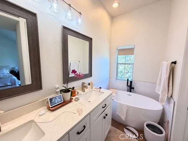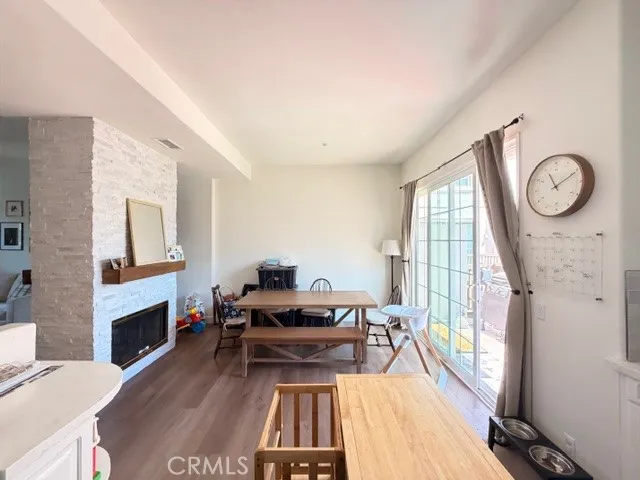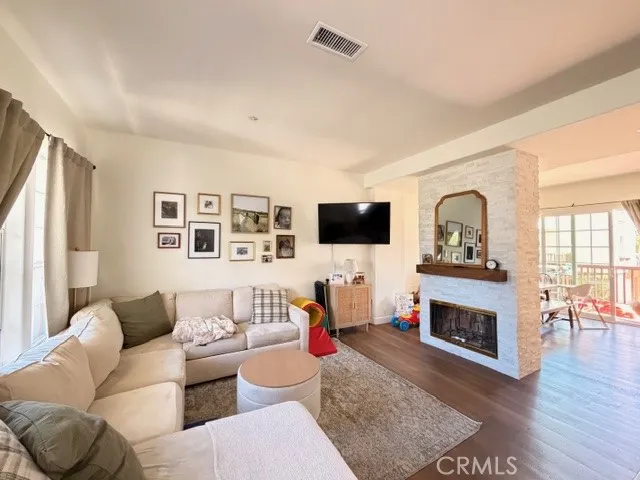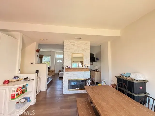 Pristine and beautifully maintained, this three-bedroom, two-and-a-half-bath condo is located in the desirable Venturanza Del Verde community in Tustin. Thoughtfully designed, all bedrooms are situated upstairs, while a spacious bonus room on the lower level offers flexibility for a home office, playroom, or additional living space. The home features tasteful upgrades throughout, including wood flooring, base molding, and a charming stone fireplace (decorative only). The light-filled kitchen boasts elegant marble countertops, newer appliances, and includes a refrigerator. The primary suite offers high ceilings, dual closets, and an ensuite bathroom with dual sinks, a soaking tub, and a separate, spacious shower. Additional highlights include a two-car garage with washer and dryer included, and a well-maintained community setting. Community pool, spa Conveniently located within walking distance to Tustin Sports Park, the Katie Wheeler Library, grocery and drug stores, and the expansive Tustin-Irvine Marketplace shopping center. Please note: the fireplace is inoperable and not for use. This is a must-see home!