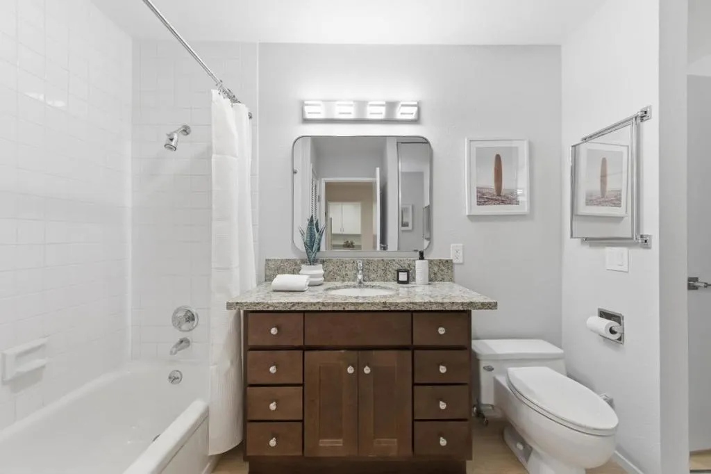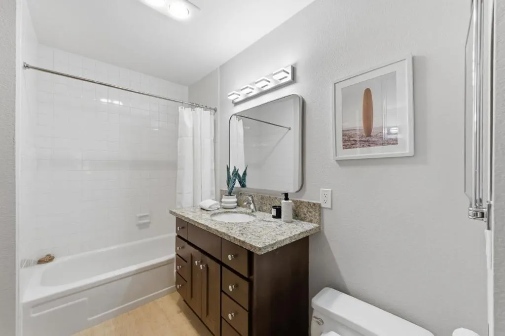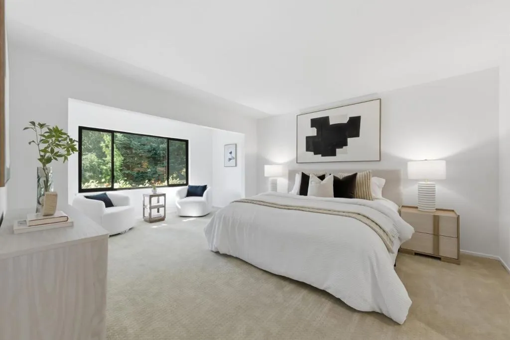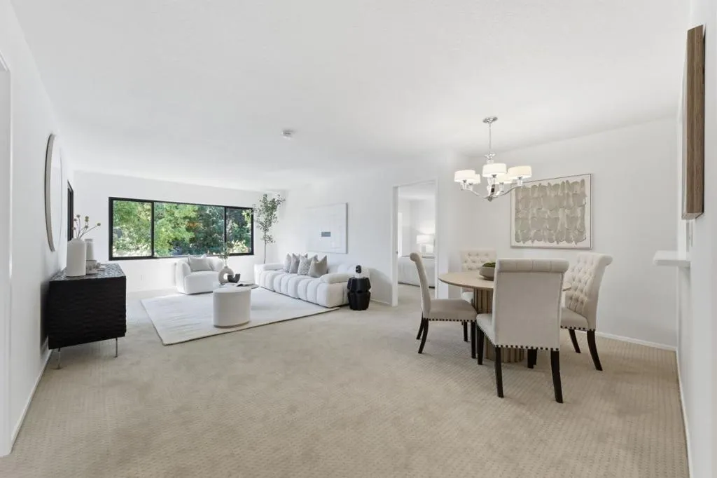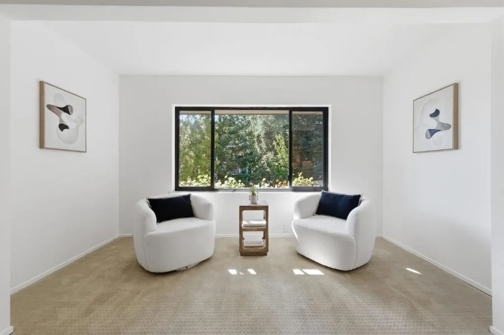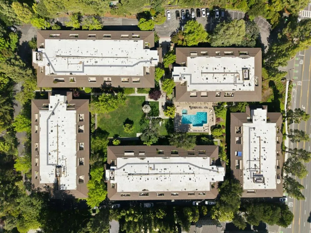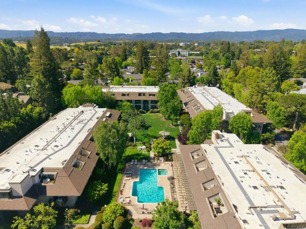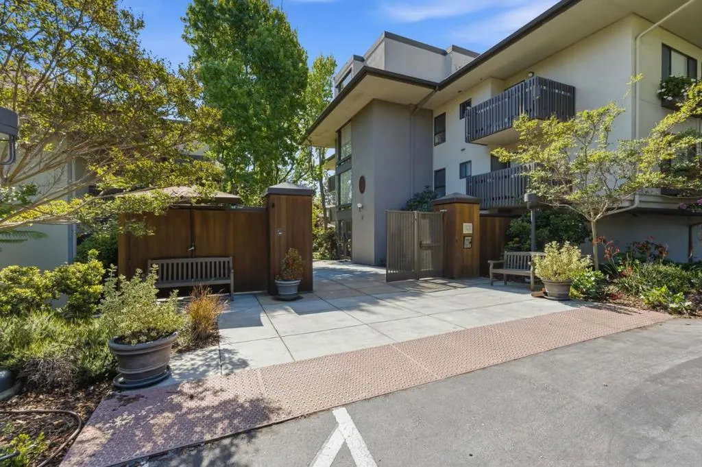 This spacious and highly soughtafter 2bedroom residence in Menlo Commons, a 55+ community, is an ideal home for those looking to downsize or relocate closer to loved ones while staying in one of the most desirable areas of the Bay Area. The unit features two ensuite bedrooms, offering comfort and privacy for residents and guests. The primary suite includes a generous sitting or workspace area, a large walkin closet, and an upgraded bathroom with dual sinks. The openconcept living and dining area provides an inviting space for entertaining. New paint throughout and additional upgrades add a touch of elegance. The kitchen offers upgraded cabinetry, countertop, and enhanced ligthing. A private balcony provides a peaceful outdoor space perfect for enjoying fresh air or tending to plants. An inunit washer/dryer add everyday convenience. Menlo Commons is a fully gated community offering groundlevel gated deeded parking, a yearround heated pool and spa, a newly renovated fitness room, and a community room for social activities. The location is exceptionalclose to Stanford Shopping Center, University, downtown Menlo Park and Palo Alto, and within walking distance to Sharon Heights Shopping Center. A city shuttle provides trips from Menlo Commons to nearby destinations a few times a week.