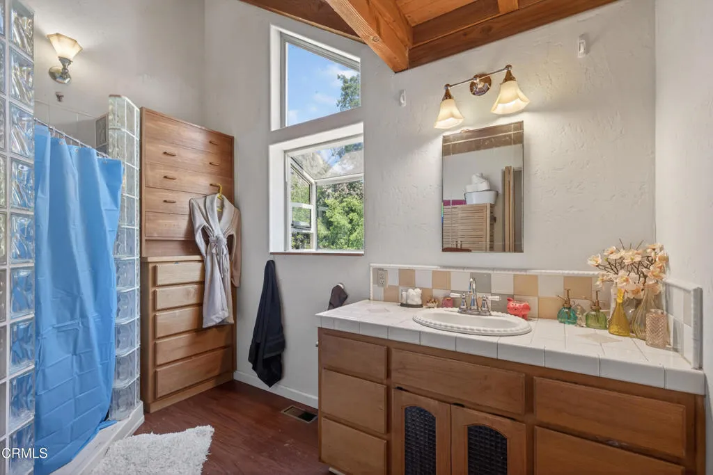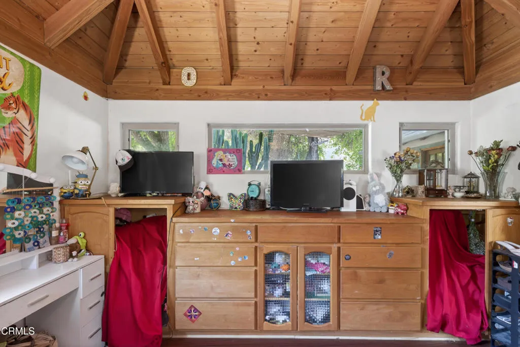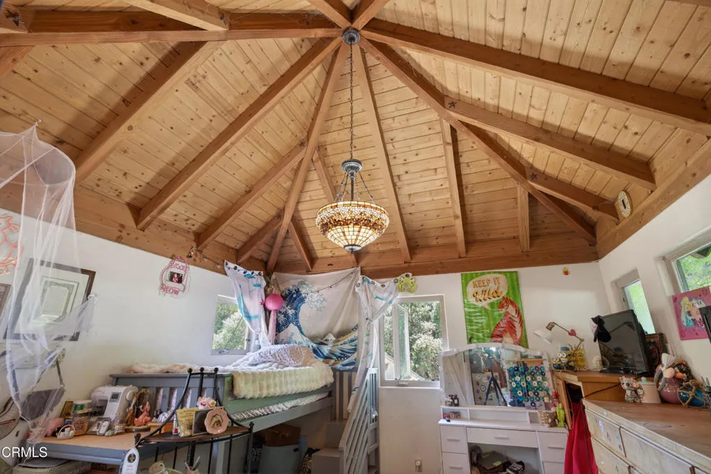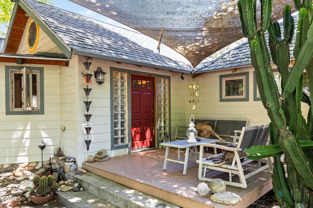 Step into your own private sanctuary--an enchanting, secluded rural ranch where the gentle melody of birdsong greets each morning and majestic mountains beckon herds of dear and owls, hawks, and falcons just beyond your doorstep. Encompassing over 77 acres of pristine landscape, that's surrounded by 5000 unspoiled acres this extraordinary property offers boundless opportunities for exploration and tranquility. Traverse your private trails by ATV or on foot, winding past two serene creeks and ascending to breathtaking mountaintop vistas. Wander through your flourishing orchard and savor a bounty of organic fruit, including lemons, tangelos, oranges, pomegranates, avocados, pears, walnuts, and more!The charming one-bedroom, one-bathroom cabin was thoughtfully rebuilt in 2005, preserving its character while enhancing comfort. Originally designed as a two-bedroom home, it now features an expanded deck that invites you to relax and take in the surrounding beauty. Inside, timeless details abound--from the original wood-burning fireplace dating back to circa 1915 to the elegant newer vaulted wood ceilings that create a sense of openness and light. The home is equipped with a water filtration system and reverse osmosis drinking water for modern convenience. Distinctive touches, including a striking mounted bison head and a beautiful stained-glass window, lend warmth and personality, while the bedroom offers custom-built wooden drawers for added charm and functionality.This one-of-a-kind ranch is further complemented by an expansive 3,500-square-foot barn or hangar, complete with four large roll-up doors--perfect for housing a plane, RV, your boats, or up to eight cars--and even includes one car lift but you could add more for a serious car collector. Enjoy leisurely days by your sparkling private pool, host unforgettable gatherings, or unwind beside the outdoor fire pit under a canopy of stars roasting marshmellows. Several additional outbuildings provide versatile opportunities, whether envisioned as a music studio, guest homes, ADUs, workshops, office space, or storage for farm equipment.The fully fenced and thoughtfully designed, the property features separate enclosures for pasture and structures, along with a solar-powered, double-gated entry that ensures both privacy and security. This is more than a property--it's a rare and remarkable lifestyle opportunity. Come experience the beauty, serenity, and endless possibilities of this exceptional ranch!