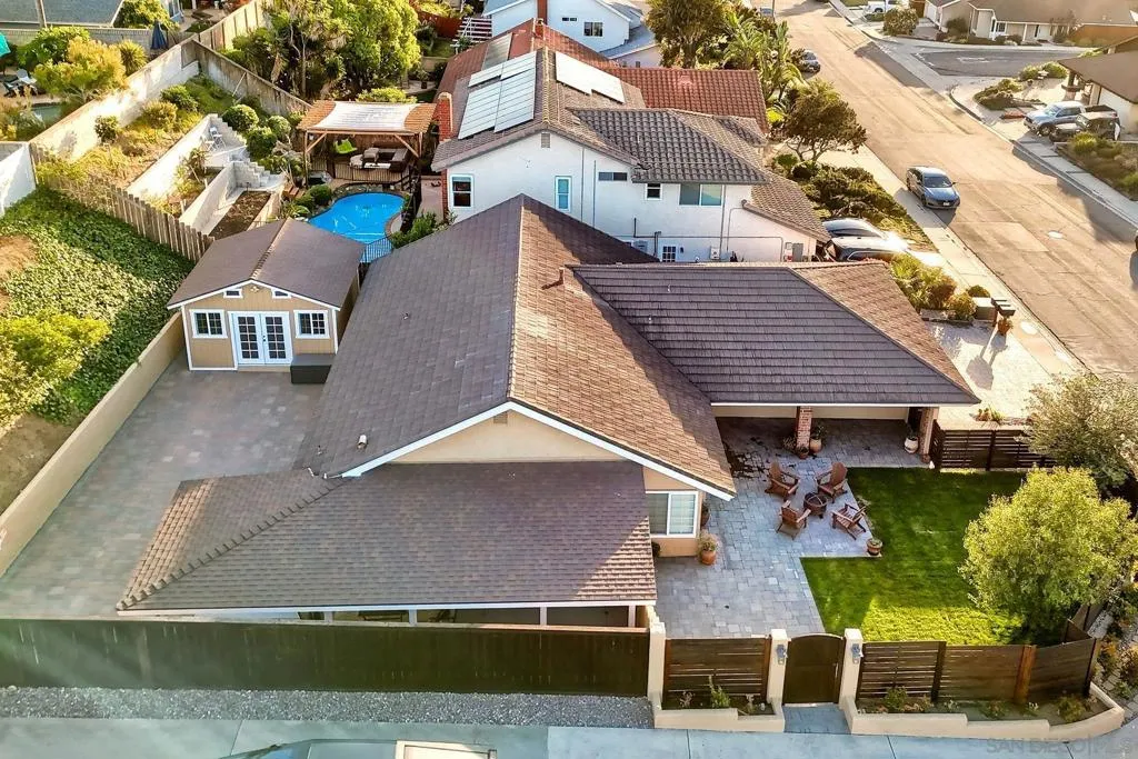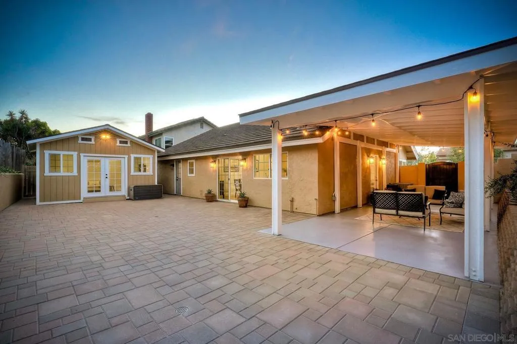 Welcome to your dream home located in the heart of Rancho Peñasquitos. Beautifully upgraded and move-in ready, this home features a modern open-concept layout with high-quality improvements throughout. The custom-designed kitchen offers handcrafted cabinetry and premium appliances, complemented by recently updated flooring, new windows, real wood doors, and fresh interior paint. Custom built-in cabinetry has been added in the secondary bedrooms, enhancing both functionality and design. The finished garage includes epoxy flooring and custom storage. All bathrooms have been fully renovated. Central AC. Exterior highlights include new fencing with custom gates, professional paint, pavers in the front, backyard, and driveway, plus new landscaping and irrigation. A custom-built backyard office/studio with its own AC adds flexible living or work space. Located within the highly sought-after Poway Unified School District and within walking distance to shopping, dining, and everyday conveniences, this turnkey home is designed for modern living.