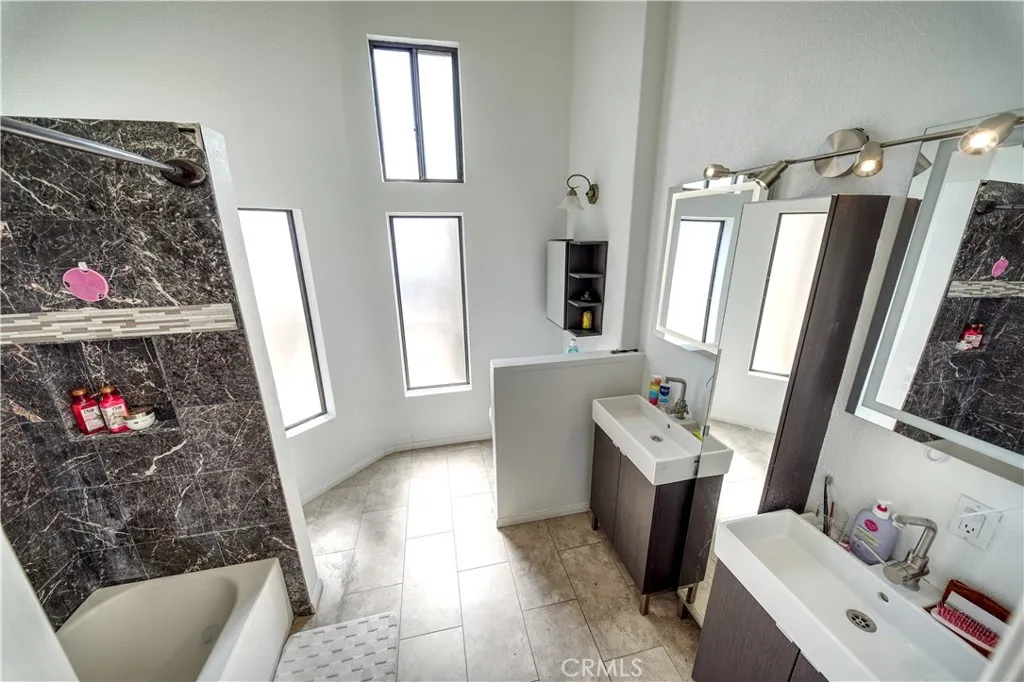 Welcome to this stunning, fully reimagined residence where modern sophistication meets warm, inviting elegance. From the moment you step inside, rich hardwood floors, soaring ceilings, and an abundance of natural light set the tone for exceptional living. The heart of the home is a beautifully appointed kitchen featuring sleek white cabinetry, stainless steel appliances, a statement wood dining table, and generous counter space — perfect for everyday living and effortless entertaining. The open-concept layout flows seamlessly into the bright and airy living room, where large windows frame lush surroundings and invite the outdoors in. Step outside to your private patio and take in breathtaking panoramic views of the surrounding hills and neighborhood rooftops — a serene retreat ideal for morning coffee or evening relaxation under the California sky. Retreat to the luxurious master suite, highlighted by a dramatic loft — perfect for a reading nook, home office, or additional sleeping space. The master bathrooms are nothing short of spa-like, showcasing floor-to-ceiling marble tile, a sleek dual vanity, and designer fixtures that exude refined taste. Additional bedrooms are spacious and bright with beautiful hardwood floors, while the secondary bathrooms continue the home's elevated aesthetic with clean lines and modern finishes. A dedicated laundry room with full-size washer and dryer adds everyday convenience. Every detail of this home has been thoughtfully curated — combining luxury, comfort, and functionality in one exceptional package. Don't miss your opportunity to own this Placentia gem.