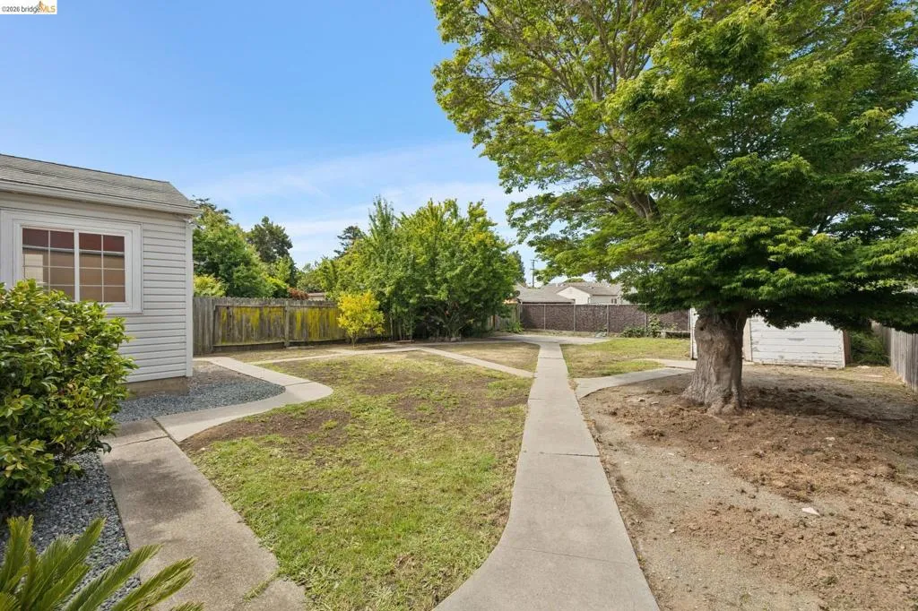 A charming 2-bedroom home nestled on one of Richmond View's most peaceful streets. From the moment you arrive, you'll feel the quiet, neighborhood warmth that makes this property truly special. The functional floor plan features two bedrooms, a full bathroom, and a spacious living room that flows into a dedicated dining area and a generous kitchen. Accessible directly from the kitchen, a flexible bonus room offers space perfect for a home office, studio, or guest space — along with an additional bath and dedicated laundry, adding real everyday convenience. All of this on an enormous 6,000 sq-ft lot ripe for expansion or a luxurious garden. Situated on quiet Ventura St, you'll enjoy low-traffic surroundings while staying close to shopping, dining, BART, and easy freeway access. A wonderful opportunity for buyers seeking flexibility, comfort, and great value in a welcoming neighborhood.