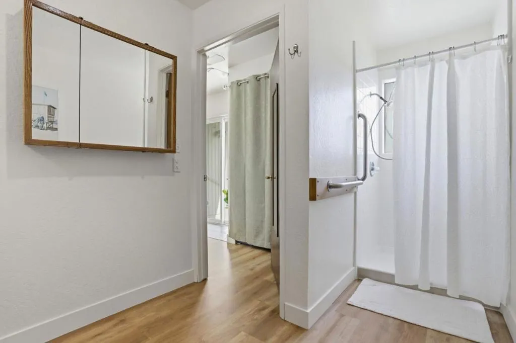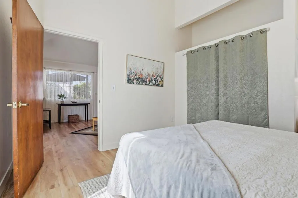 Are you 62 or over looking to liver near the beach, want to be close to Capitola or Santa Cruz? This absolutely adorable light and bright home home features one bedroom and one full bathroom with a stall shower, blocks to the beach. Morning and Evening sunshine beams through the skylight, newer windows and slider door to your own private yard and patio area. The primary bedroom is on the ground floor, offering convenient single-level living. The kitchen includes an electric cooktop, Formica countertops, a dishwasher, and a newer stainless refrigerator, opening to a combined kitchen and family room area with vaulted ceilings freshly painted and new laminate flooring throughout. A breakfast bar provides a casual dining option. This home is electrically heated and cooled by ceiling fan. Walk through the gardens to your home. Grow vegetables in the community garden, Community clubhouse for family and friends visits and social events, Laundry facilities are available inside and at the community clubhouse. Close to transportation, restaurants, hospitals, shopping and so much more. This is a Santa Cruz county Measure J unit. senior affordable unit. restrictions and county approval apply. Please call with any questions for county qualifications.