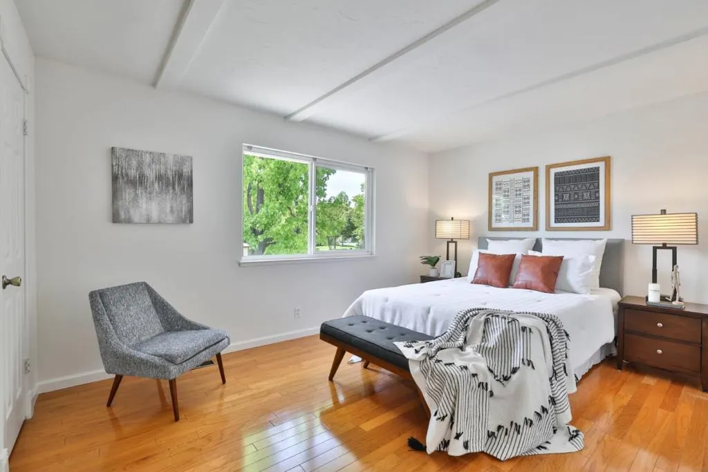 Located in the sought-after Cambrian neighborhood, bordering Los Gatos & Campbell, this 2-bedroom, 1-bath home offers 903 square feet of living space with an open-floor plan layout. The kitchen includes a gas cooktop, electric oven, new microwave, refrigerator with eat-in counter over-looking the family room. Engineered hardwood flooring extends throughout the home with new tile flooring in the kitchen and bathroom. The newly remodeled bathroom features an updated design with a shower over tub. A spacious walk-in closet is included in the primary bedroom also featuring an abundance of natural light. Central forced air heating and central AC provide year-round comfort. Shared laundry room conveniently located in the building. Excellent location for commuting, easy hop on 17/85. Close to Good Samaritan Hospital, Xylinx, Netflix, Vasona County Park, trails, shopping and restaurants. Fantastic opportunity for a starter-home or to add to your investment portfolio. This move-in ready home is a must-see!